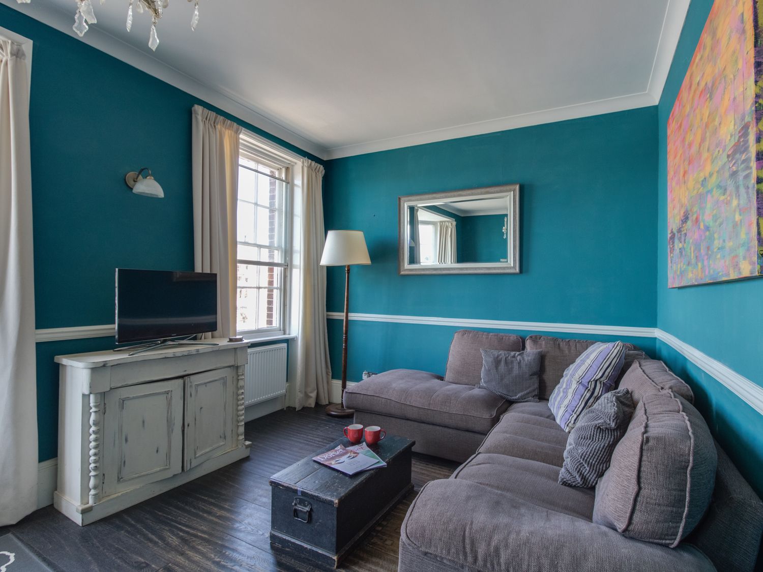 Holiday home Sailors Watch is a large two floor apartment and sits on the first and second floor of a harbourside townhouse in the town of Weymouth. It comes with three bedrooms on the second floor, comprising a super king-size, a king-size and a twin, together sleeping up to six people. The bedrooms are serviced by a shower room with a walk-in shower, basin and WC on the same floor. In addition there is a bathroom with a bath, basin and WC on the first floor. Completing the interior is a kitchen/diner on the first floor, a sitting room and a sun room. To the outside, there is an enclosed artificially turfed garden and terrace with furniture. Sailors Watch is an elegant base for exploring this sublime coastline. Please note: This property does not accept stag or hen parties.