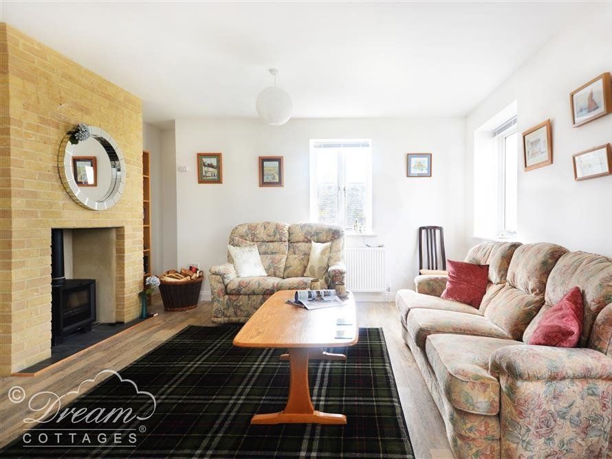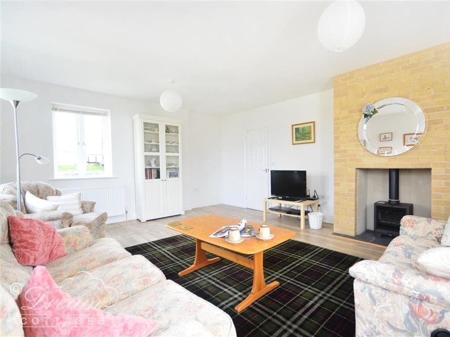 The sitting room is huge, plenty of comfy seating, with a wood burner and tv.