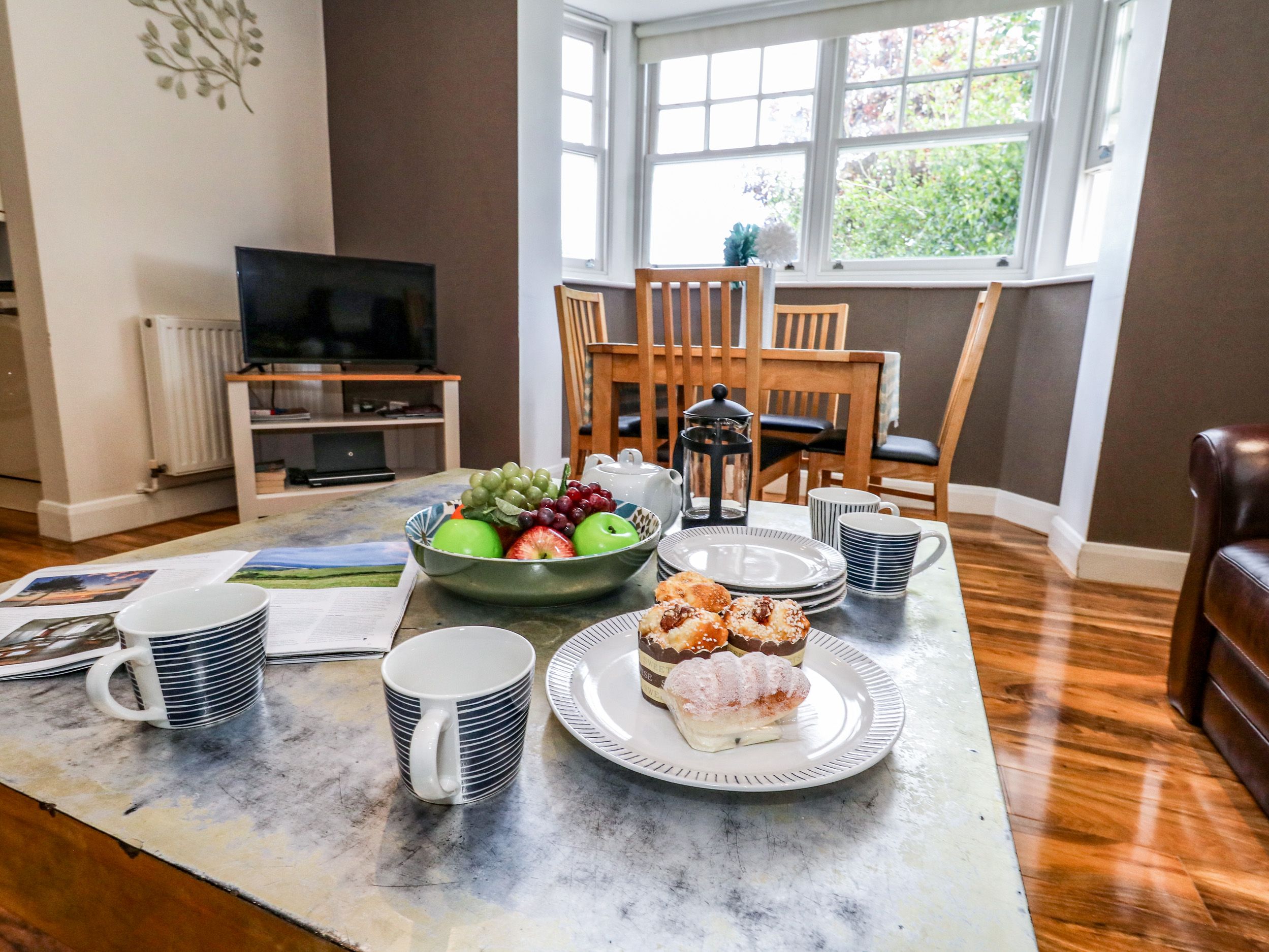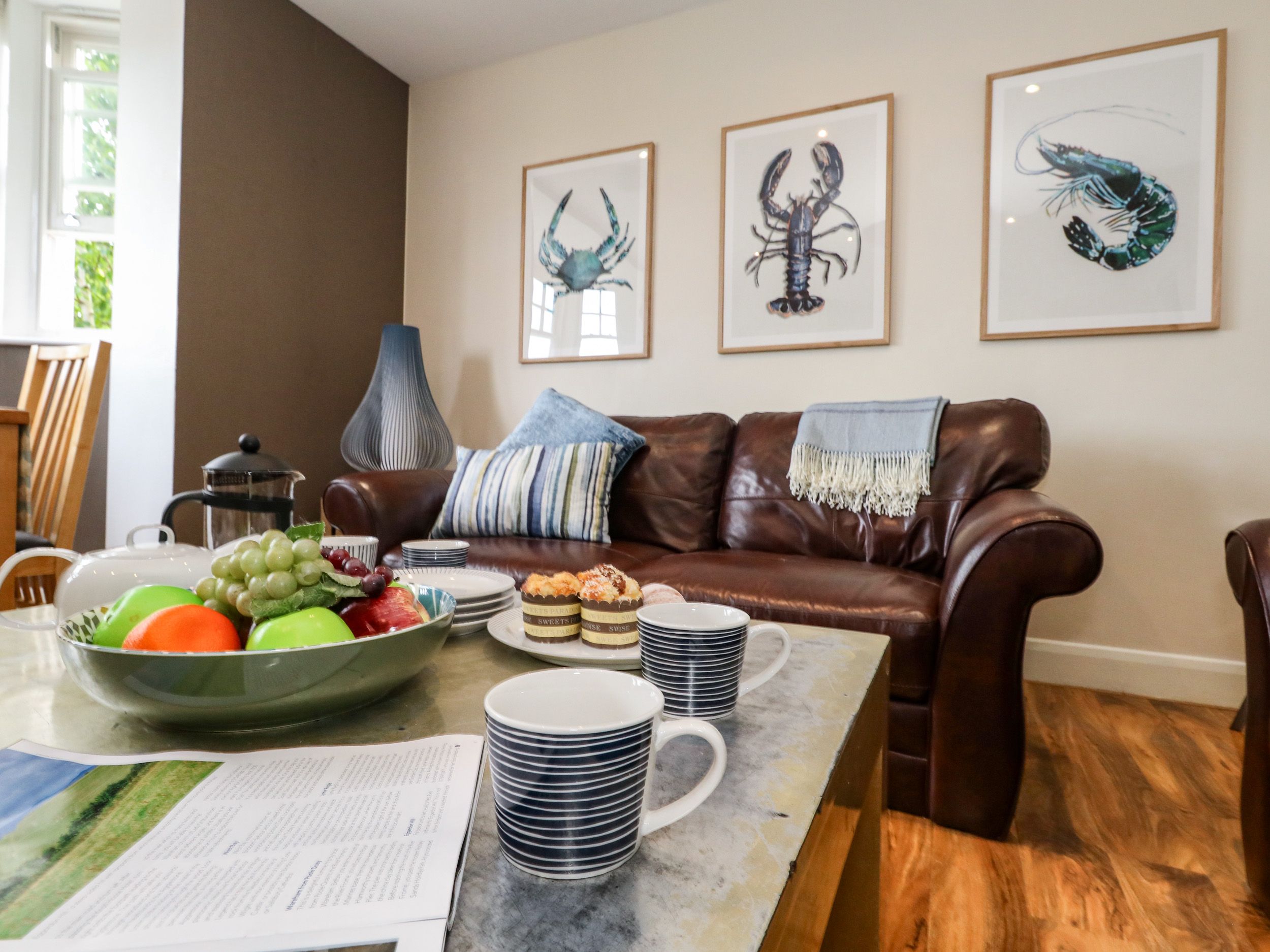 Accomodation Details First floor apartment. Two bedrooms: 1 x king-size with en-suite walk-in shower, basin and WC, 1 x twin. Bathroom with bath, basin, heated towel rail and WC. Open-plan living space with kitchen, dining area and sitting area