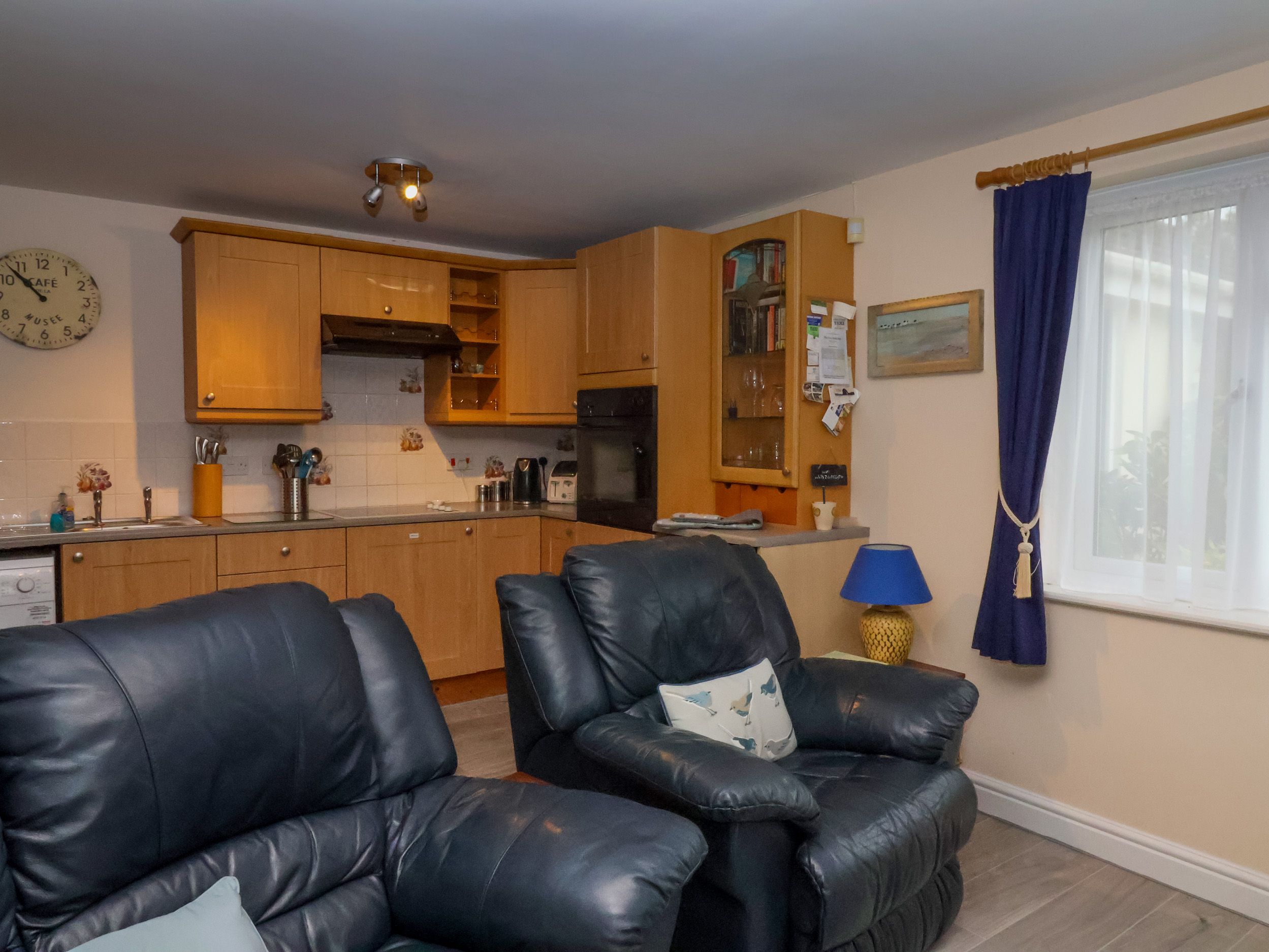 Accomodation Details One king-size bedroom. Bathroom with bath, shower over, basin, and WC. Open-plan living space with kitchen, dining area, and sitting area
