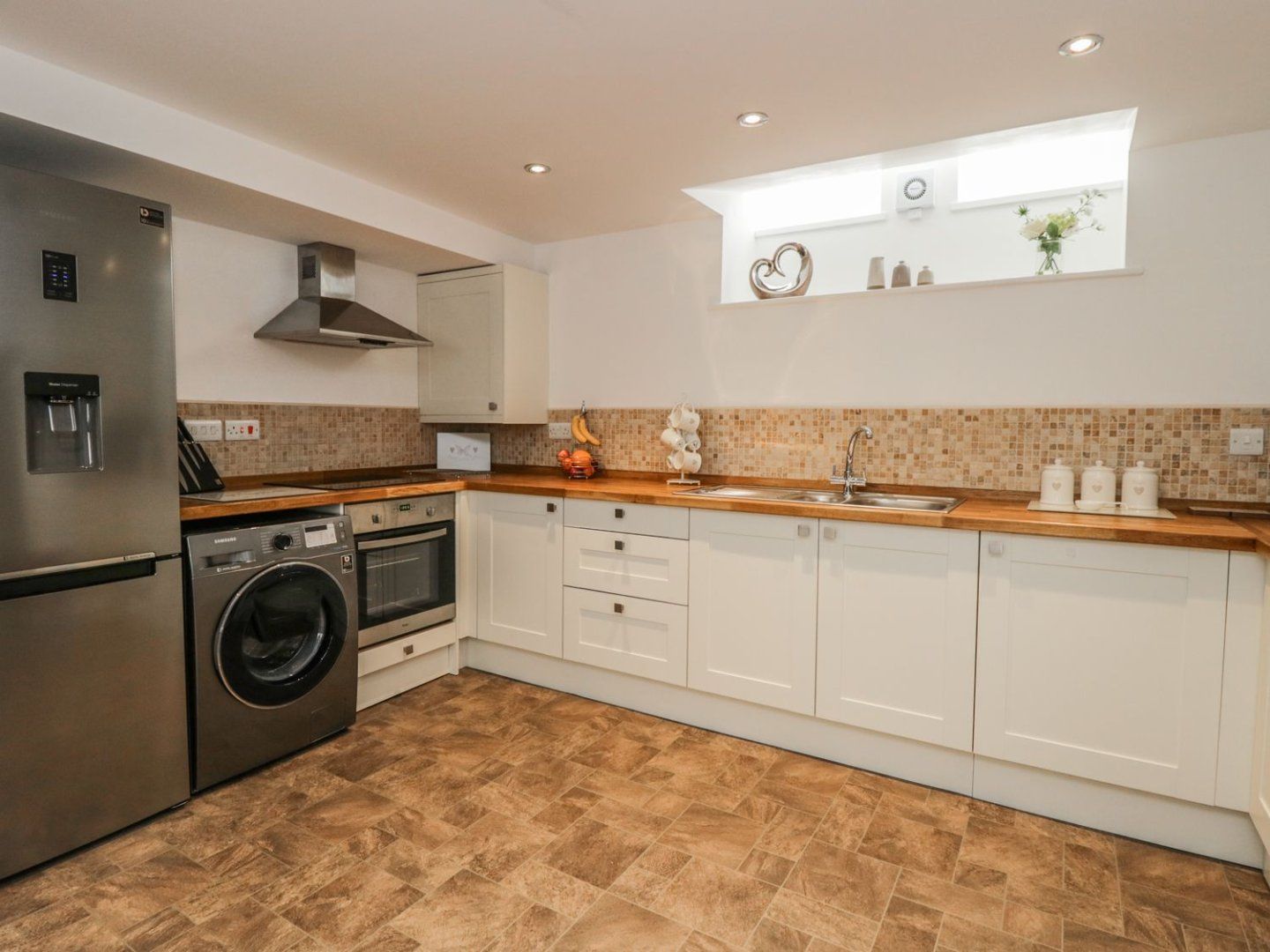 Amenities Gas central heating. Electric oven and hob, kettle, toaster, microwave, fridge/freezer, washing machine. Smart TV, Alexa, WiFi and a selection of books, games and DVDs. Fuel and power inc. in rent. Bed linen and towels inc. in rent. Travel cot and highchair available on request. Roadside parking available nearby. One well-behaved dog welcome. Sorry, no smoking. Shop 0.5 miles, pub 0.2 miles. Note: There 8 steps leading down to the apartment