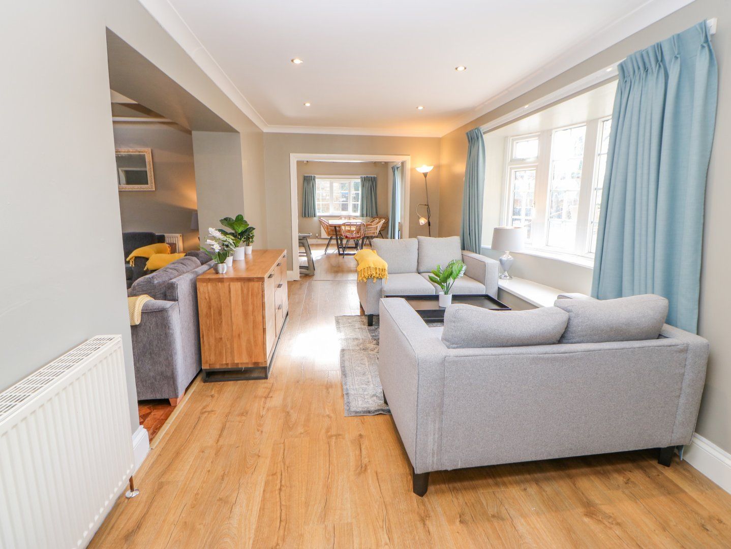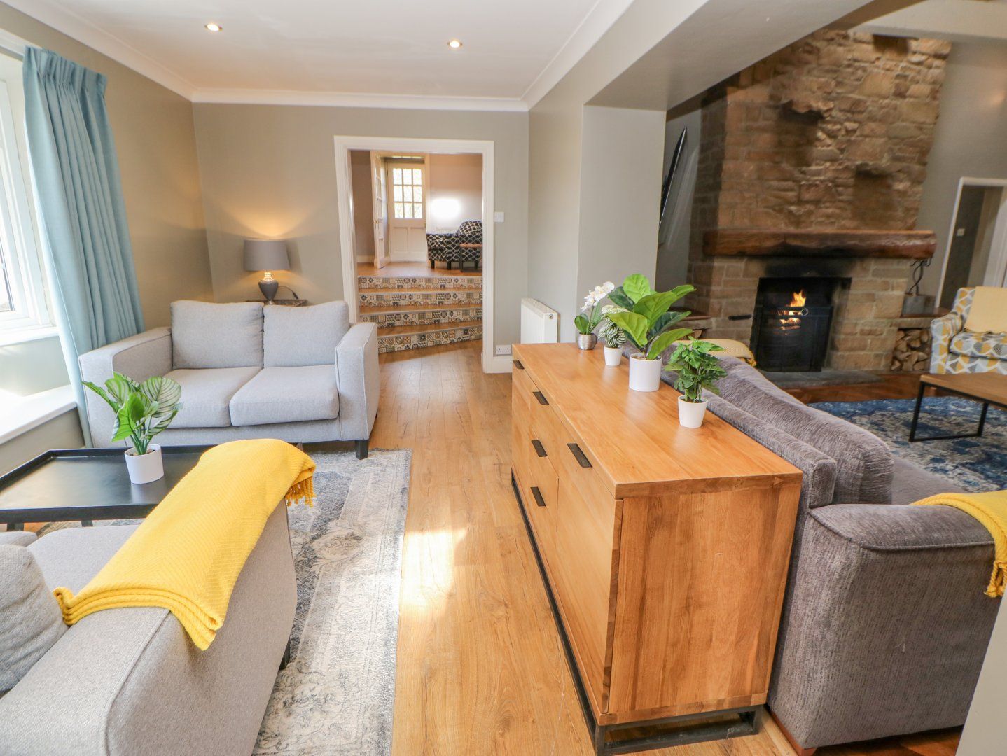 Accomodation Details Seven bedrooms: 1 x ground-floor double with TV en-suite freestanding bath, walk-in shower, basin and WC, 1 x ground-floor double with TV and en-suite bath, basin and WC, 4 x ground-floor double with TV, 1 x twin. Ground-floor bathroom with bath, shower over, basin and WC. Cloakroom with basin and WC. Kitchen. Kitchen/diner. Dining room with TV. Dining room. Sitting room with open fire. First-floor sitting room. Snug. Sauna