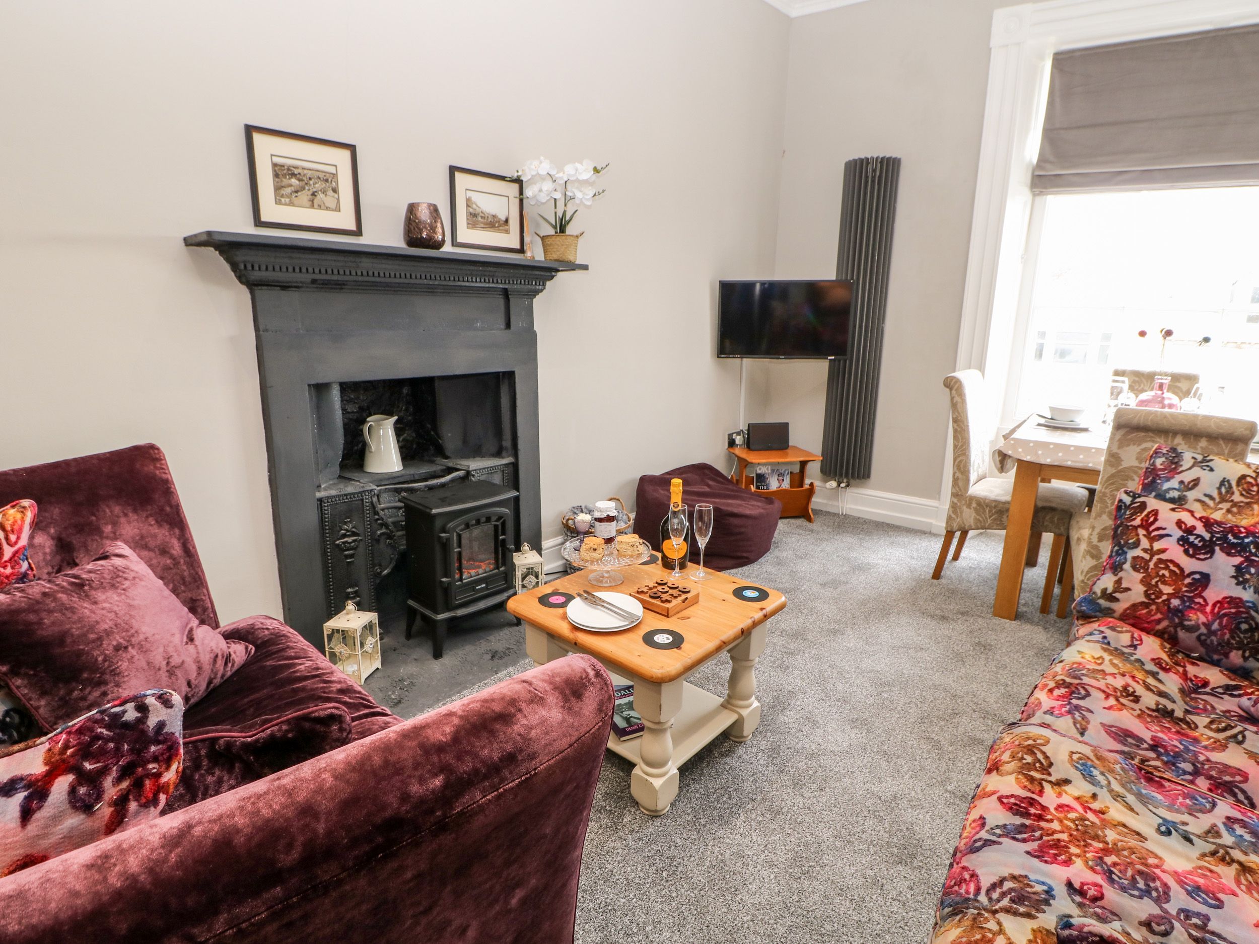 Holiday home The open-plan living space in this second-floor apartment has a kitchen area with electric oven and hob, microwave, fridge/freezer, washing machine and dishwasher, a dining area for four guests, and a sitting area with a TV. There are two double bedrooms, along with a bathroom. Within 0.1 miles, there is a shop and pub. Two well-behaved pets are welcome. There is a large dog cage available. Please note that smoking is not permitted. WiFi, fuel, power, bed linen and towels are all included in the price. A travel cot is available. Pets are not allowed on the furniture or beds. Nestled in the heart of Barnard Castle close to the Yorkshire Dales and North Pennines AONB, book your next adventure at Ronnie's Roost.