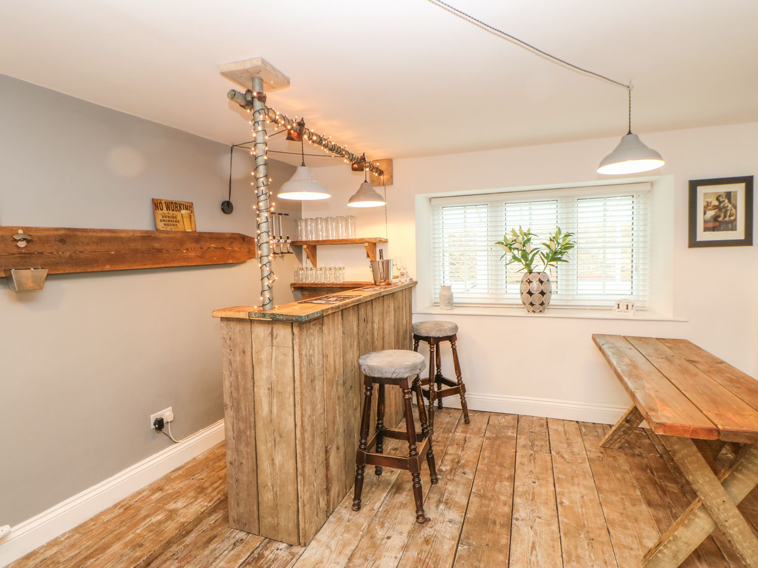 The downstairs areas have been well designed and finished to a very high standard. The log burner provides a homely feel with the bar area, great for entertaining and celebrating my birthday! The obvious bonus was the hot tub which was great fun,and being undercover, ensured we got the most from it, regardless of the weather.