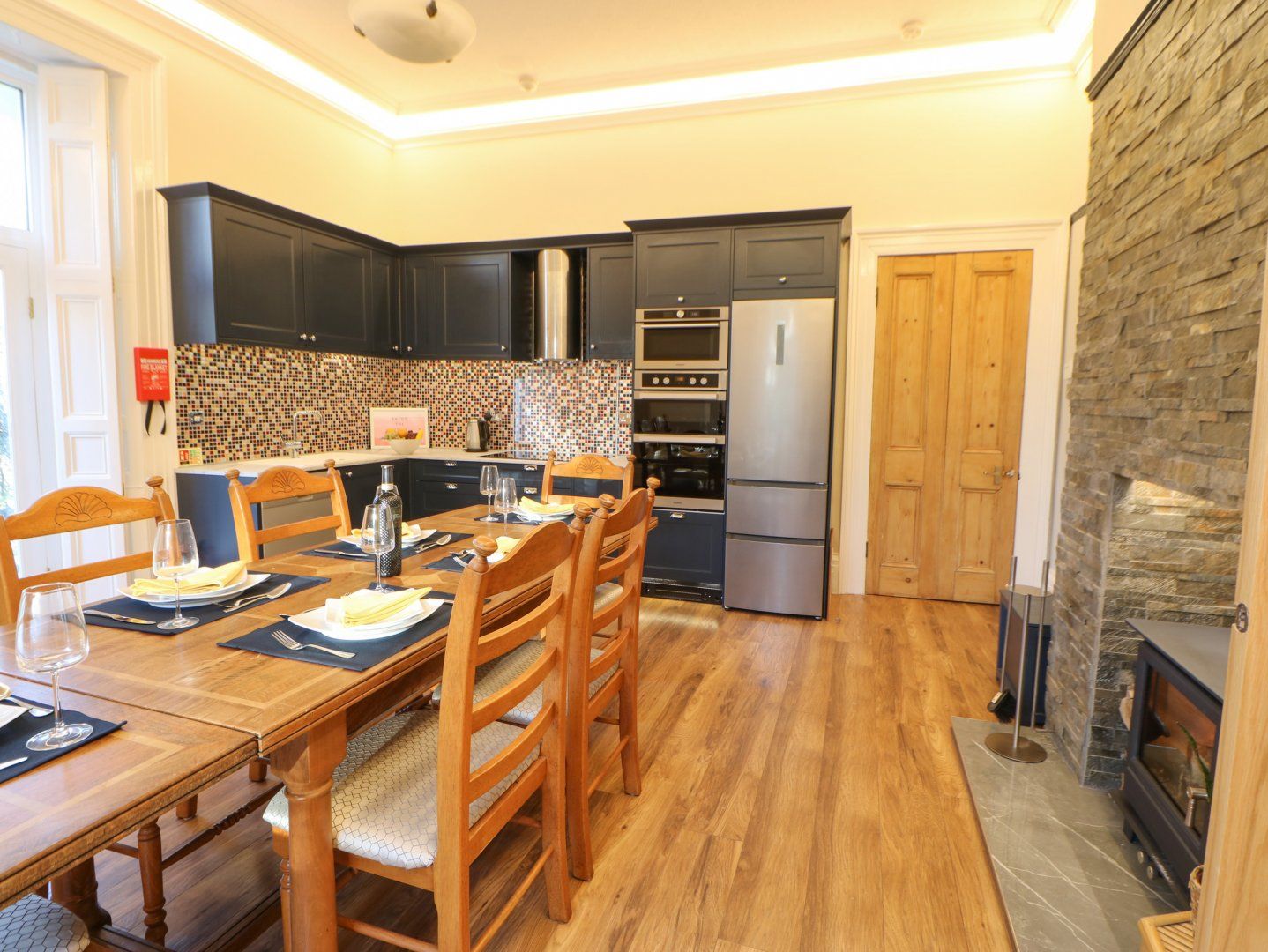 Amenities Gas central heating with gas fire and woodburning stove. Electric oven and hob, fridge/freezer, dishwasher. Smart TV, 6 x TVs, WiFi. Fuel, power and starter pack for woodburning inc. in rent. Bed linen and towels for the bathroom inc. in rent, apart from the Hot Tub. Off-road parking on private driveway, suitable for up to 3 cars. Private patio with stone steps leading down to a shared enclosed lawn. Balcony with furniture. Sorry, no pets and no smoking. Shop 0.6 miles, pub 0.7 miles, beach 2.3 miles. Note: The master bedroom is open-plan with the en-suite shower facilities. Note: This property is adjoined to the owner's home, please consider this when booking. Note: There are steps leading down from the patio, please take care. Note: Dalton Pumphouse wedding venue is approx 500m. Stair gate and high chair available upon request.