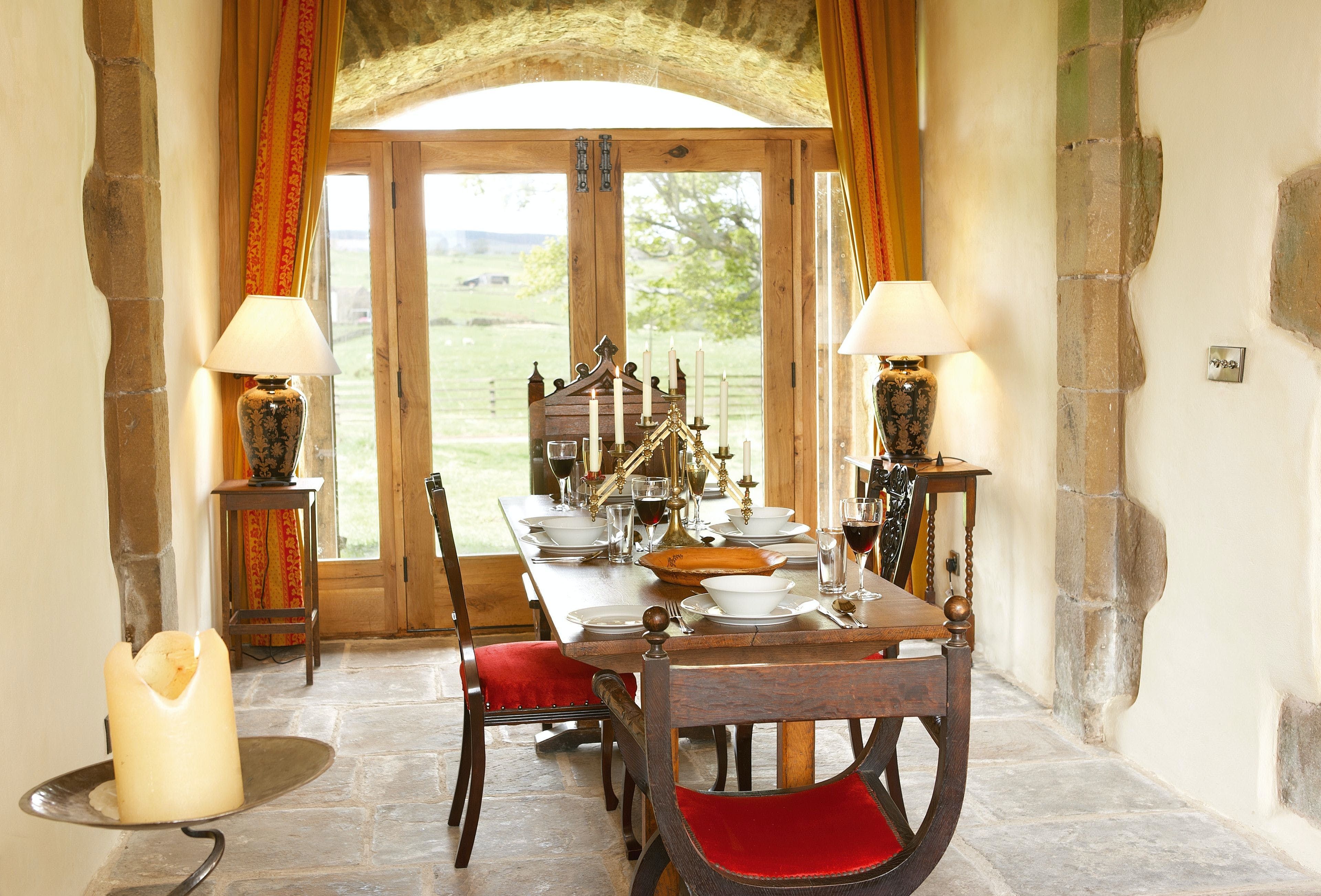 This charming Tudor castle, built in 1560, has been fully restored to create the perfect romantic retreat for two. Set in the picturesque Teesdale landscape, this historic property is located near the Yorkshire Dales and Lake District National Park, as well as the North Pennines Area of Outstanding Natural Beauty. Guests can admire the ornate roof beams carved from oak trees felled over 400 years ago in the dining hall, and relax in the cosy living room with a wood-burning stove set within a Tudor fireplace. The bedroom features a double bed on an oak floor adorned with Persian rugs and offers stunning views of the walled garden and the high moors beyond. The property also boasts an enclosed courtyard garden and two designated parking spaces. Up to two well-behaved dogs are welcome for a small additional charge.