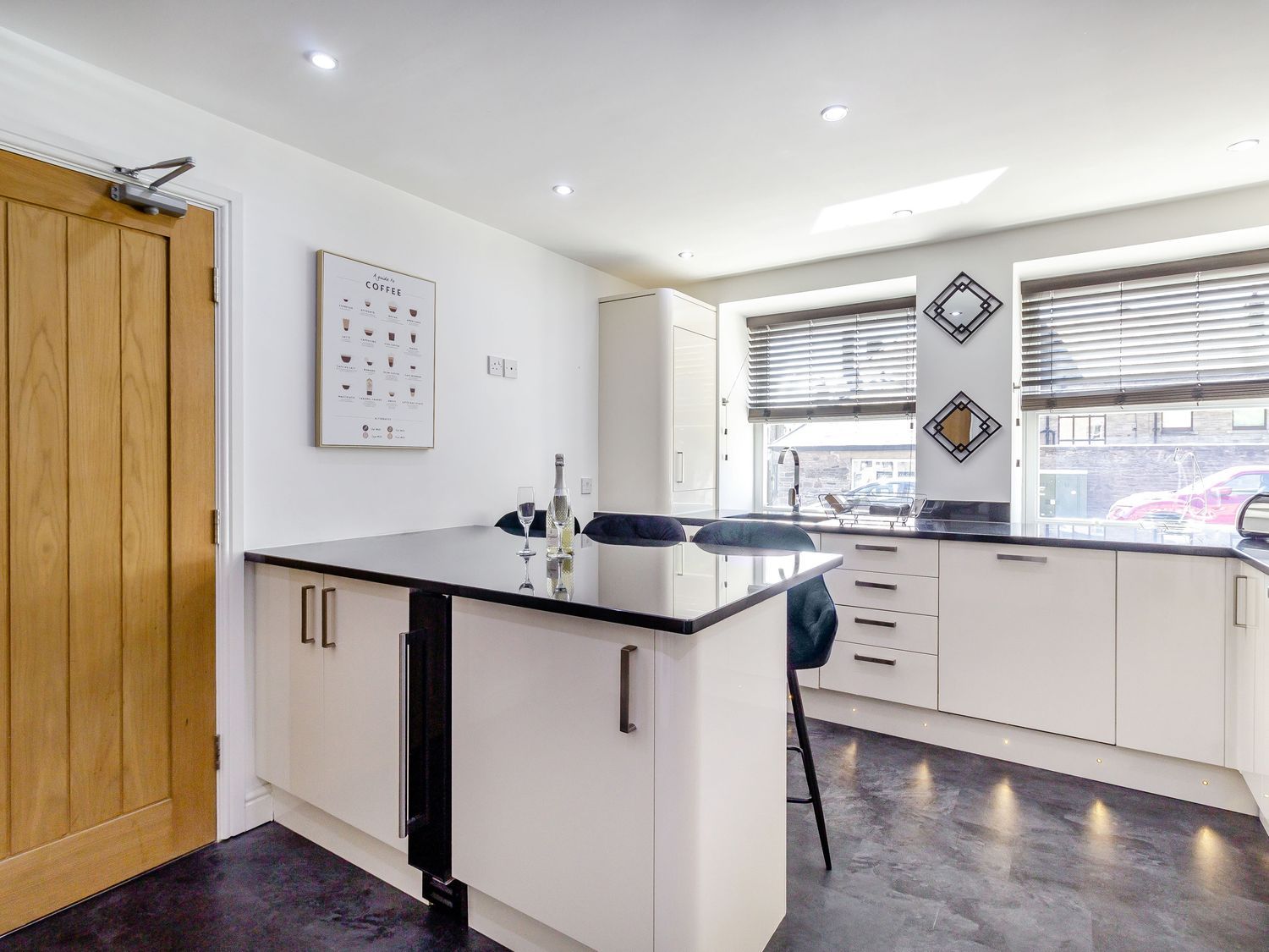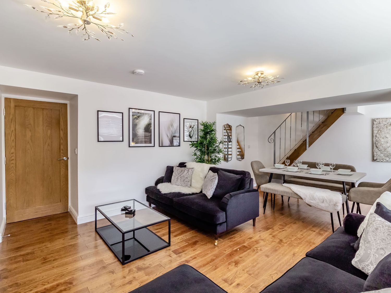 Amenities Gas central heating. Electric oven and hob, microwave, fridge, freezer, washing machine/dryer, dishwasher, kettle, coffee machine and toaster. Media wall featuring 65” 4K LED Smart Ambilight TV with Freeview and Netflix entertainment, WiFi included. Fuel and power inc. in rent. Bed linen and towels inc. in rent. Travel cot and highchair. Non dedicated street parking. Shared, enclosed patio with furniture. Sorry, no pets and no smoking. Shop and pub 0.1 miles. Note: Access to the apartment is via 2 steps through the main front door. Note: The apartment is over three levels. There are five steps up to the two king-size bedrooms and an open tread staircase to a third level reading snug. Note: The patio is shared between all three apartments and there are five steps up to the patio. Please Note - No Parties, Stag or Hen Groups. Note: This property has a good housekeeping bond of £150