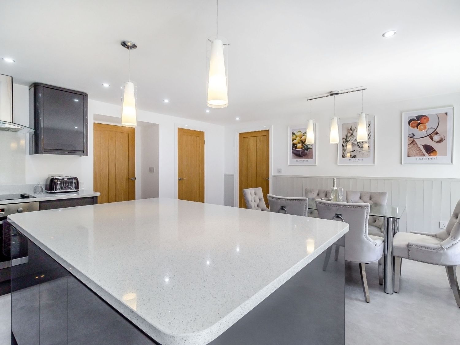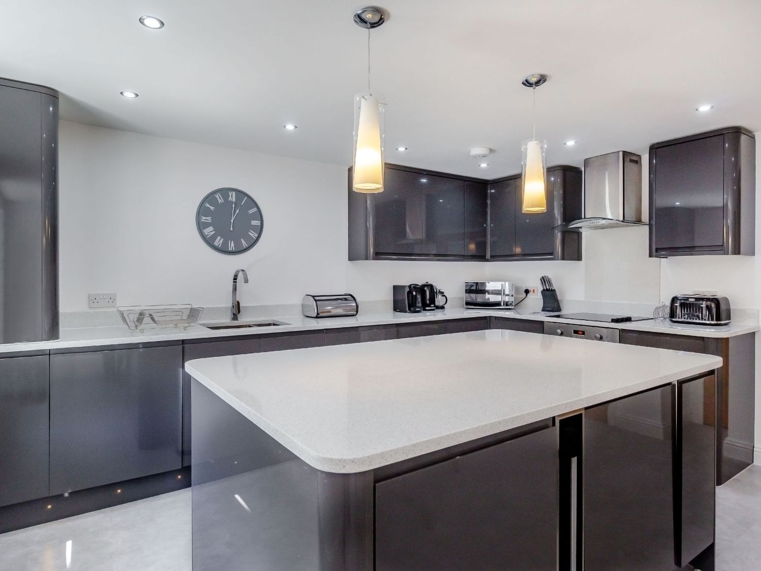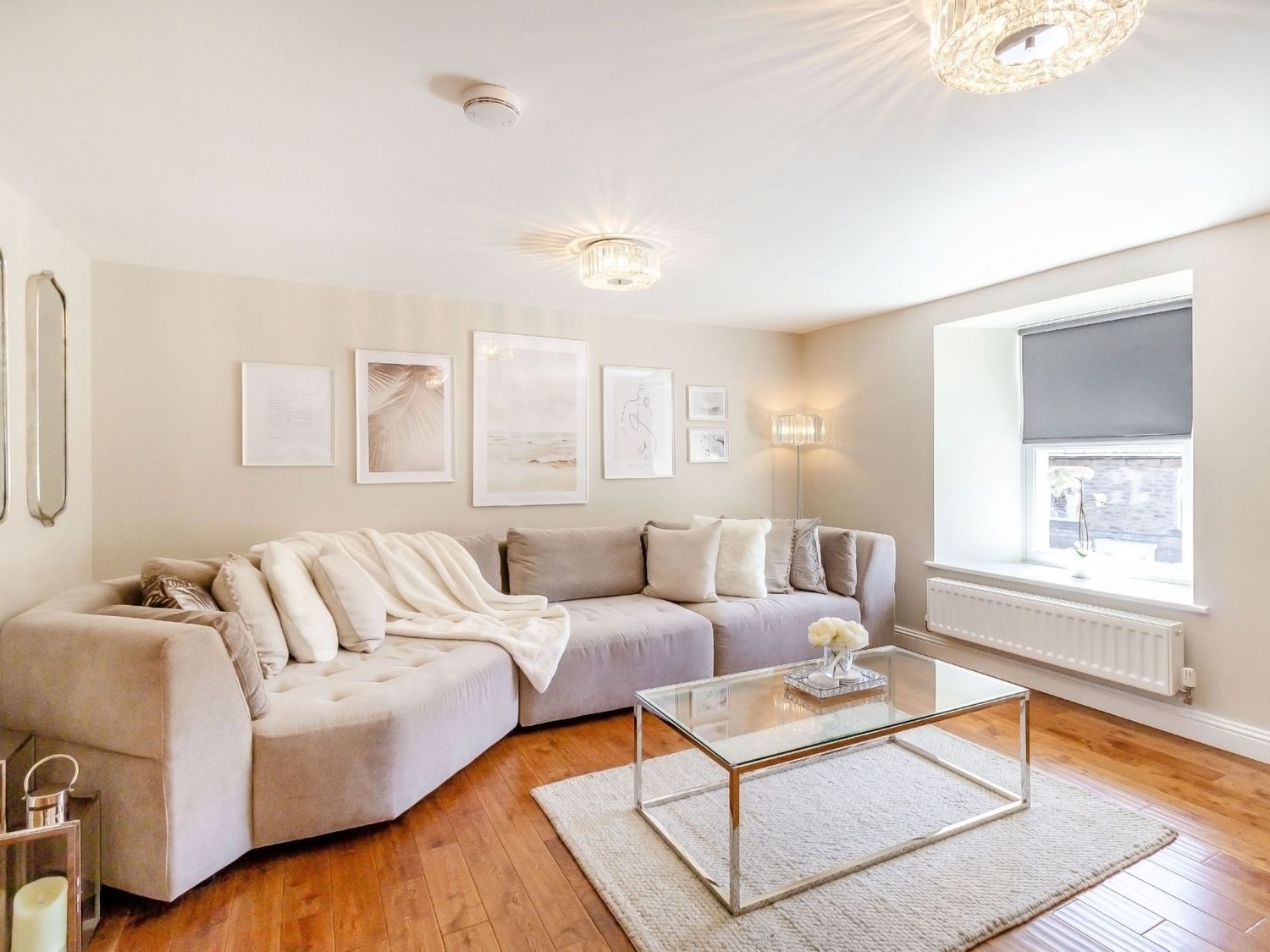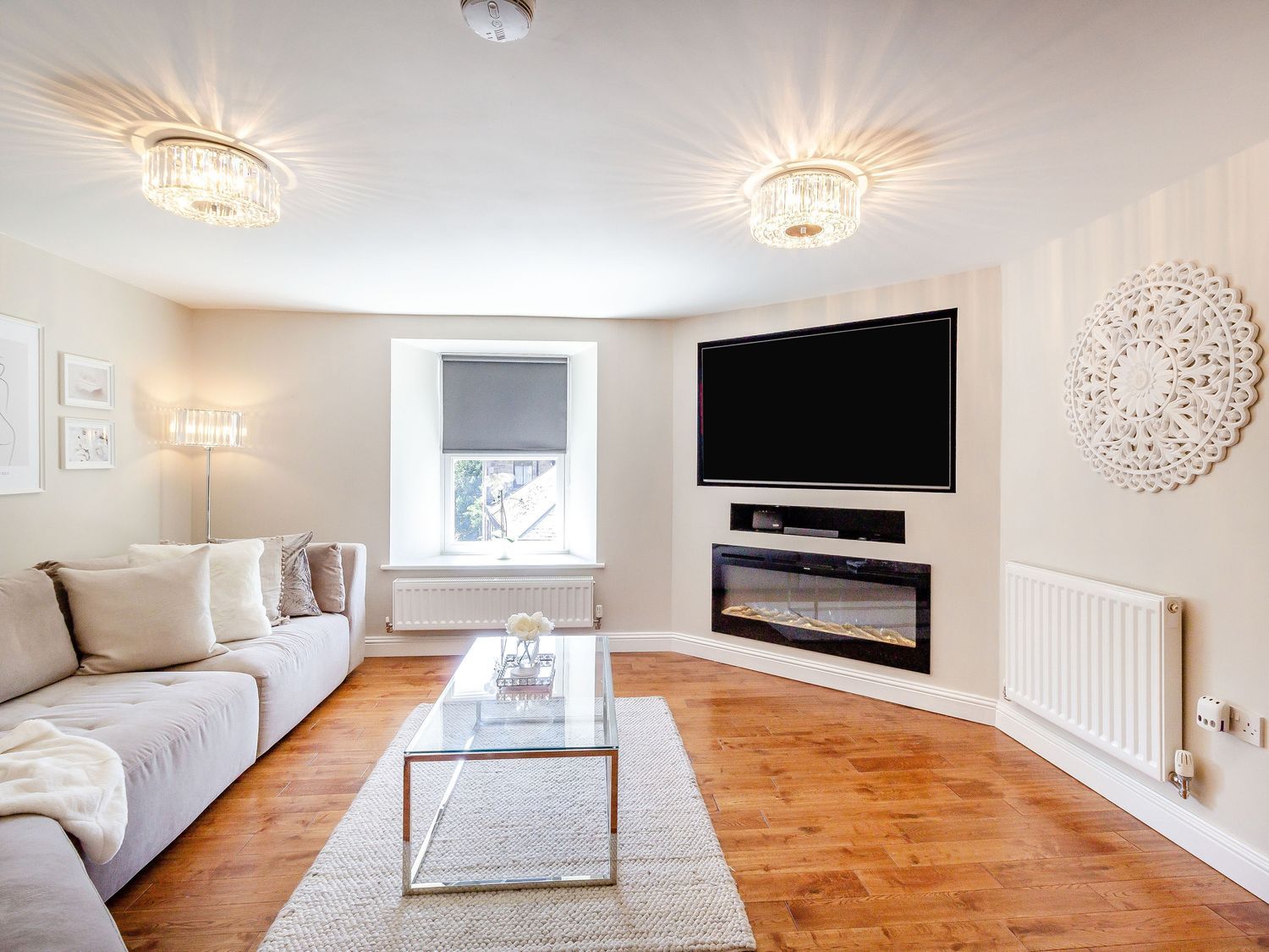 Gas central heating. Electric oven and hob, microwave, fridge, freezer, wine cooler, washing machine /dryer, dishwasher, kettle, coffee machine and toaster. Media wall featuring 65” 4K LED Smart Ambilight TV with Freeview and Netflix entertainment, WiFi. Fuel and power inc. in rent. Bed linen and towels inc. in rent. Travel cot and highchair available. Roadside parking on a first-come-first-served basis. Shared, enclosed patio with furniture. Sorry, no pets and no smoking Shops and pubs 0.1 miles. Note: Access to the apartment is via 2 steps through the main front door and up a direct flight of stairs up to the first floor. Note: The king-size double bedroom with en-suite is accessed directly from the sitting room and there are 5 steps up to the two other bedrooms. Note: The patio is shared between all three apartments and there are five steps up to the patio. Note: No Parties, Stag or Hen Groups. Note: This property has a good housekeeping bond of £150