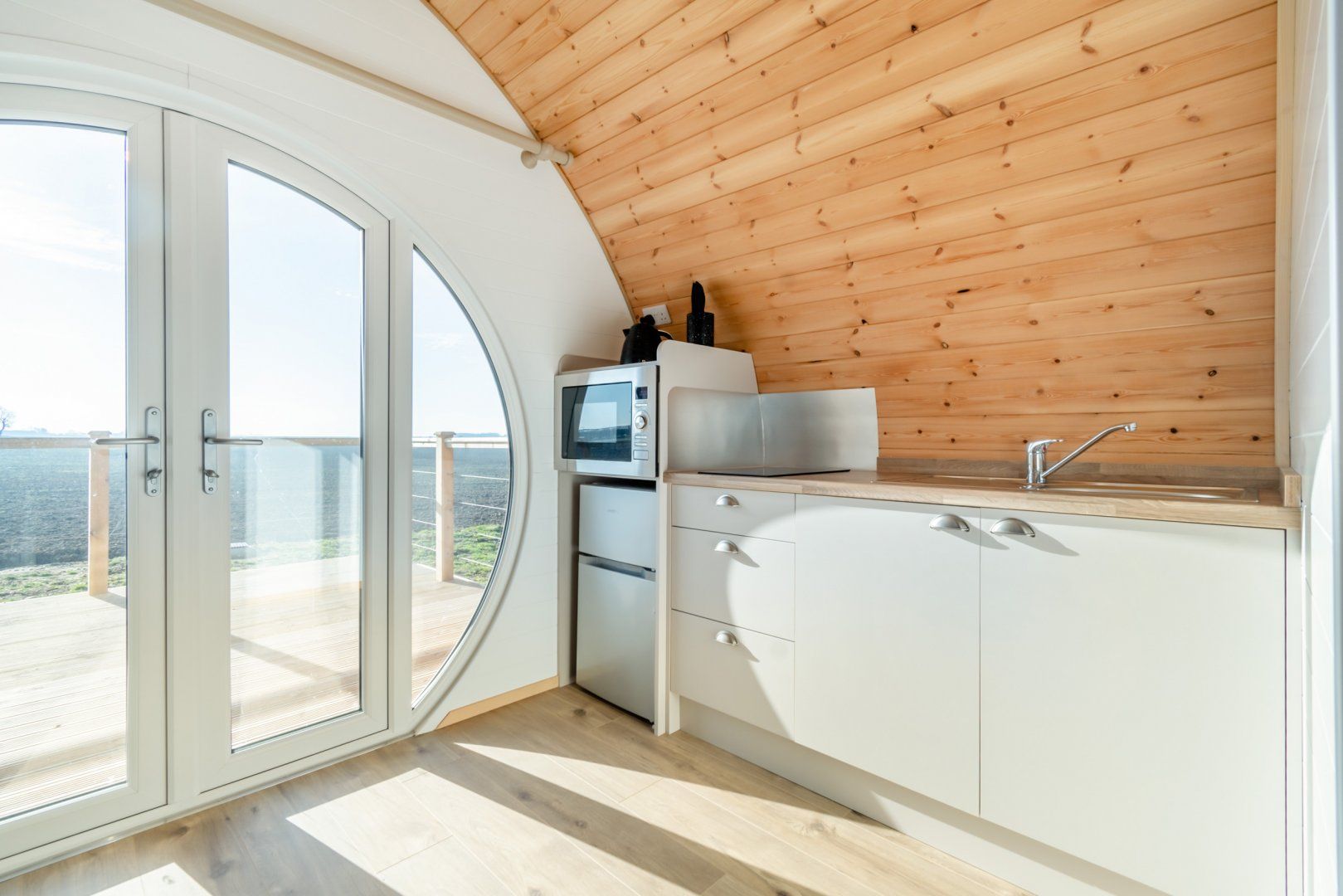Holiday home This single-storey pod has a studio-style layout with a kitchen, dining area and sitting area with a king-size bed, a triple bunk bed and double sofa bed, along with a shower room. There is also ample off-road parking with CCTV and private decking. Appliances include an electric hob, microwave and fridge/freezer. Fuel, power, bed linen and towels are all included in the rent. Sorry, this is a pet-free, smoke-free property. Highchair and travel cot available. You can find a shop and pub within 1.6 miles. Make memories at Pod 1. Note: Though single-storey, there are steps up into the pod.