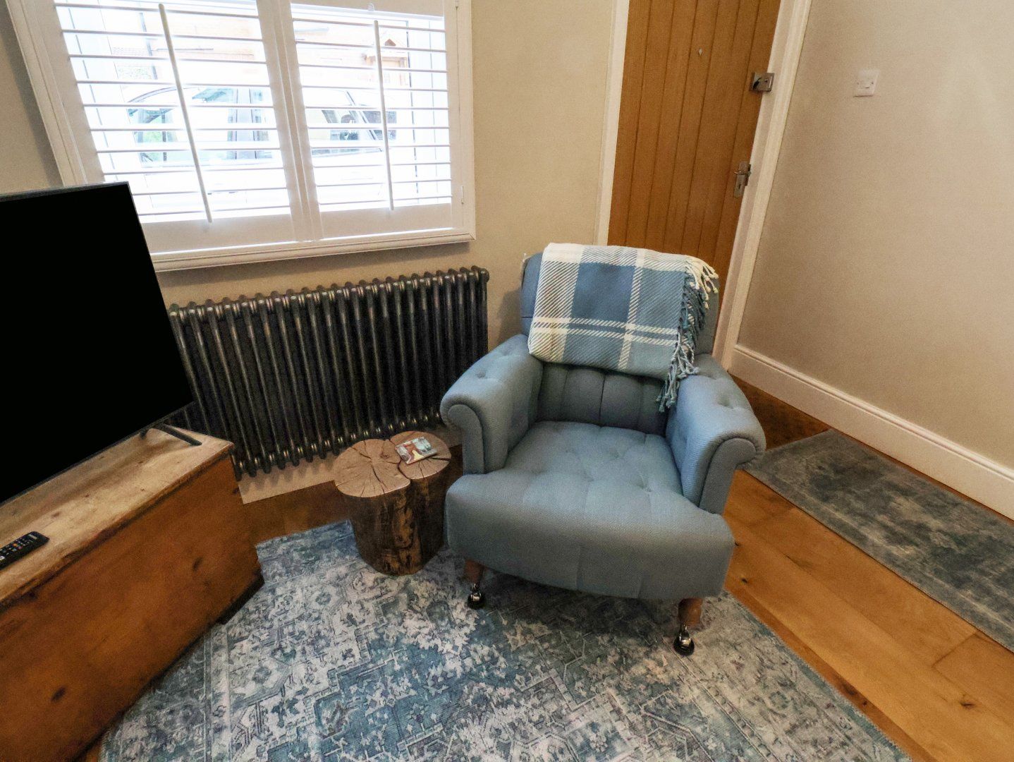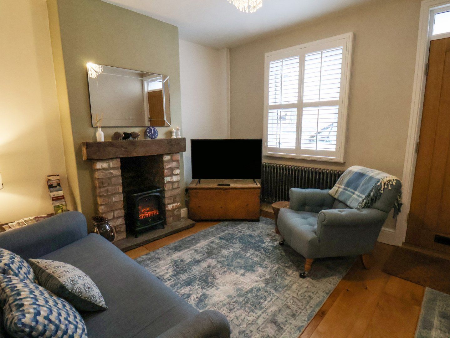Amenities Gas central heating . Smeg range cooker, fridge/freezer, dishwasher. 3 x TVs (2 Smart) , WiFi. Fuel and power inc. in rent. Bed linen and towels inc. in rent. Permit parking for the roadside for 1 car. Enclosed rear garden with patio area and furniture. One well-behaved dog welcome. Sorry, no smoking. Shop 0.3 miles, pub 0.1 miles. Note: This is an adult-only property. Note: Access to the bathroom is through the master bedroom