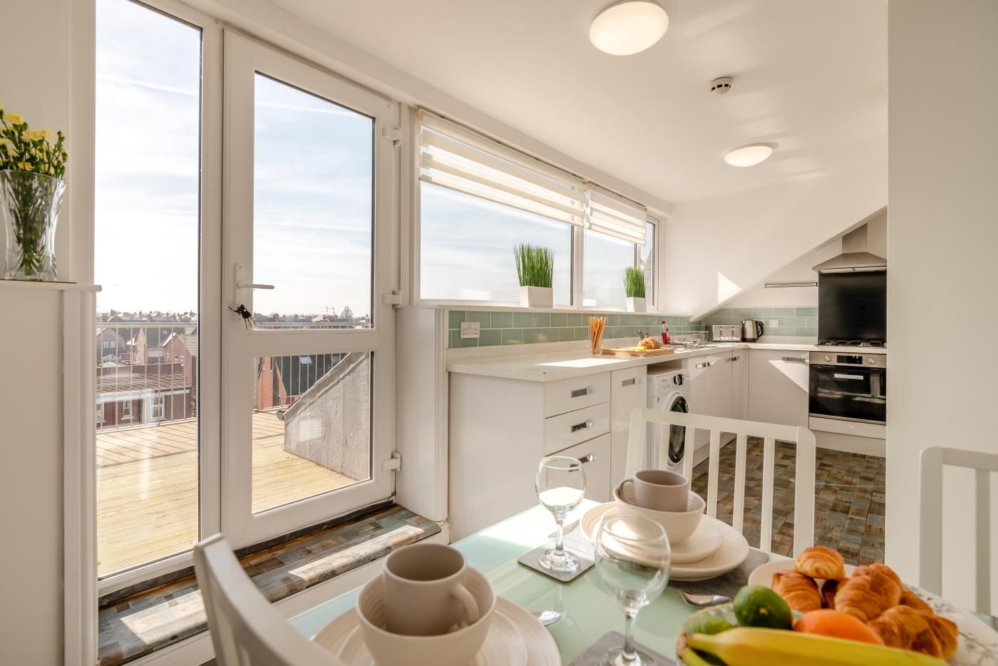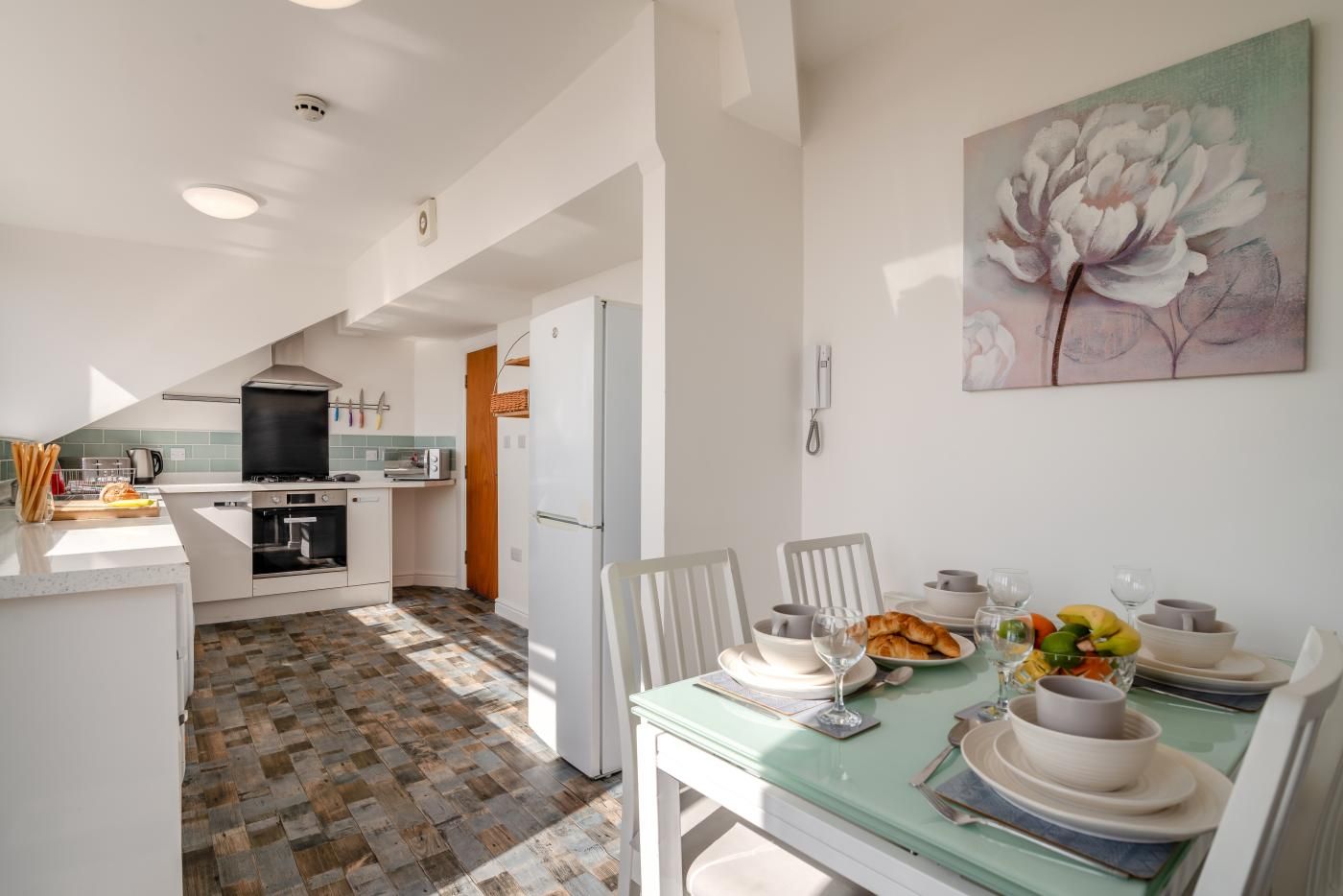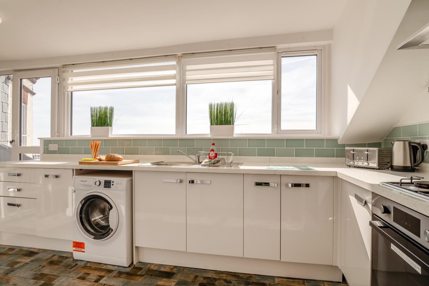 The two-bedroom apartment is at the top of the seafront building and captures views right across towards the beach and lapping waves. Well positioned for coastal walks, beauty spots and family attractions, it is also in a great position for families or couples wishing to be close to shops, cafes and restaurants.