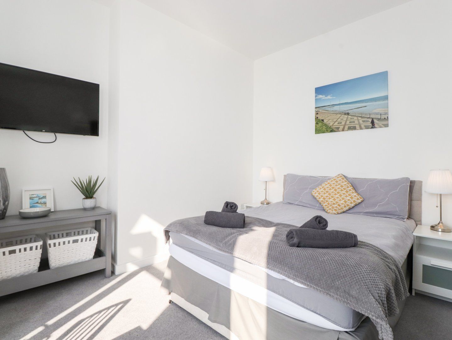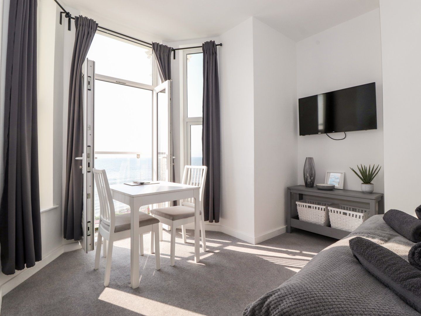 Holiday home The living areas in this first-floor apartment consists of a studio-style layout with double bed, dining area and sitting area with Juliette balcony, serviced by a shower room, along with a kitchen. Appliances include an electric oven and ceramic hob, microwave, fridge/freezer, and Smart TV. Outside, there is free, roadside permit parking. Within 0.3 miles, you will find a shop, pub, and beach. Please note, this is a non-smoking property. Wi-Fi, fuel, power, bed linen, and towels are all included in the rent. Enjoy an unforgettable stay in Yorkshire at Apartment 5 Bridlington Bay (Studio). Note: Check-in from 2pm, check-out by 10am. Note: Parking permits are provided free of charge which allow guests to park in the permit zones outside the property for the duration of their stay. Note: Travel cot available on request. Note: No highchairs available.