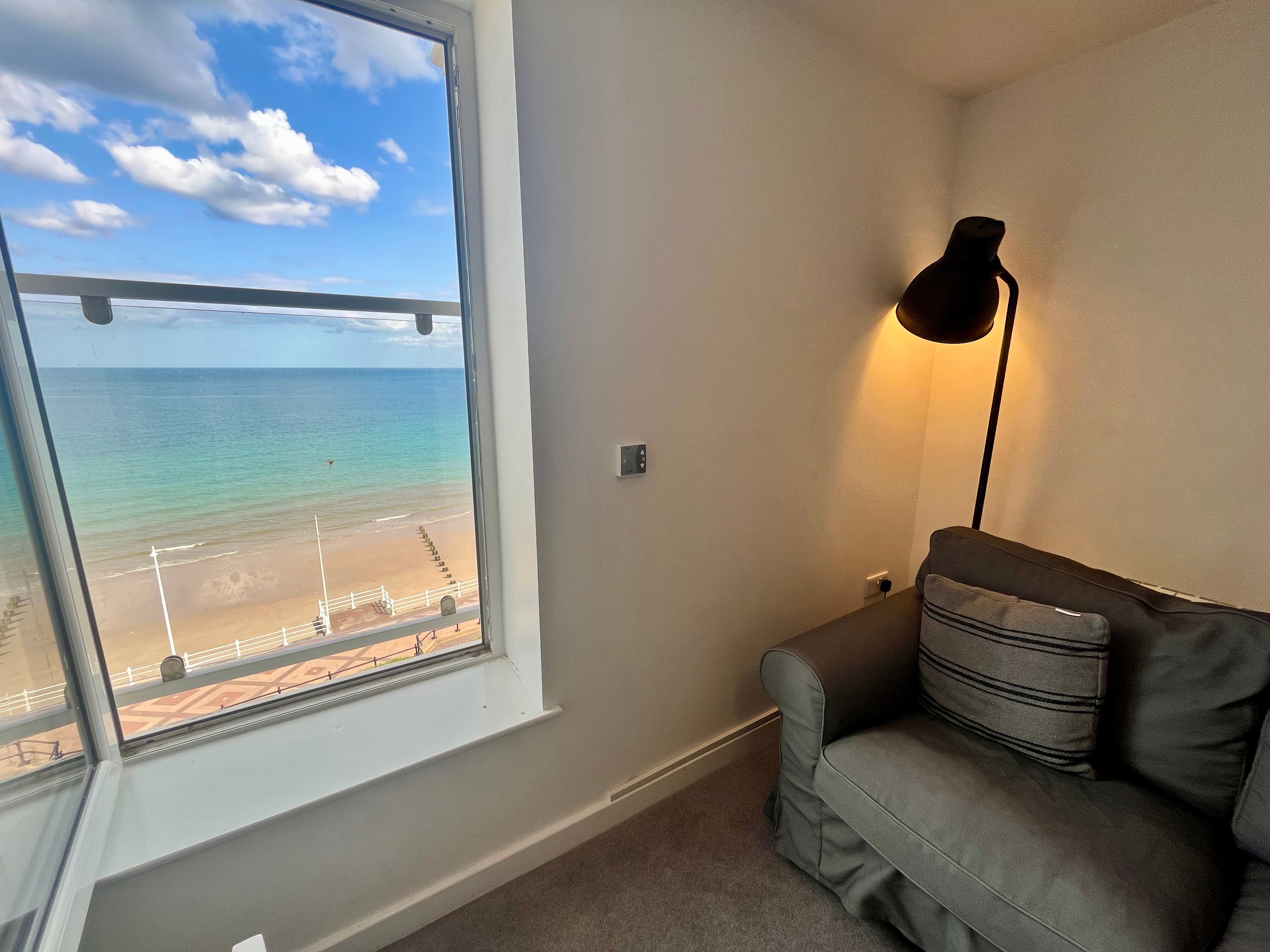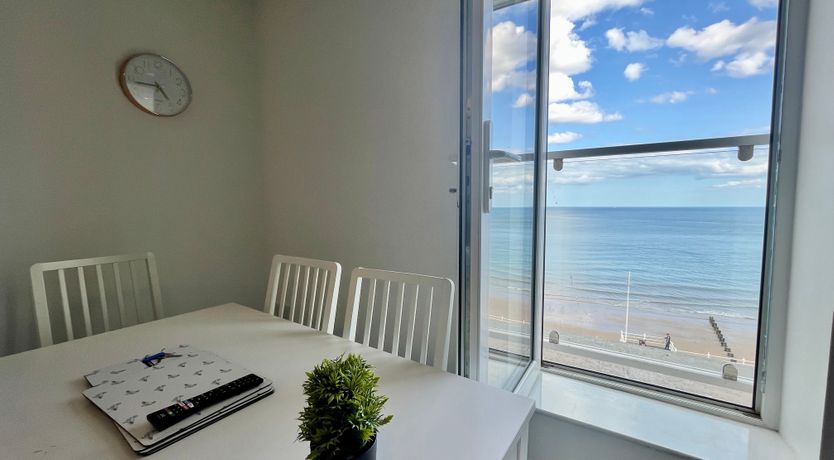 Accomodation Details Second-floor apartment with sea views. Three bedrooms: 1 x double with Smart TV and en-suite walk-in shower, basin, heated towel rail, and WC, 1 x double, 1 x single. Shower room with walk-in shower, basin, heated towel rail, and WC. Open-plan living space with kitchen, dining area and sitting area. Juliet balcony.