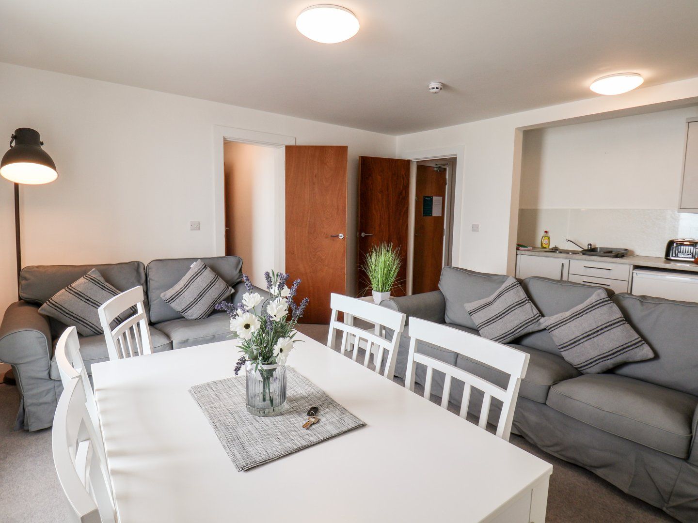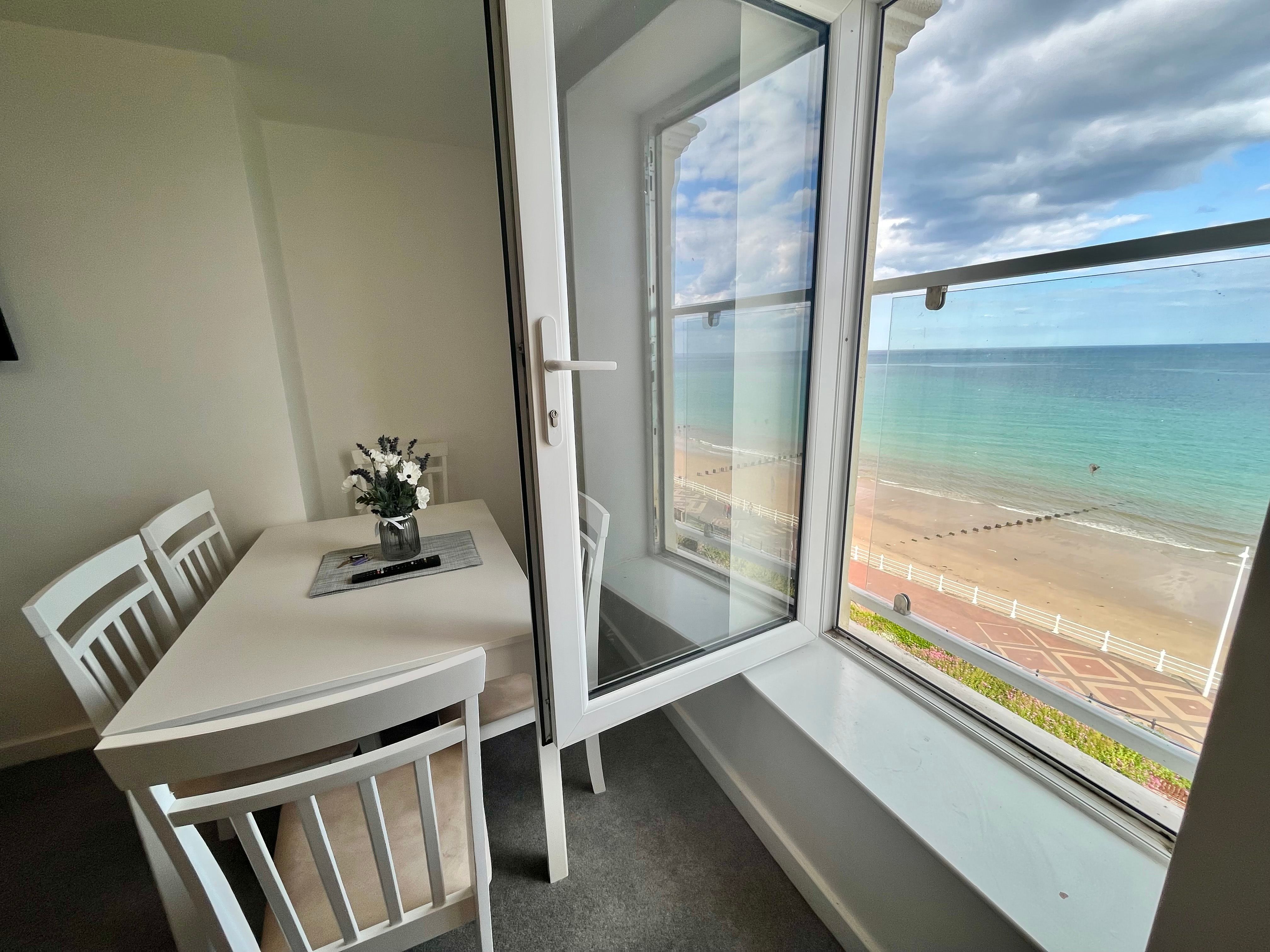 Accomodation Details Third-floor apartment with sea views. Three bedrooms: 1 x double with en-suite walk-in shower, basin, heated towel rail, and WC, 1 x double, 1 x single. Shower room with walk-in shower, basin, heated towel rail, and WC. Open-plan living space with kitchen, dining area and sitting area. 2 x Juliet Balcony.