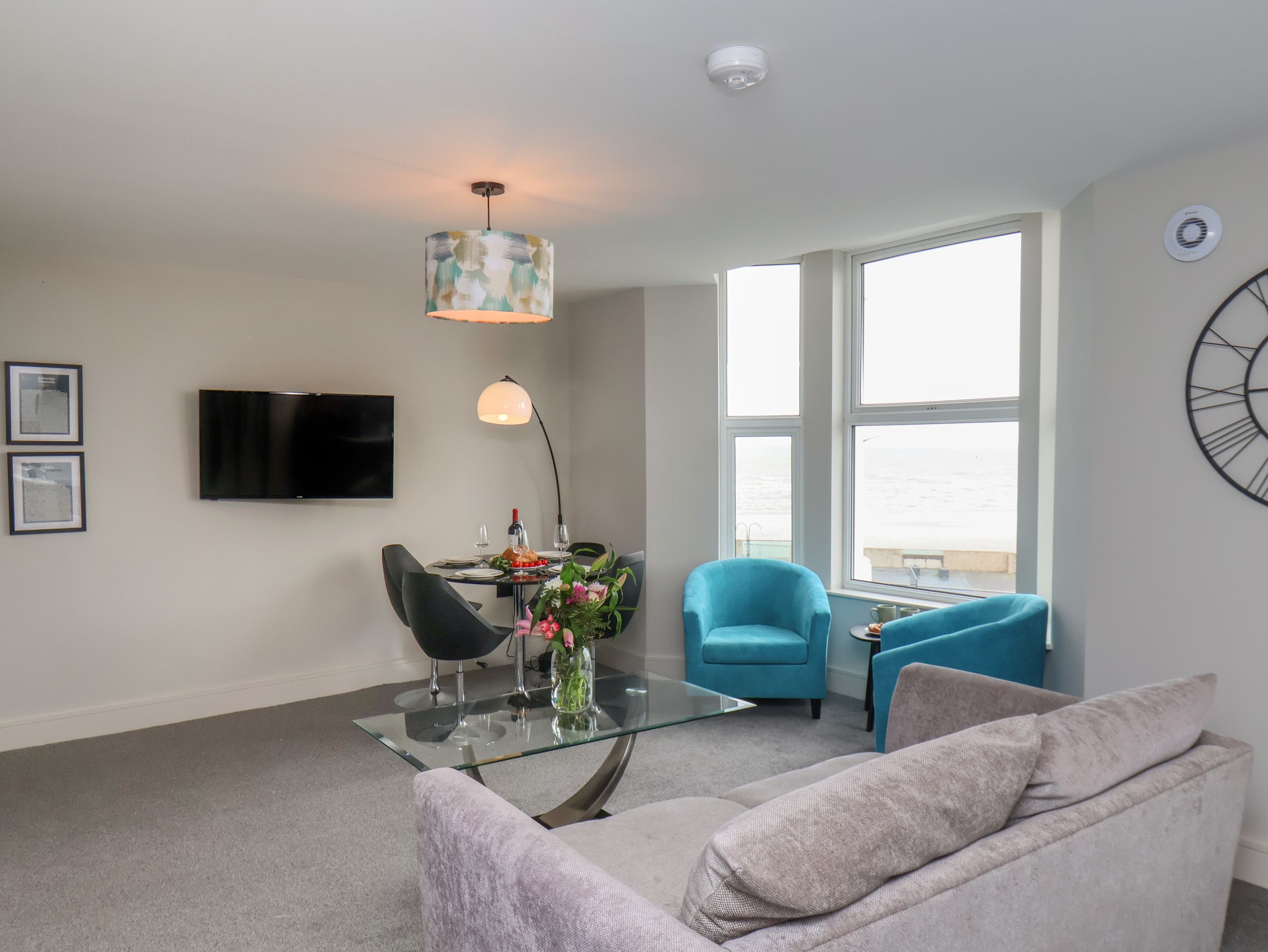 Holiday home Apt 5 @ Hunter's Quay is a first-floor apartment with one super-king-size (zip/link can be twin on request) and one double. There's a shower room with walk-in shower, basin, heated towel rail and WC. There's an open-plan living space with kitchen, dining area and sitting area, equipped with an electric oven and hob, microwave, fridge with ice box, washing machine, coffee machine, kettle, toaster and Smart TV. WiFi, fuel and power inc. in rent. Bed linen and towels inc. in rent. Outside you can find permit parking. Pet-friendly. Sorry, no smoking. Nearest shop 0.1 miles, pub 0.2 miles and beach 0.1 mile. Escape to Bridlington at Apt 5 @ Hunter's Quay.