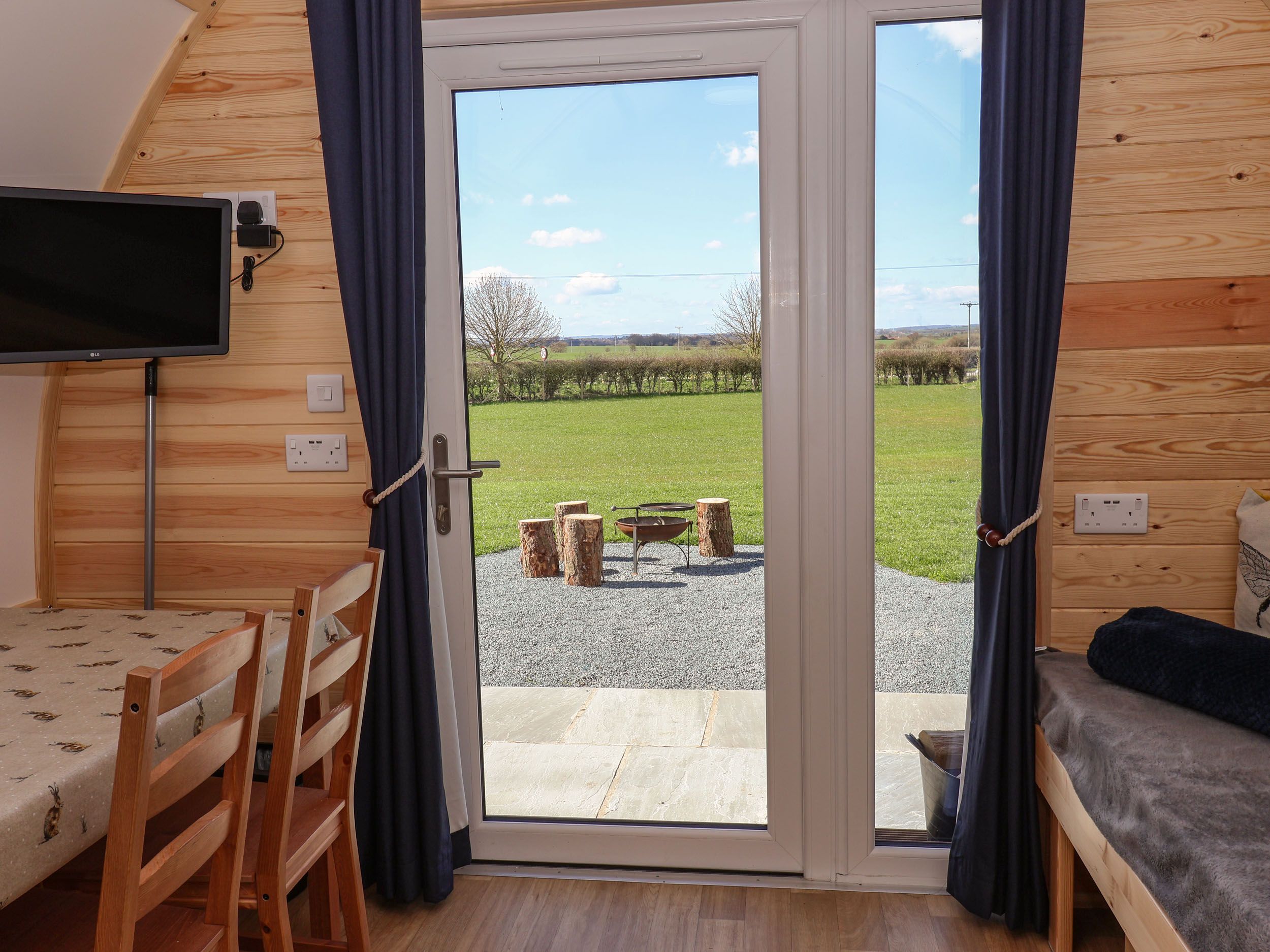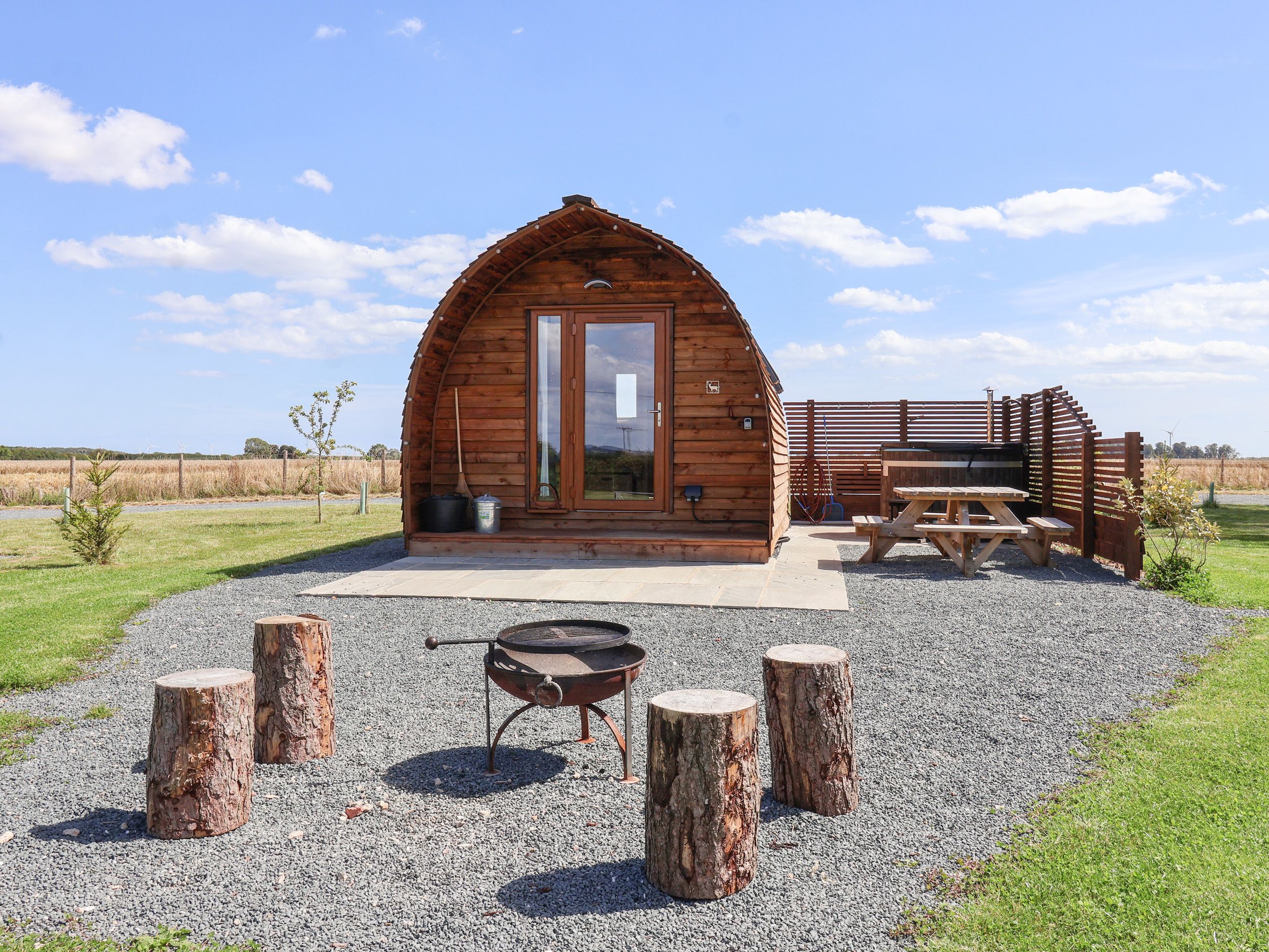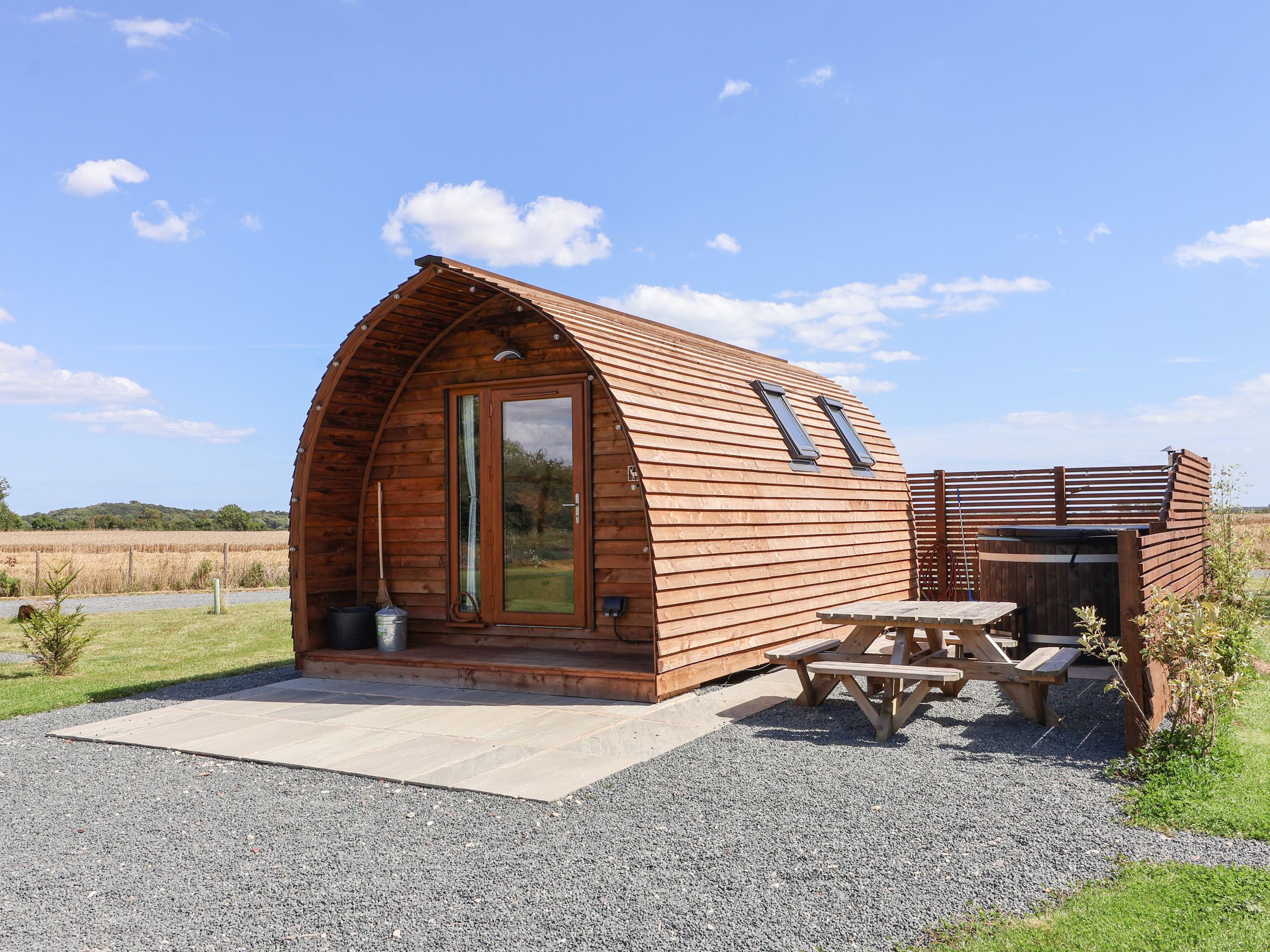 Holiday home The living areas in this glamping pod consist of a studio-style layout with double bed, a kitchenette equipped with two hot plates, microwave, fridge with ice-box, toaster and kettle, a dining table for four and a sitting area with double sofa bed and TV. Outside there is parking available and a front gravelled area with barbecue, hot tub and picnic table. Within 4 miles there is a shop and 2.2 miles a pub. Sorry, no pets and no smoking. WiFi, fuel and power are all included in the price. Experience the countryside from Bevy. Note: There are two steps up into the property, please take care.