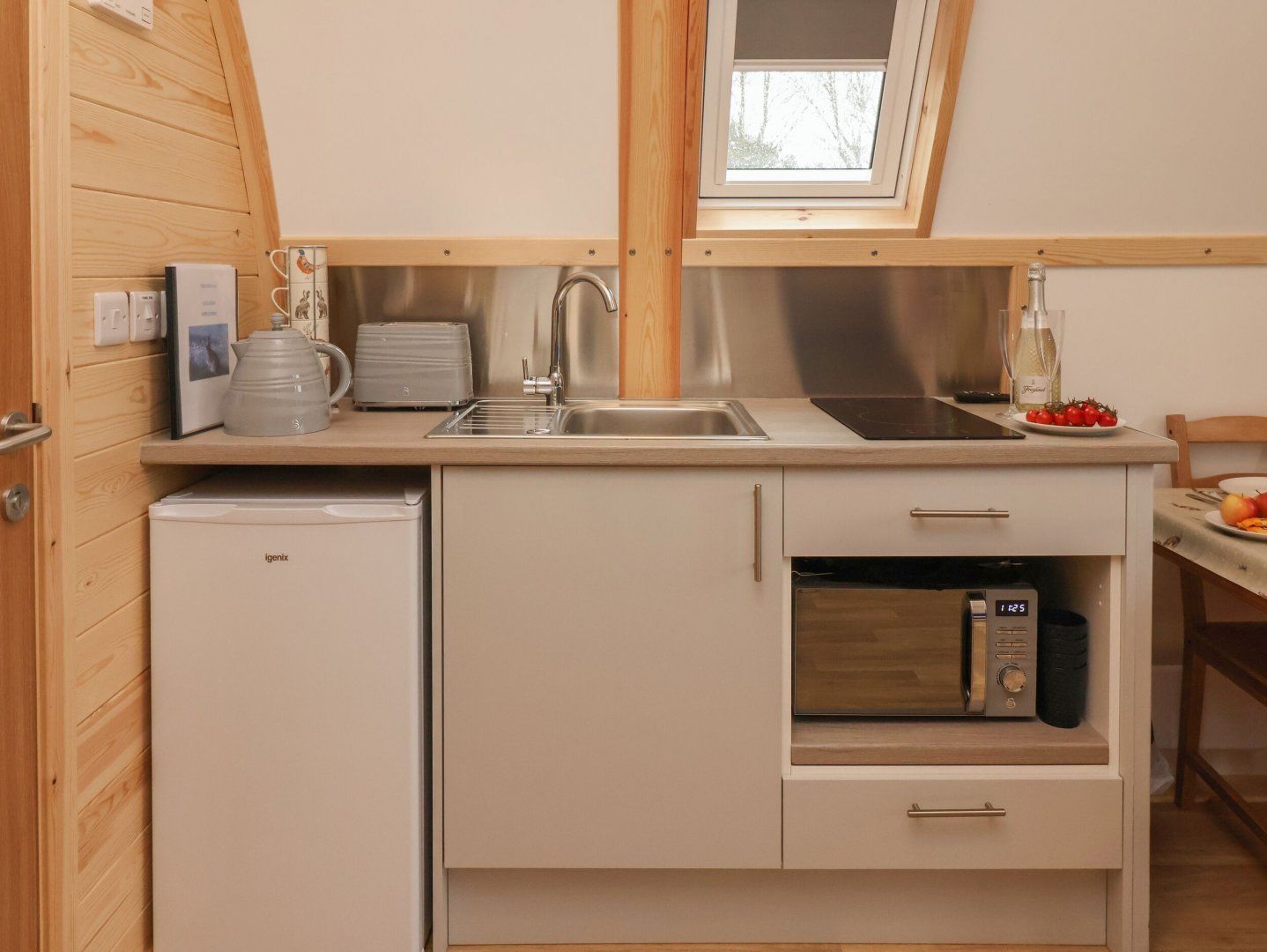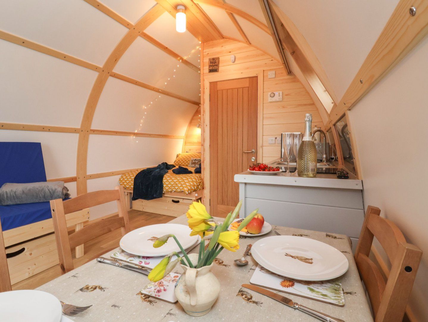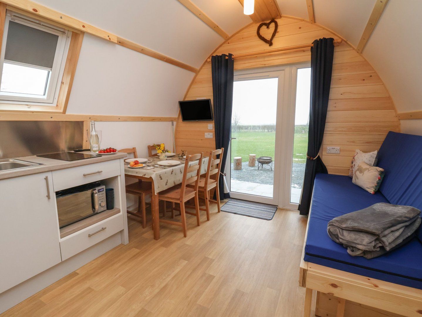 The living areas in this glamping pod consist of a studio-style layout with double bed, a kitchenette equipped with two hot plates, microwave, fridge with ice-box, toaster and kettle, a dining table for four and a sitting area with double sofa bed and TV. Outside there is parking available and a front gravelled area with barbecue and picnic table. Within 4 miles there is a shop and 2.2 miles a pub. Sorry, no pets and no smoking. WiFi, fuel and power are all included in the price. Make memories in the countryside at Bouquet. Note: There are two steps up into the property, please take care.