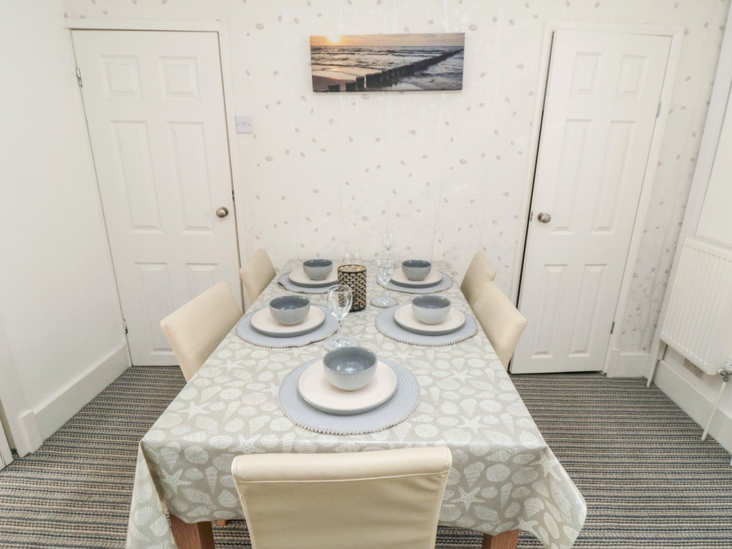 Amenities Gas heating. Electric oven, gas hob, microwave, fridge/freezer, washing machine. Smart TV, WiFi. Power inc. in rent. Bed linen and towels inc. in rent. Travel cot, high chair and stair gate included. Off road parking. Rear enclosed courtyard with furniture. Sorry, no pets and no smoking. Shop 0.2 miles, pub 0.1 miles, beach and spa 0.2 miles