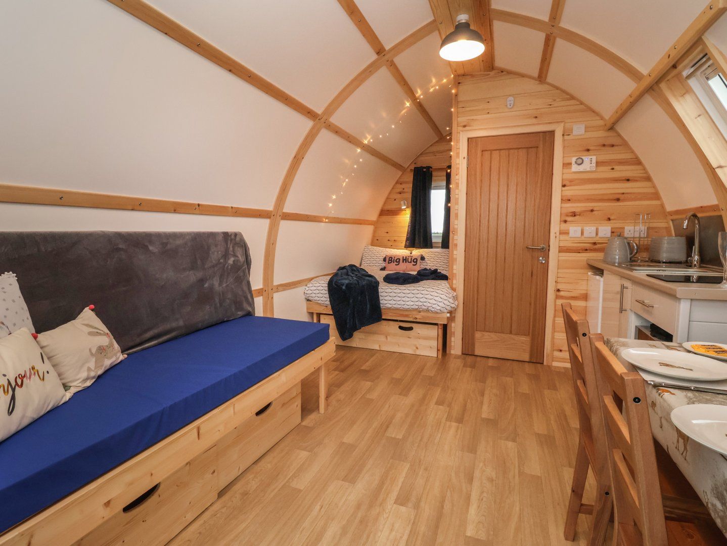 Holiday home The living areas in this glamping pod consist of a studio-style layout with double bed, a kitchenette equipped with two hot plates, microwave, fridge with ice-box, toaster and kettle, a dining table for four and a sitting area with double sofa bed and TV. Outside there is parking available and a front gravelled area with barbecue, hot tub and picnic table. Within 4 miles there is a shop and 2.2 miles a pub. Sorry, no pets and no smoking. WiFi, fuel and power are all included in the price. Enjoy all the countryside has to offer at Parliament. Note: There are two steps up into the property, please take care.