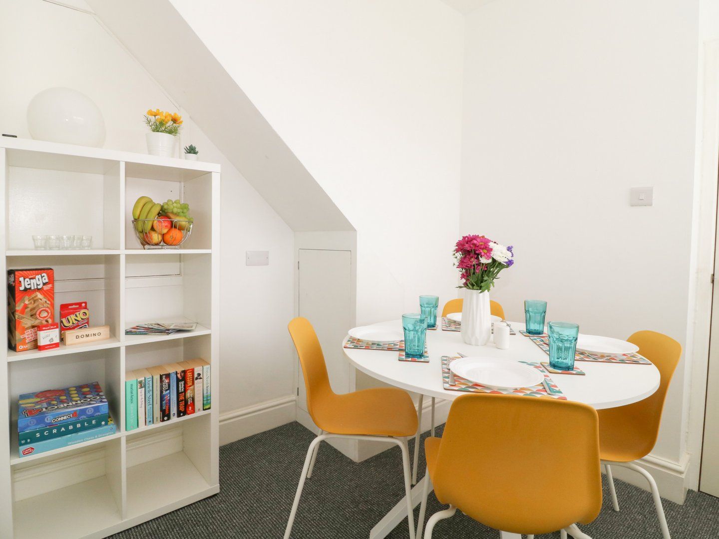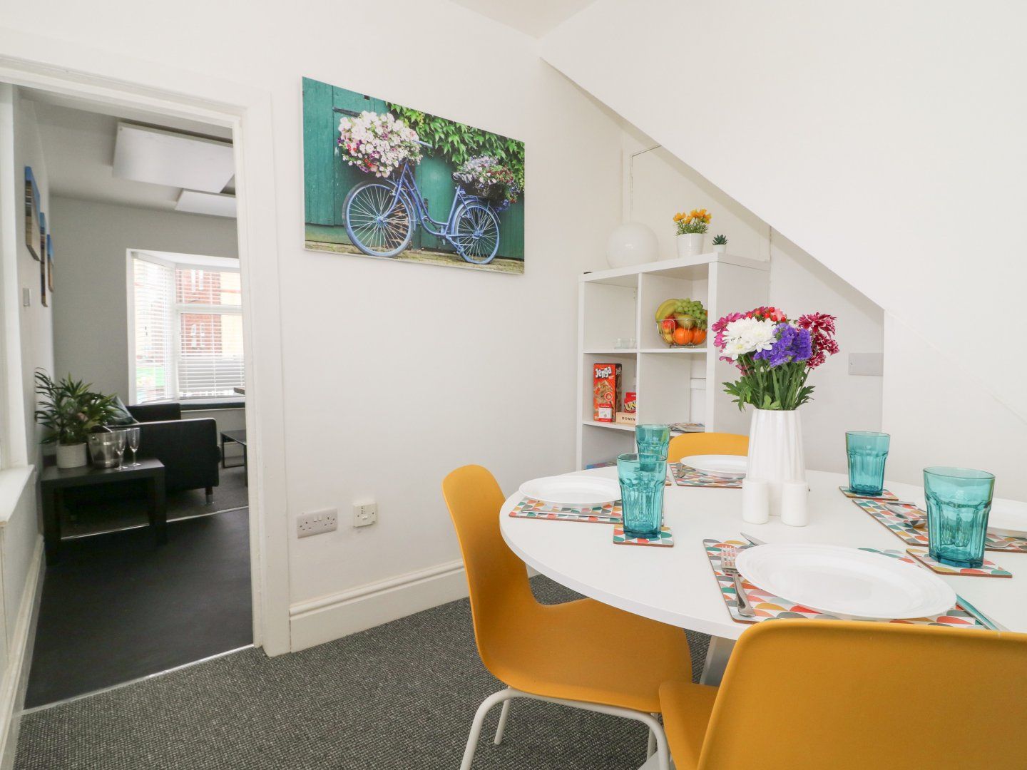 Holiday home The living areas in this first-floor, duplex apartment include a kitchen/living room with an electric oven and hob, microwave, fridge, coffee maker, and TV, and a dining room with a table for four guests. The bedrooms consist of a second-floor king-size and a second-floor twin, along with a first-floor bathroom. Outside, there is permit parking on the roadside for one car. Within 0.3 miles, there is a shop, and within 0.1, a pub and beach. Please note that pets and smoking are not allowed. WiFi, fuel, power, bed linen and towels are all included in the price. Wave and Sea welcomes a family of four to explore East Yorkshire's incredible coast. Please note: There is a flight of stairs up to the living room and bathroom, and then a second flight of stairs up to the bedrooms.