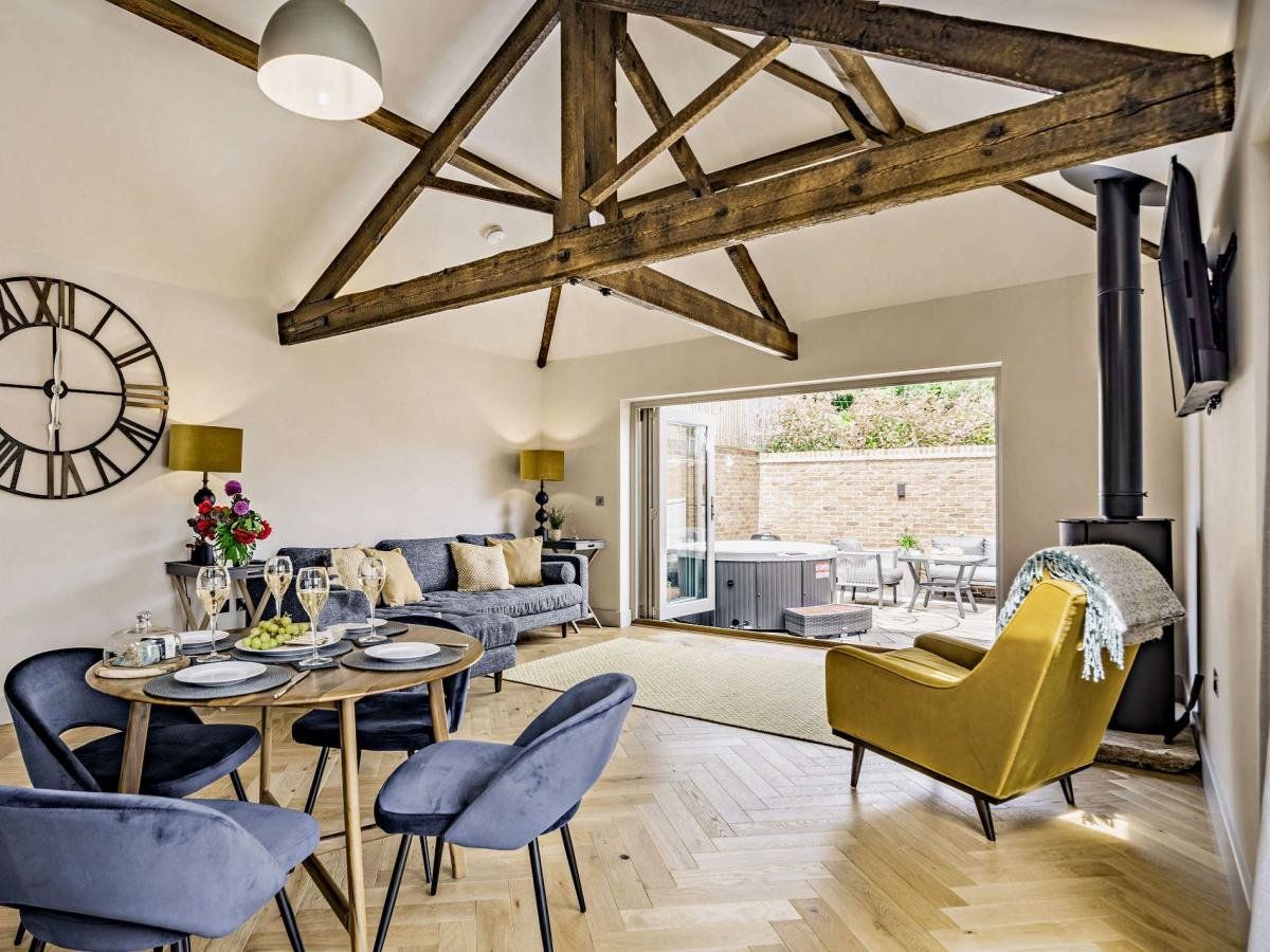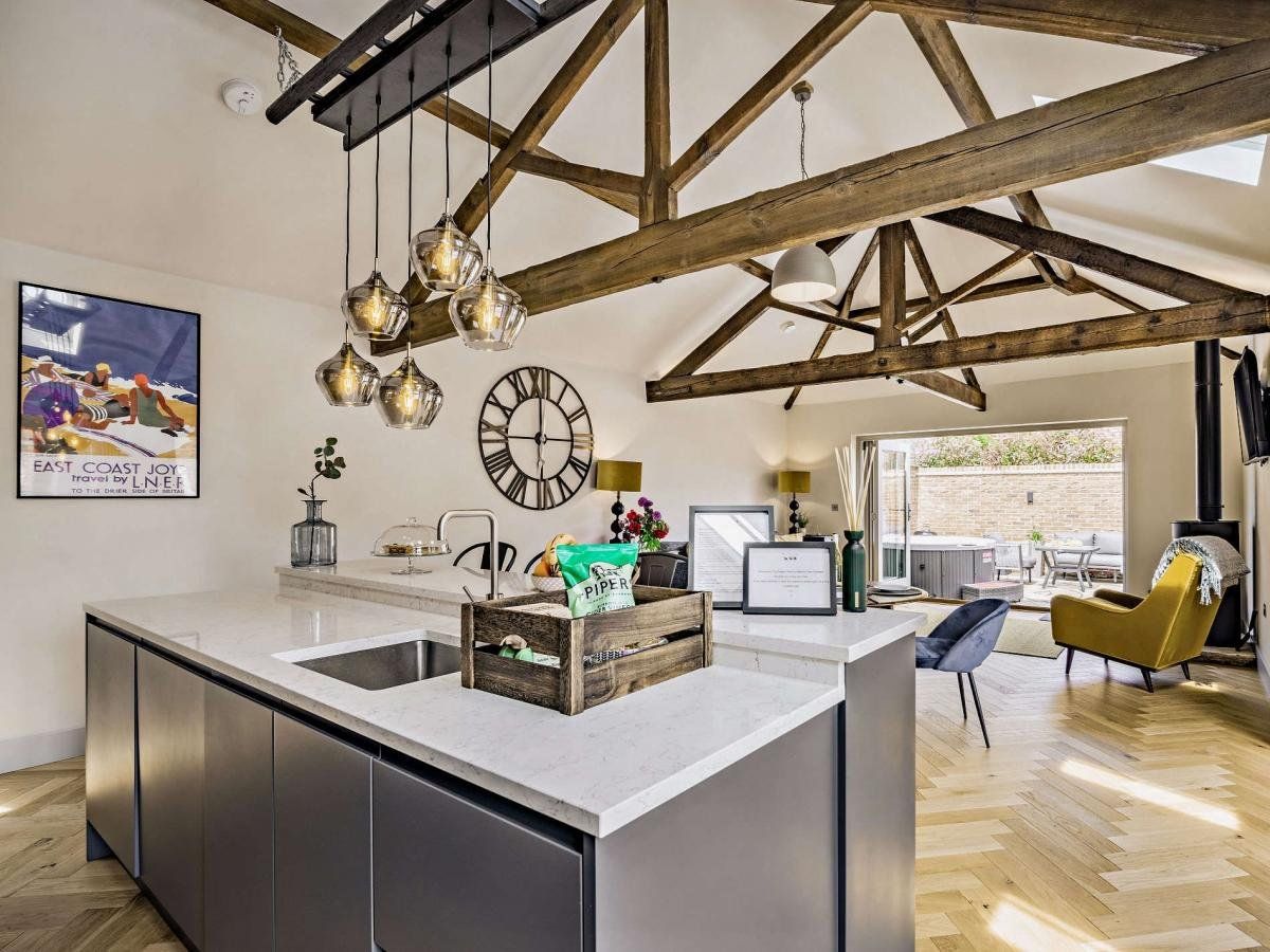 The family-friendly barn is the ideal base for active days in the Yorkshire Wolds or coastline and features an open-plan lounge/kitchen/diner, en-suite bedrooms, and an enclosed patio garden with a hot tub.