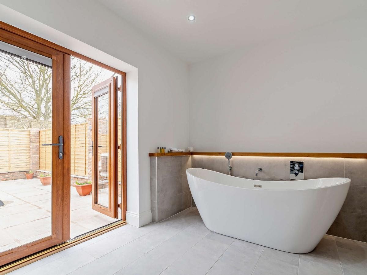 This sleek, stylish holiday home for two is an idyllic base for a getaway boasting a private hot tub, slipper bathtub and warming wood burner.