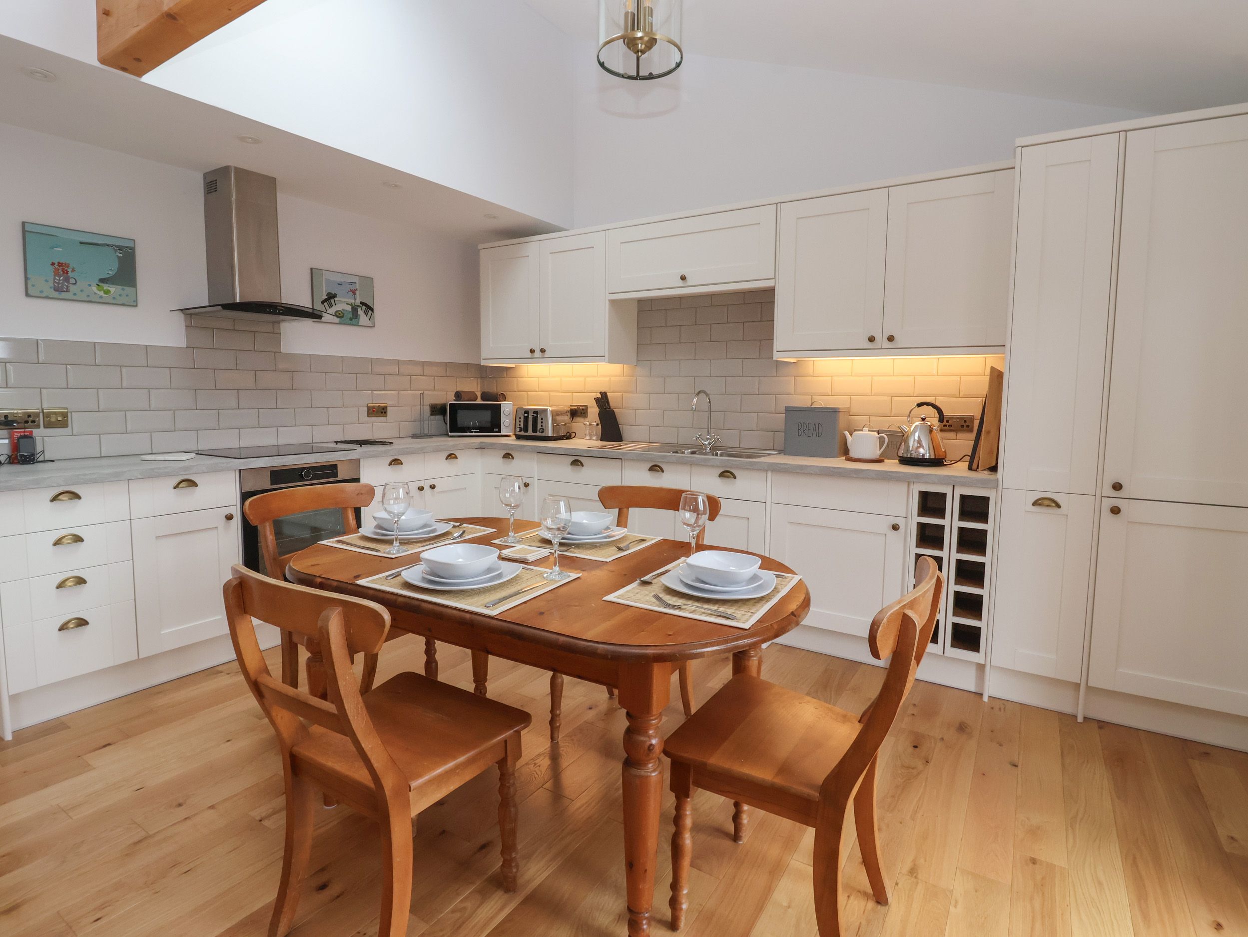 Accomodation Details Single-storey. Two bedrooms: 1 x king-size with access to Jack-and-Jill bathroom, 1 x twin with en-suite walk-in shower, basin, heated towel rail, and WC. Jack-and-Jill bathroom with bath, walk-in shower, basin, heated towel rail, and WC. Open-plan living space with kitchen, dining area and sitting area