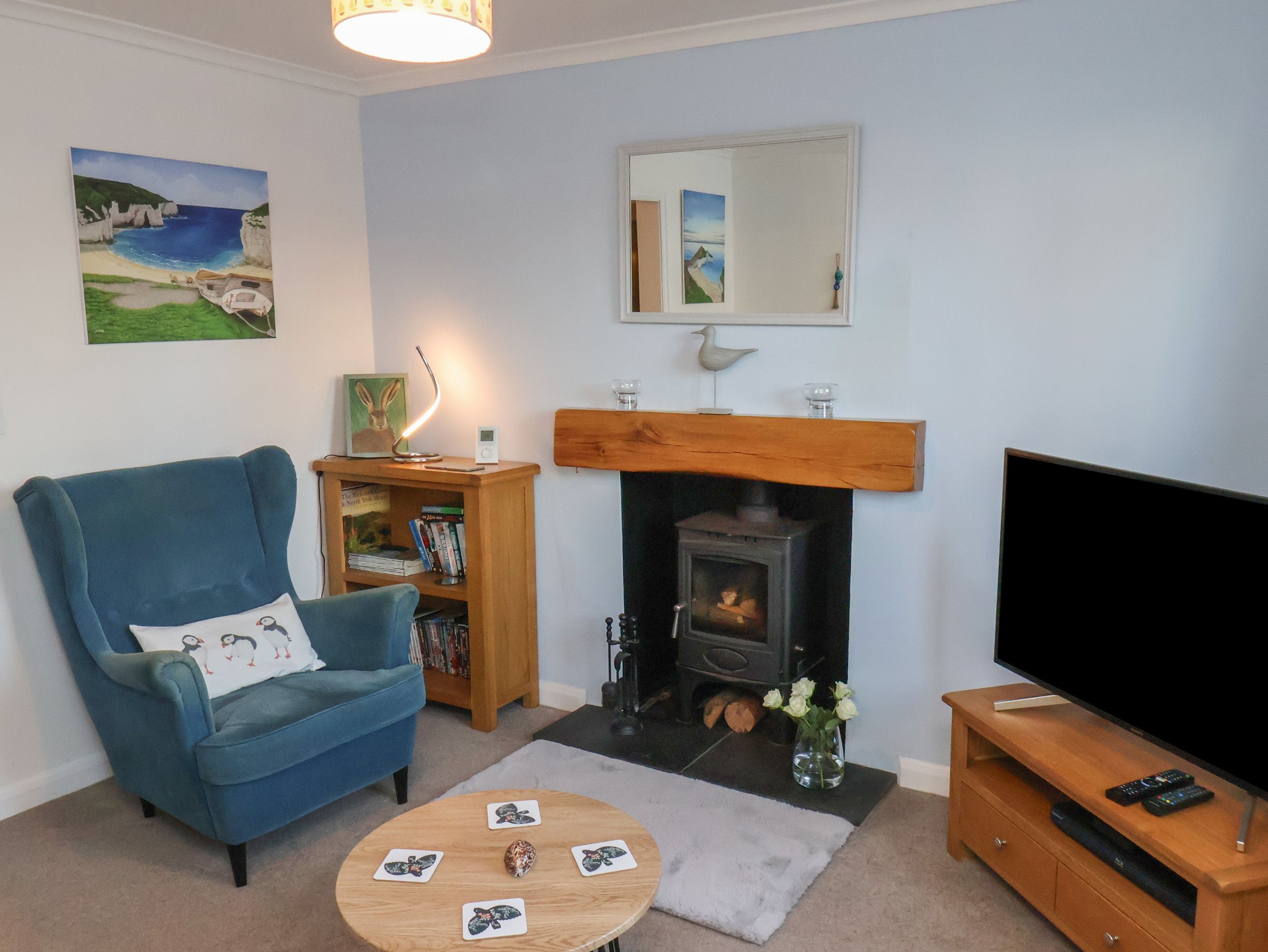 Amenities Central heating with woodburning stove. Electric oven and hob, microwave, fridge/freezer, washing machine, dishwasher, coffee machine. TV, WiFi. Fuel, power and starter pack for woodburning stove inc. in rent. Bed linen and towels inc. in rent. Roadside parking. Enclosed rear garden with furniture. Secure bike storage. One well behaved dog. Sorry, no smoking. Shop 0.3 miles, pub 0.1 miles, beach 1 mile