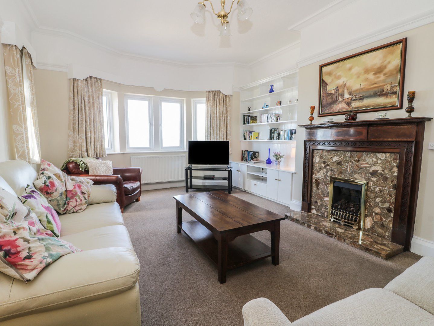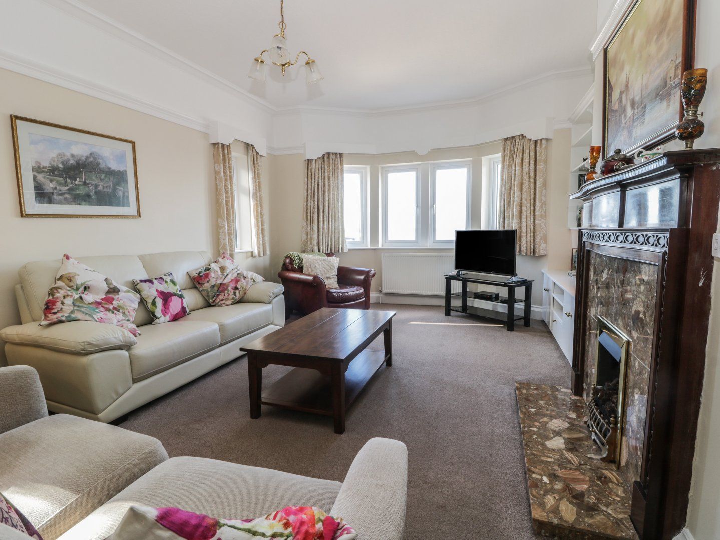 Lovely large living room overlooking seafront.
