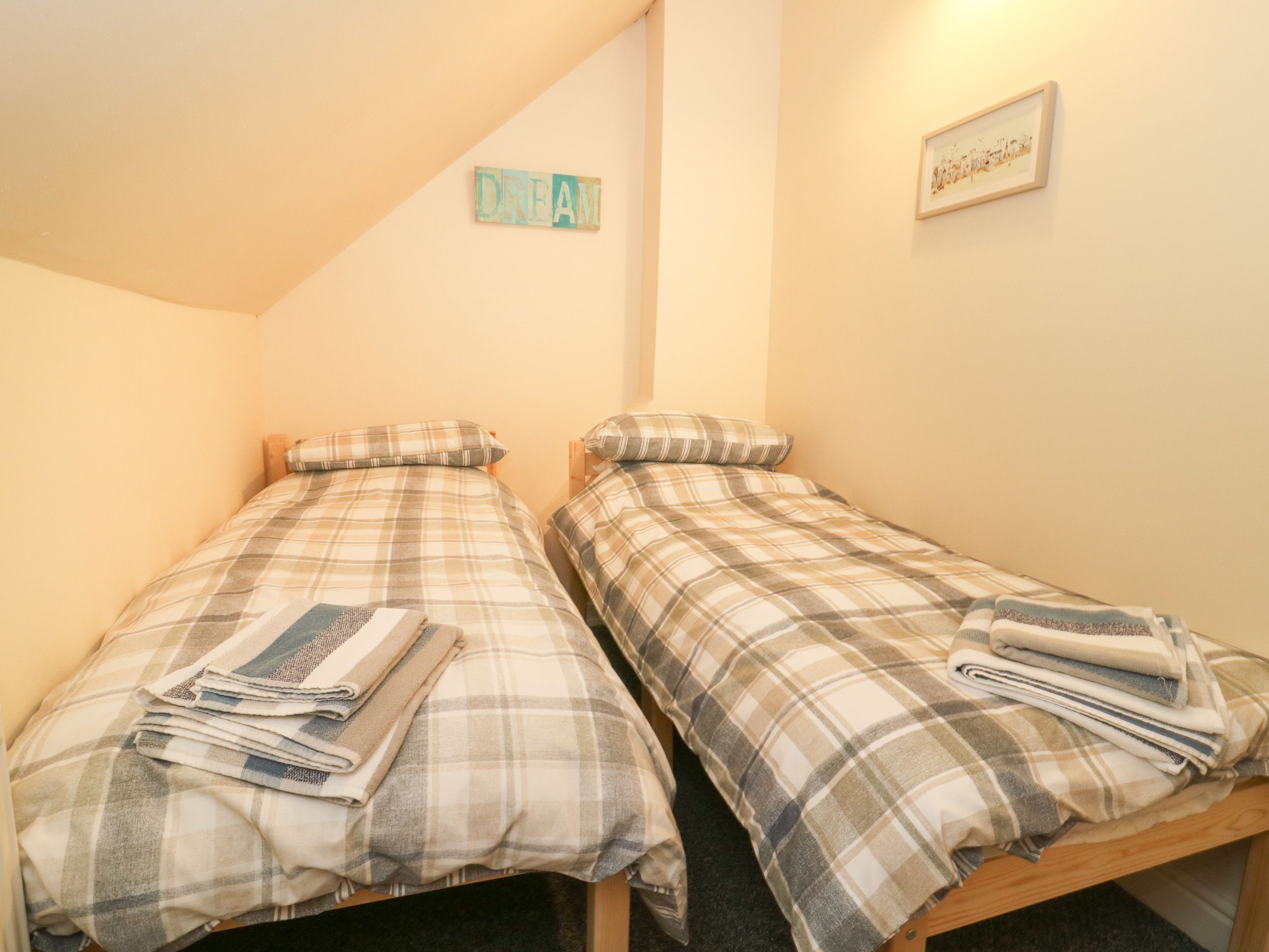 The Pebbles is a first-floor duplex apartment resting in the town of Hornsea, East Riding of Yorkshire. Hosting two second-floor bedrooms, including a double and a twin, along with a first-floor bathroom, this property can sleep up to four guests. There is also a kitchen and a living/dining room on the first floor. The Pebbles makes a delightful base for a holiday by the sea in East Riding of Yorkshire. Gas heating. Electric oven and hob, microwave. Fridge with ice box, washing machine both new in July 2021. Sky TV basic entertainment package (no sports or movies), WiFi. Fuel and power inc. in rent. Bed linen and towels inc. in rent. Roadside parking available over night or for one hour maximum during the day between 9am and 5pm-There is also free 24 hour parking available behind The Victoria Pub just a 2 minute walk away. Within approx 15 miles Burton Constable Hall is a nearby Manor house with gardens and cafe. Hornsea Mere is within walking distance and has boat hire and birdwatching. Sorry, no smoking and no vaping. Shop and pub 0.1 mile, beach 0.7 miles. One well-behaved dog welcome. Note: The double bed can only be accessed from one side Please note: Due to this being a character property, the ceilings are low and the stairs are quirky and narrow/steep and so may not be suitable for people with mobility issues. The property has an entrance then a staircase up to the kitchen bathroom and living room then another staircase to the bedrooms. The double bedroom has a window but the twin bedroom does not.