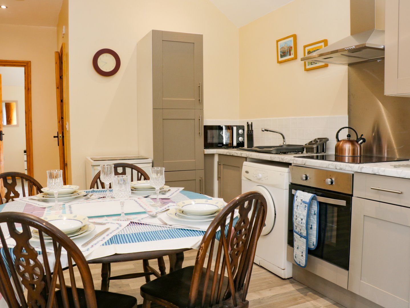 Amenities Electric central heating. Electric oven, ceramic hob, microwave, fridge/freezer, washing machine, TV with Freeview, small selection of books and games. WIFI. Fuel and power inc. in rent. Bed linen and towels inc. in rent. Travel cot and highchair on request. Ample off road parking. Communal lawned gardens and gravelled area. Two well-behaved pets welcome. Sorry, no smoking. Shop 3 miles, pub 4 miles.