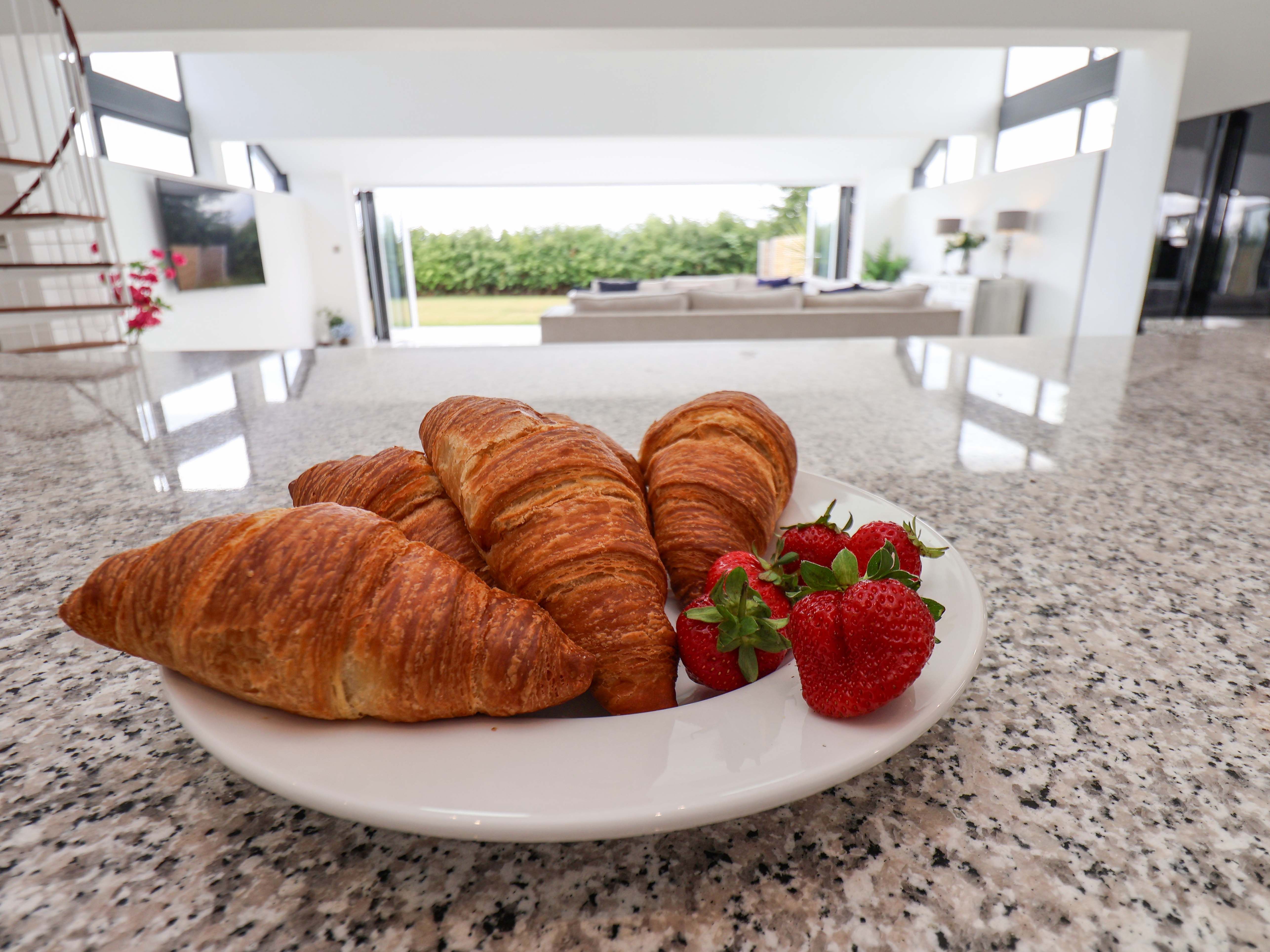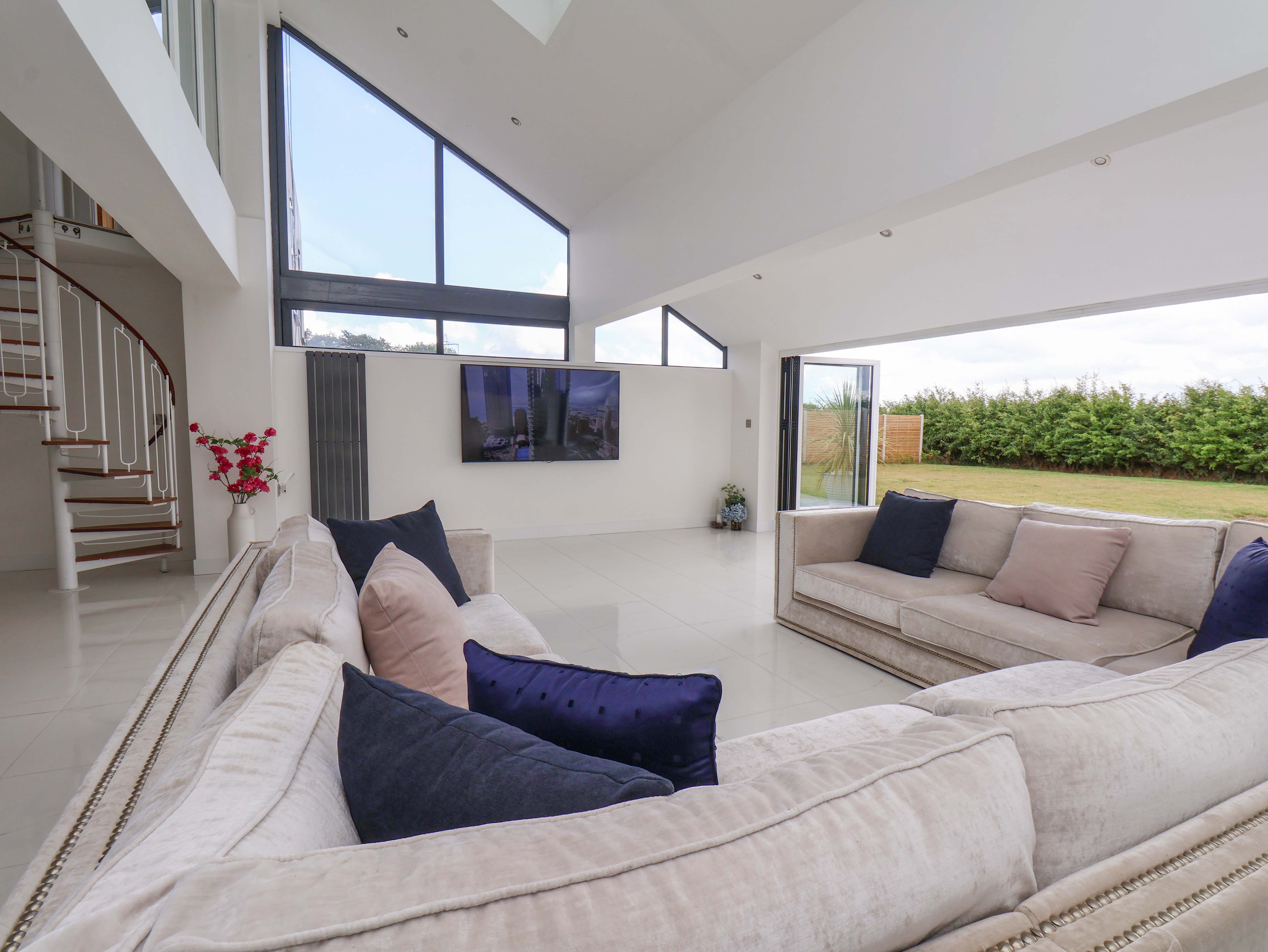 Accomodation Details Four bedrooms: 1 x double with Smart TV, juliet balcony, and en-suite with freestanding bath, basin, and heated towel rail and WC, 1 x ground-floor double with en-suite walk-in shower and basin and WC, 2 x ground-floor double. Ground-floor bathroom with bath, walk-in shower, basin, heated towel rail. Cloakroom with basin and WC. Open-plan living space with kitchen, dining area, and sitting area with woodburning stove. Utility.