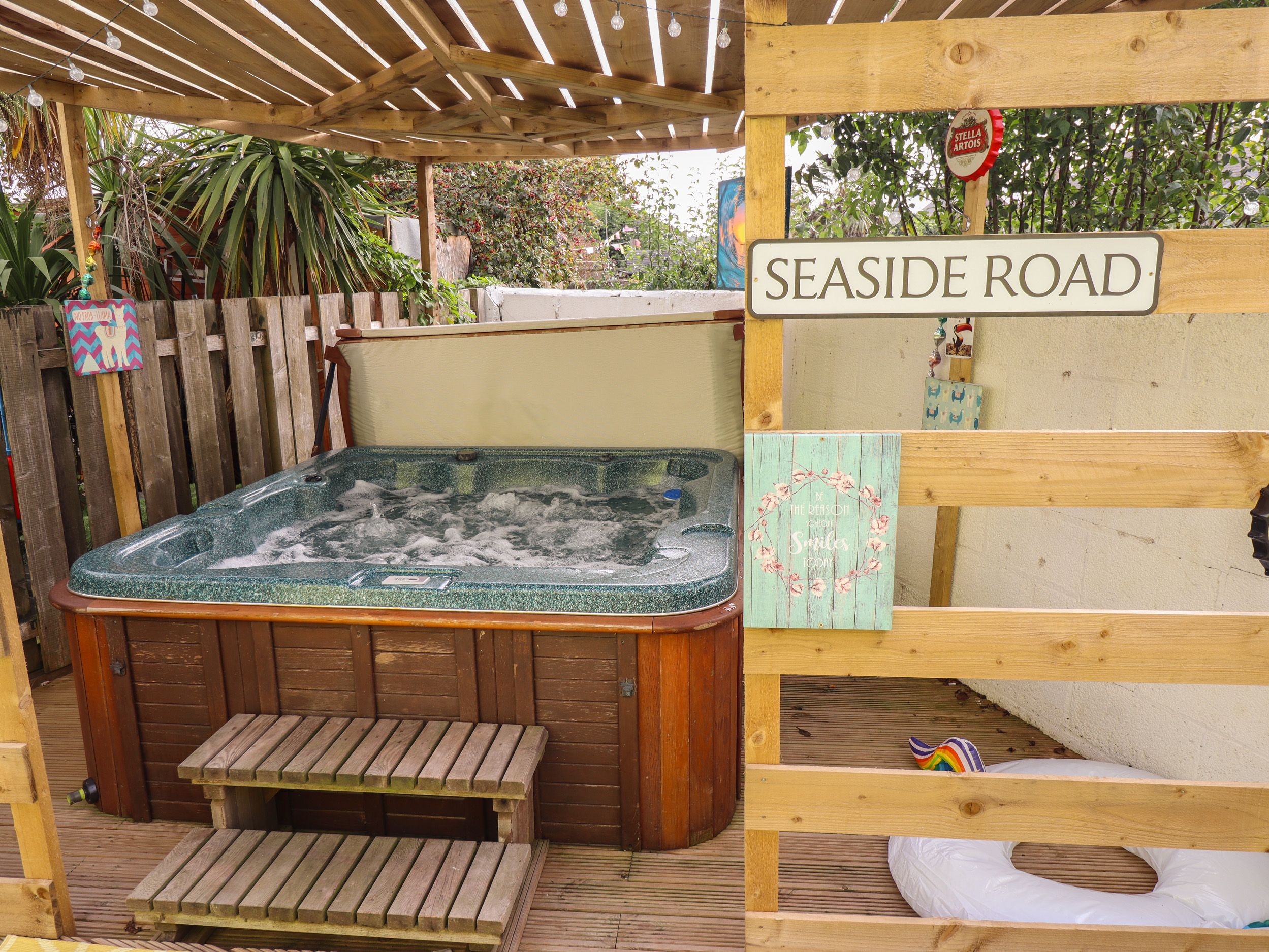 The location was excellent, with the beach and shops 5 minutes walk away, the enclosed back garden, all decking though smallish and directly next to the neighbours is without grass, but ideal for dogs, eating outside using the hot tub etc . The social areas, especially the pool table, were great and made for fun family time.
