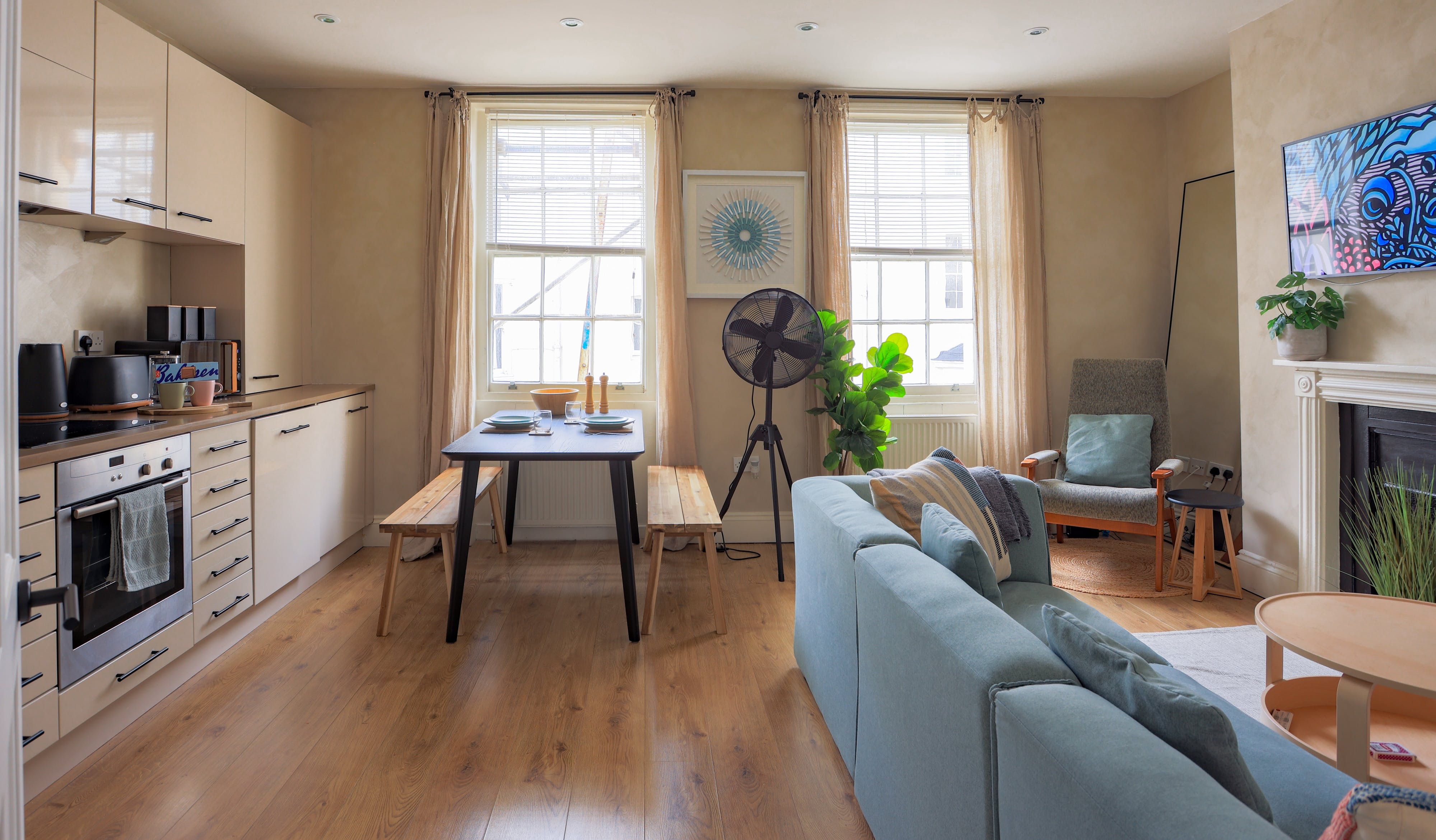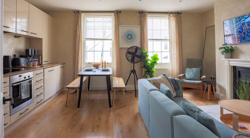 Settle into this boutique seaside apartment situated on a quiet residential street in the heart of Kemptown, just steps from the independent shops and cool cafes that line nearby St George's Road. Known for its laidback vibes, community spirit, and LGBTQ-friendly nightlife, the location offers a tantalising taste of local life conveniently close to Brighton's centre.