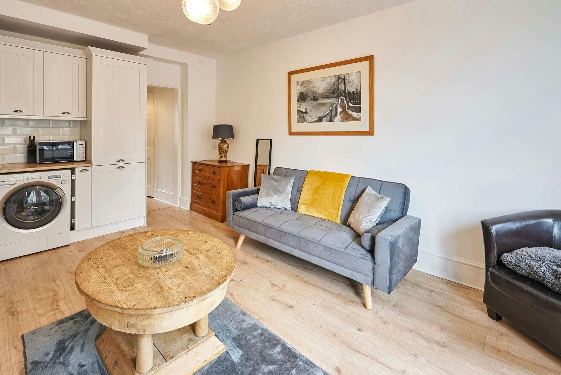Moments from Brighton’s seafront and just around the corner from The Lanes, this home makes a breezy base for beach days, boutique browsing, and exploring the city’s creative pulse. There’s a relaxed sitting area, space to cook at home, and a restful back bedroom for a good night’s sleep. Everything’s been considered — from the deep bath for unwinding after a day out, to the soft lighting and artwork that bring warmth to each room. Whether you’re here for the weekend or staying longer, it’s a classic Brighton escape with space to spread out and switch off.