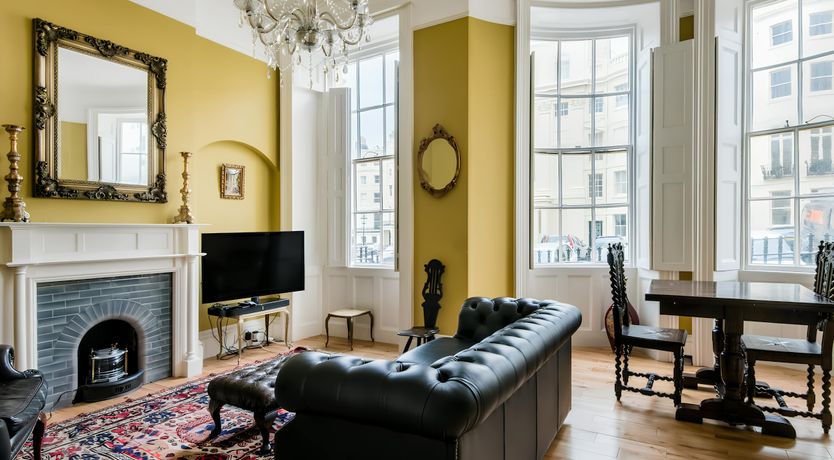 Set five minutes back from Brighton's famous pebbled coastline, this ground floor Regency apartment is a solid base for couples and solo travellers looking to explore the storied and fun-loving city. Distinctively decorated, the home is on the smaller side, offering a living room with dining table, a cosy double bedroom, a straightforward bathroom and a refreshingly good sized kitchen. While the living room sofa bed can accommodate a third guest, this home is perhaps best for groups of up to two, who can walk east and reach Brighton's many bars, clubs and cultural landmarks (including the wonderful Brighton Pier) within half an hour.