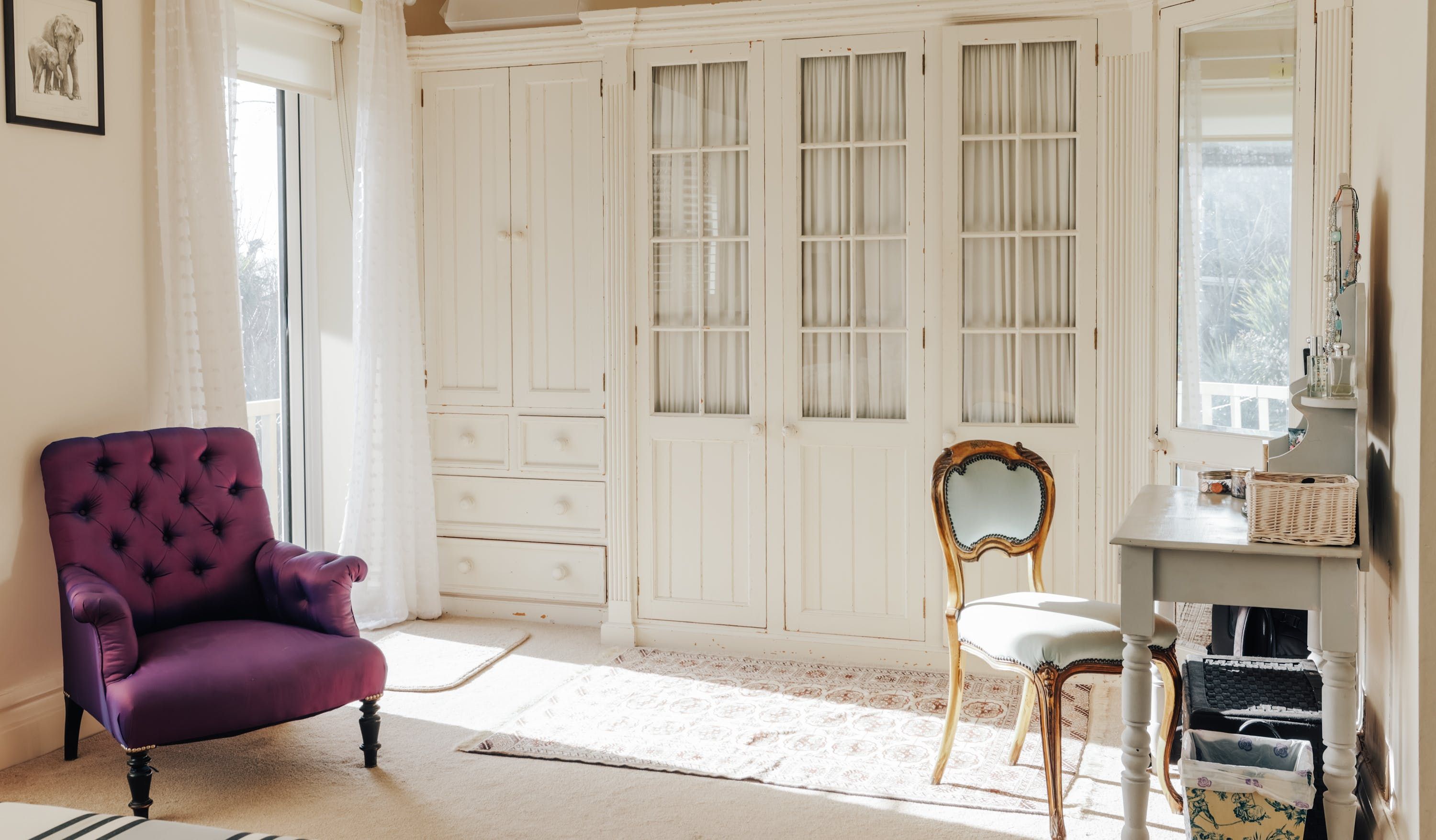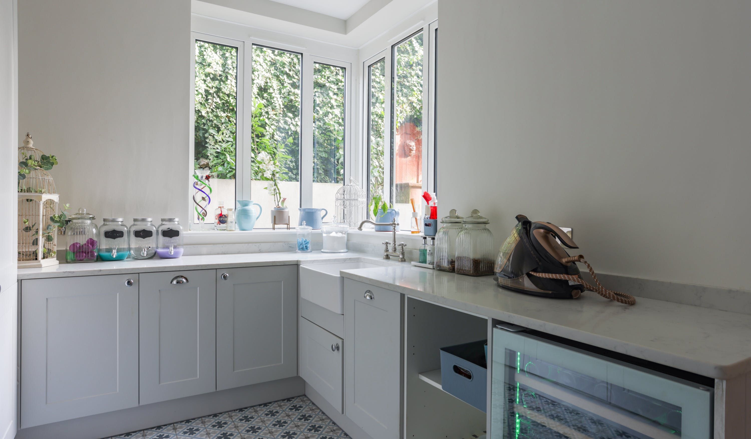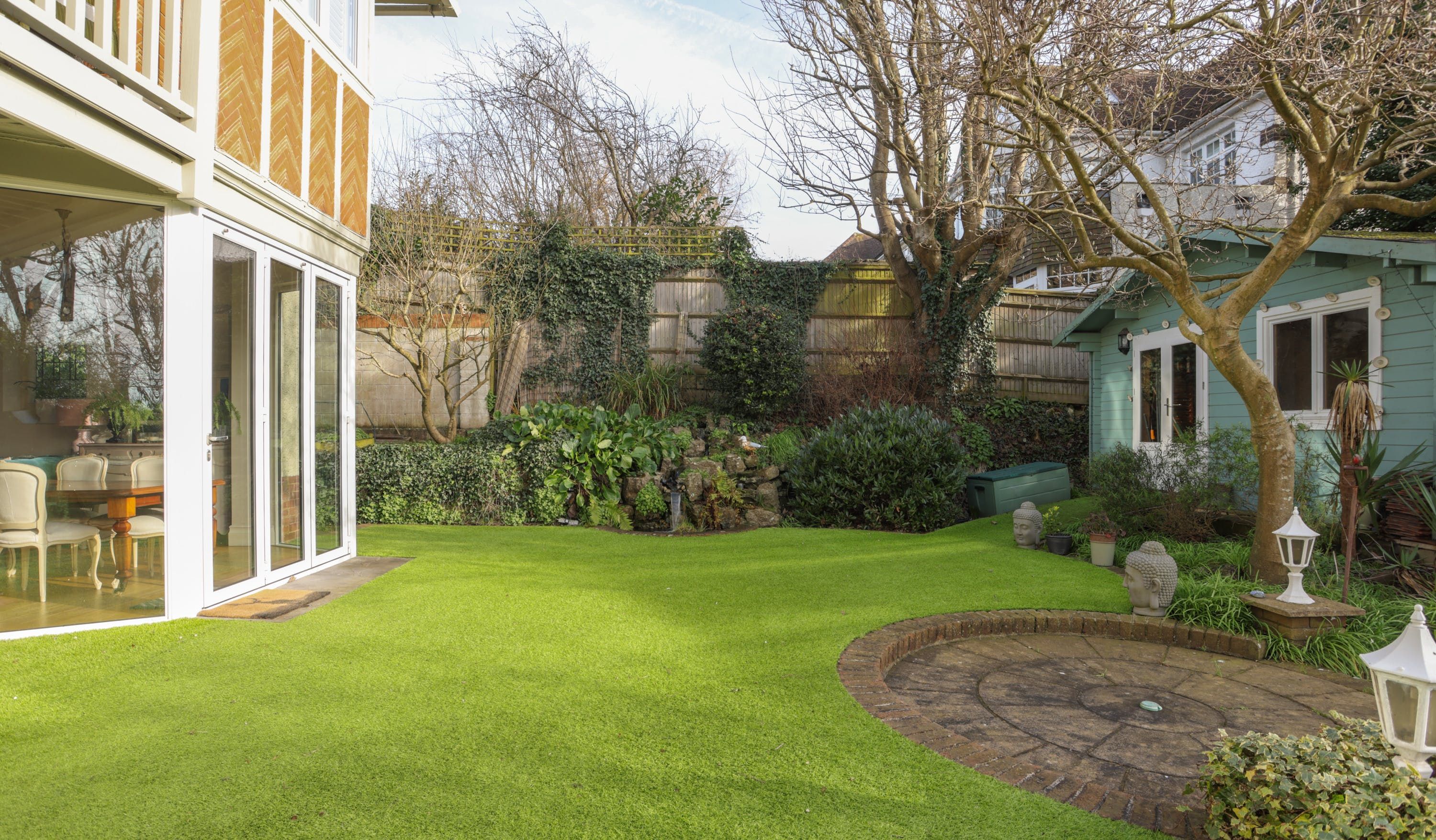 The home itself is in the style of a Victorian villa, with symmetrical bay windows flooding the place with light inside. There’s a bench up on the balcony, overlooking the garden for a quiet moment. The garden itself faces south, so there’s plenty of sunlight in the evening. Perfect if you’re planning to take dinner on the terrace, or sit on the swing seat with something bubbly.