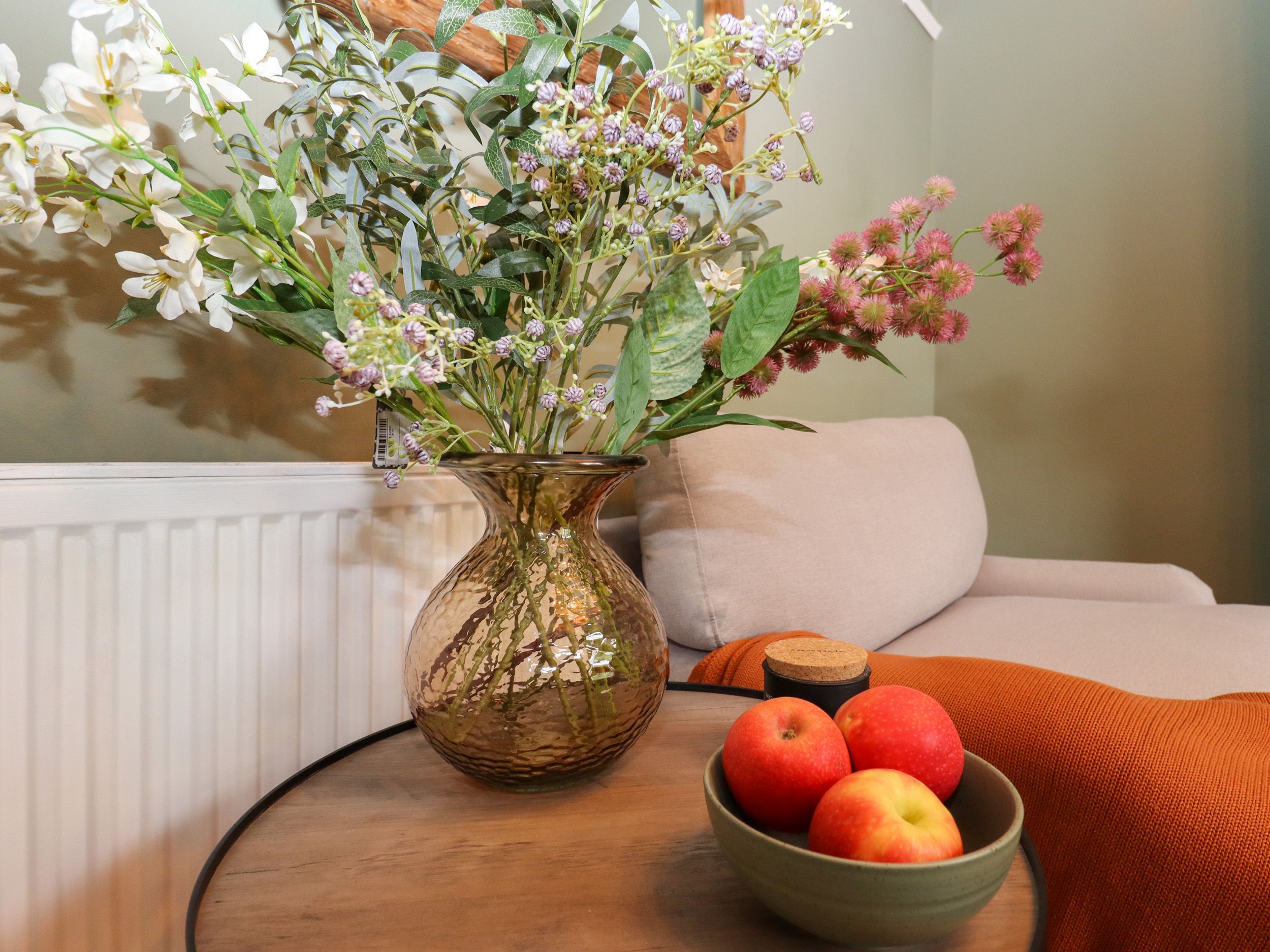 Accomodation Details Please note: due to the size and configuration of this property it's recommended to comfortably accommodate up to 3 adults, or 2 adults and 2 children. Two bedrooms: 1 x king-size, 1 x twin. Ground-floor shower room (off kitchen) with shower and bath, basin, heated towel rail. Small kitchen. Living/dining room