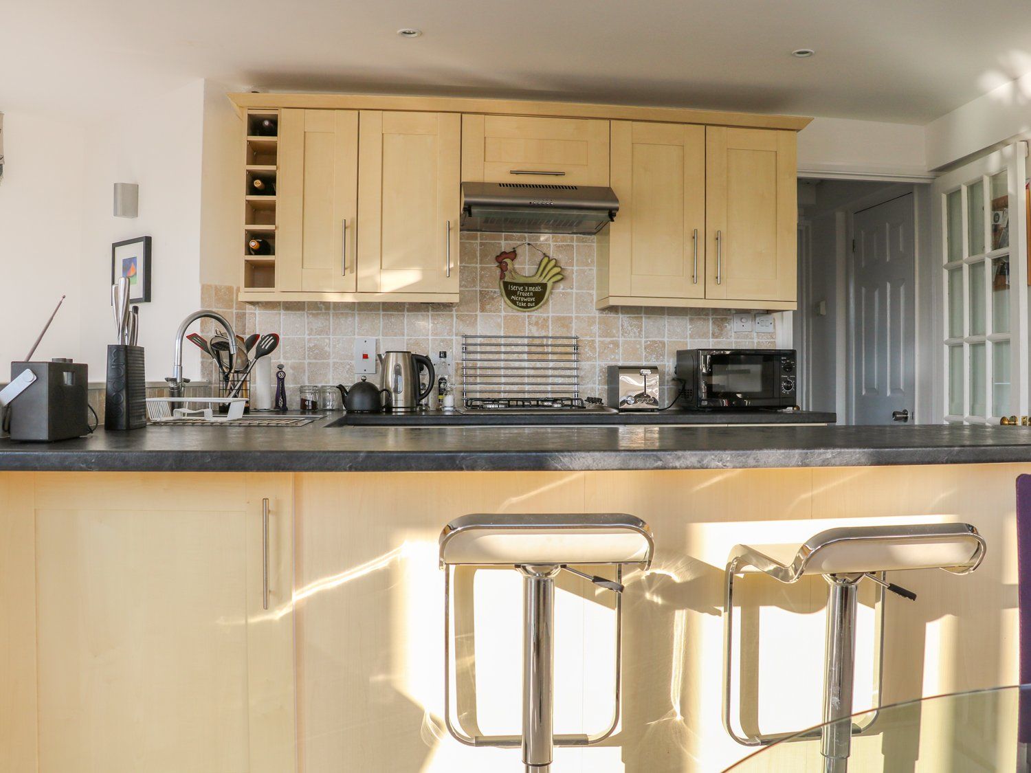 Gas central heating. Electric oven and gas hob, microwave, toaster, kettle, TV. Fuel and power inc. in rent.WIFI, Bed linen and towels inc. in rent. Off-road parking for one car. Private enclosed decking area with furniture. Sorry, no pets and no smoking. Shop and pub 8 mins walk. Note: Though the property is all ground floor there are steps leading up to a decking area in front and may not be suitable for those with limited mobility. Please note that access does cross a section of privately owned unmade road of about 25 metres, which can be uneven; please take care when crossing.