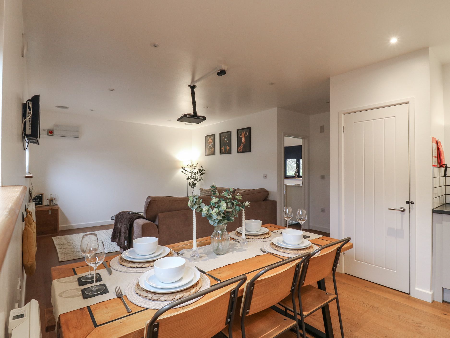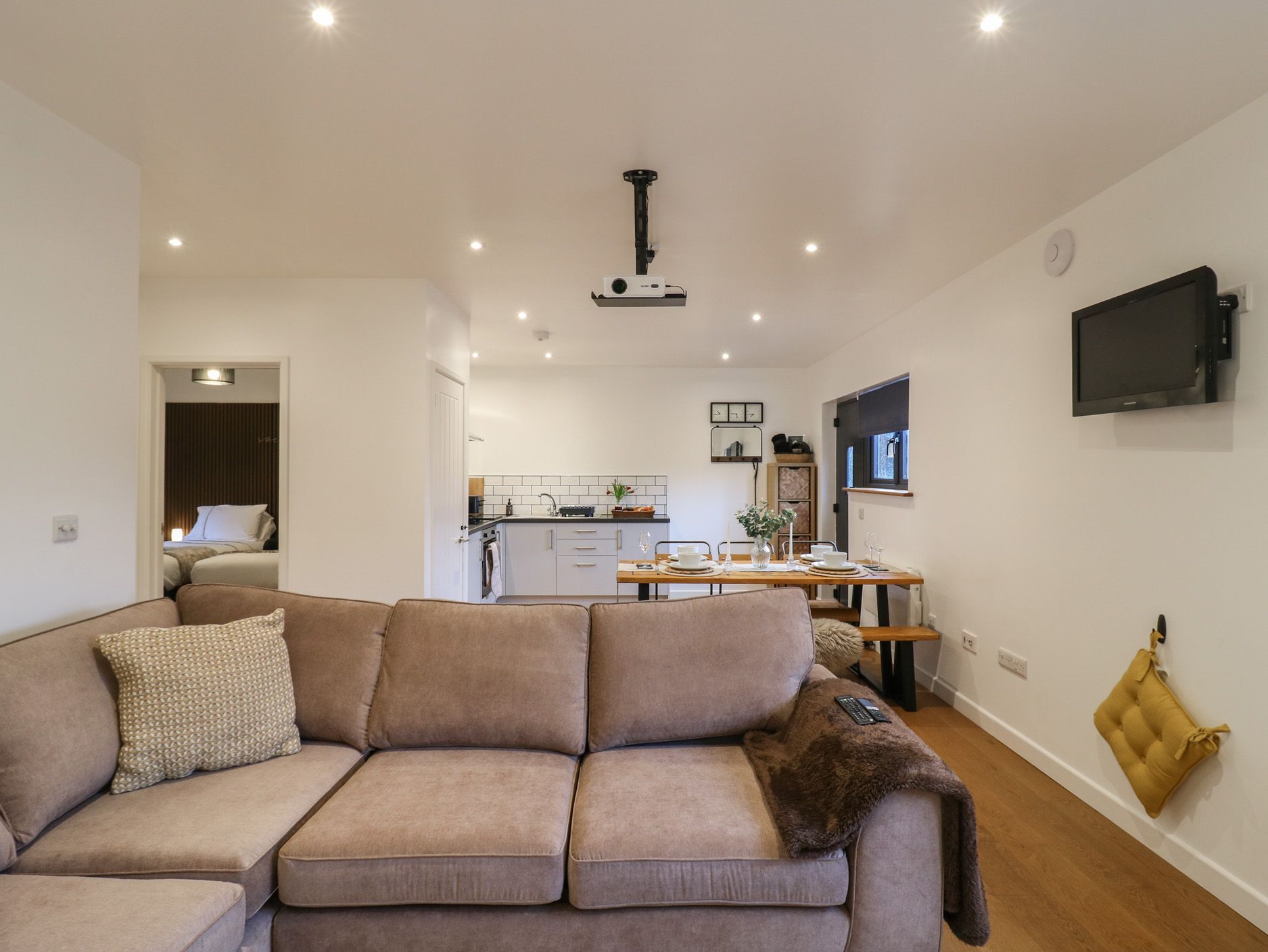 Accomodation Details Single-storey. Two bedrooms: 1 x king, 1 x twin (zip/link, can be double on request). Shower room with walk-in shower, basin, heated towel rail, and WC. Open-plan living space with kitchen, dining area and sitting area with a pull out double sofa bed