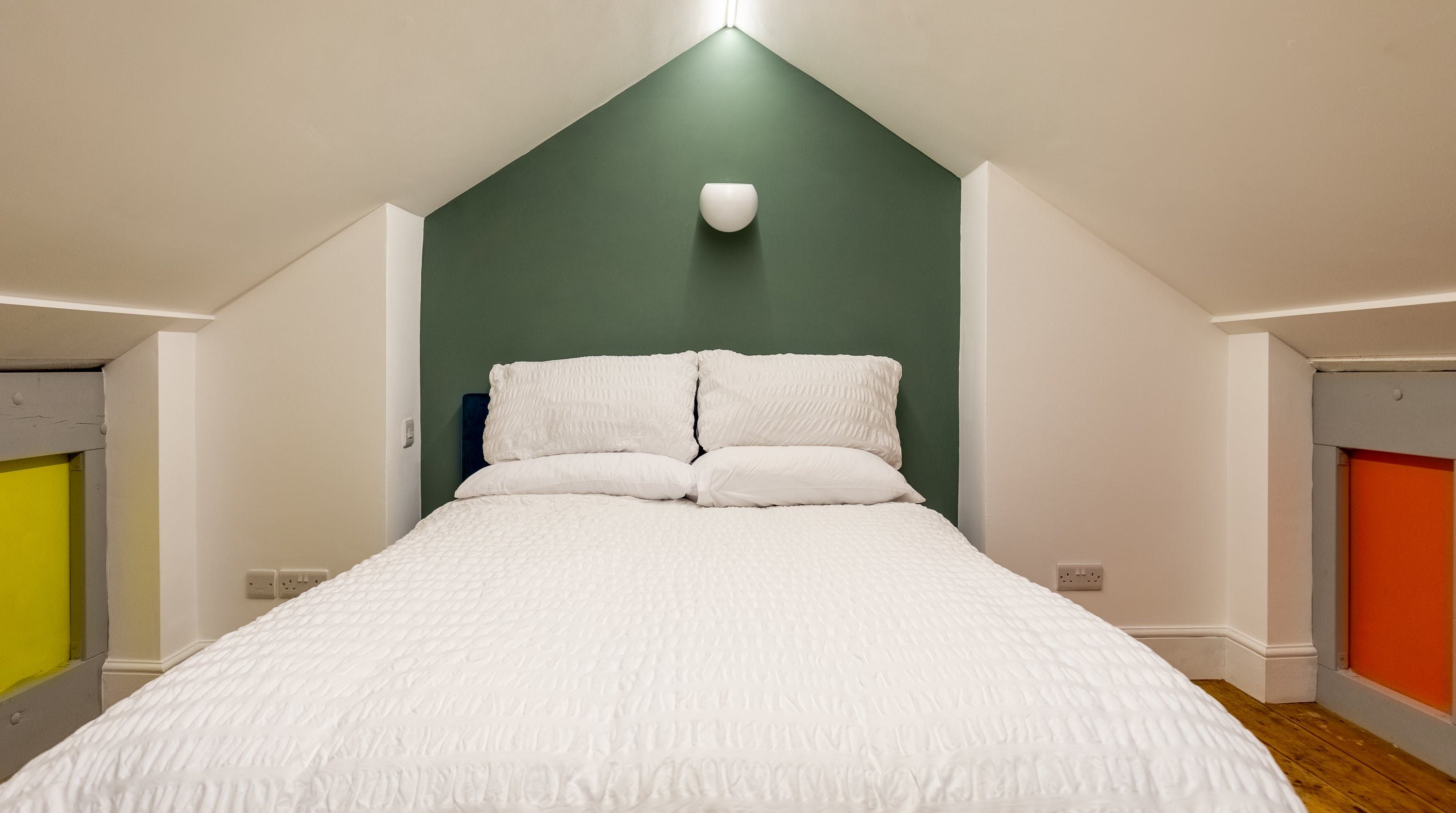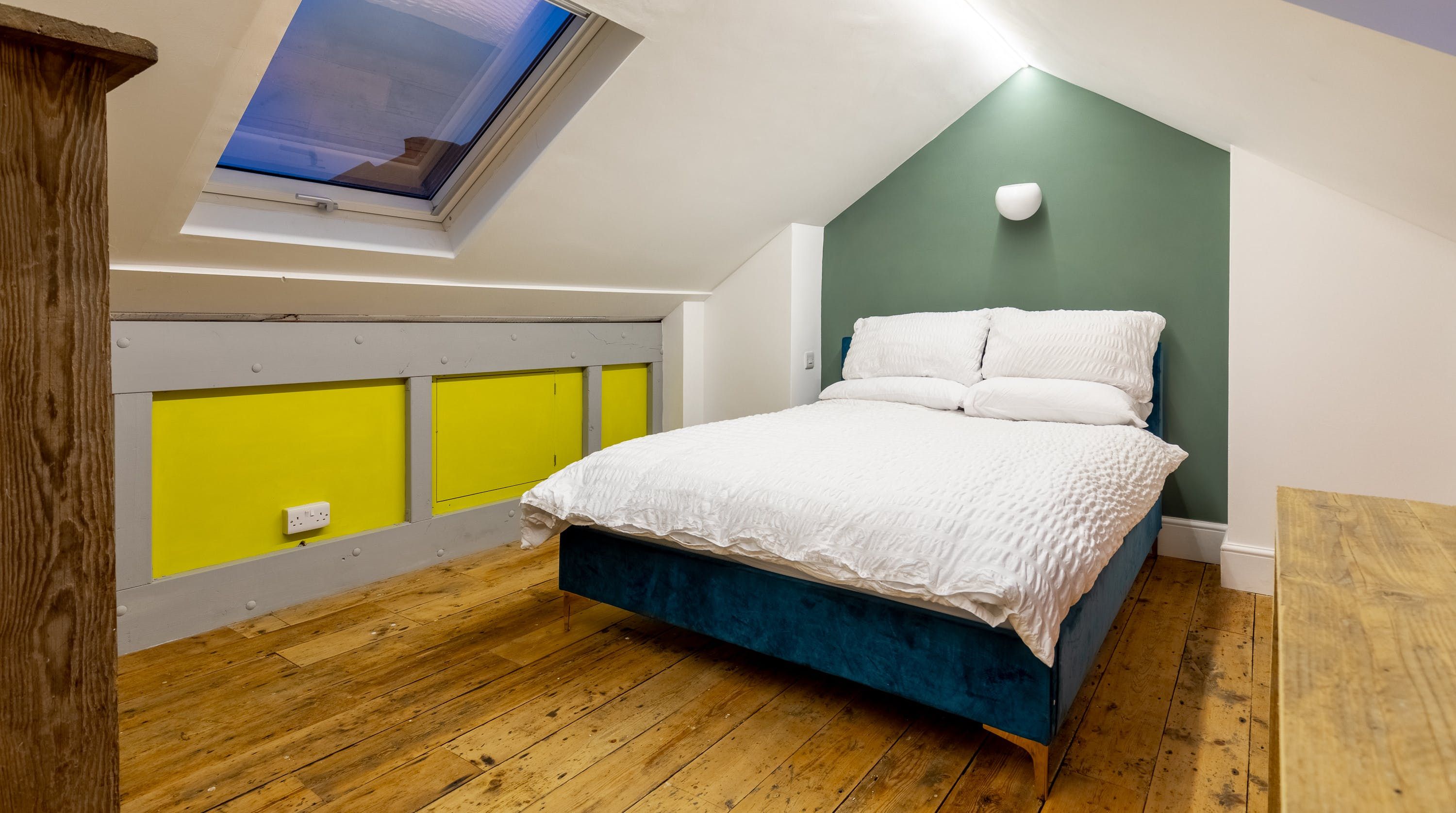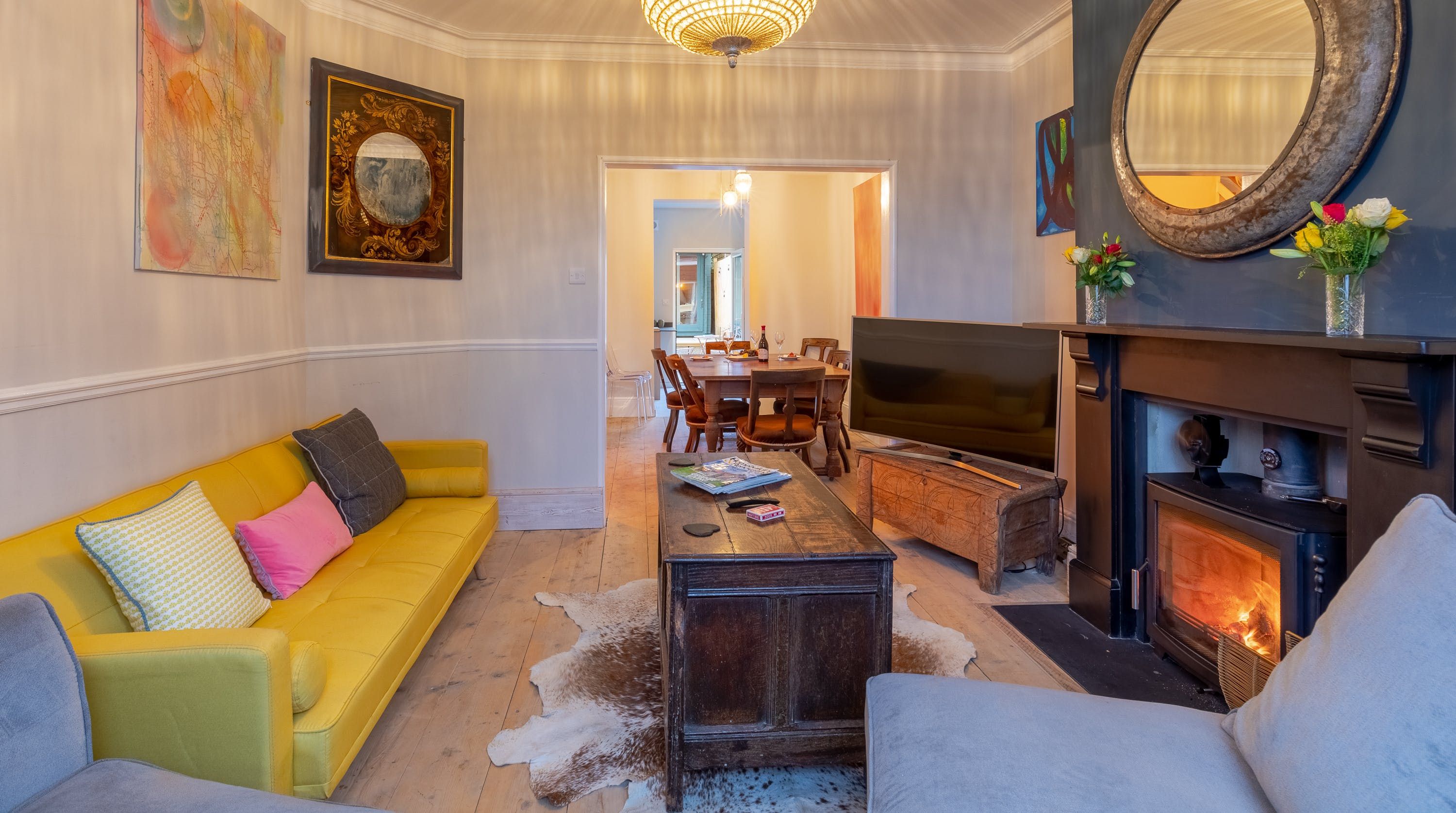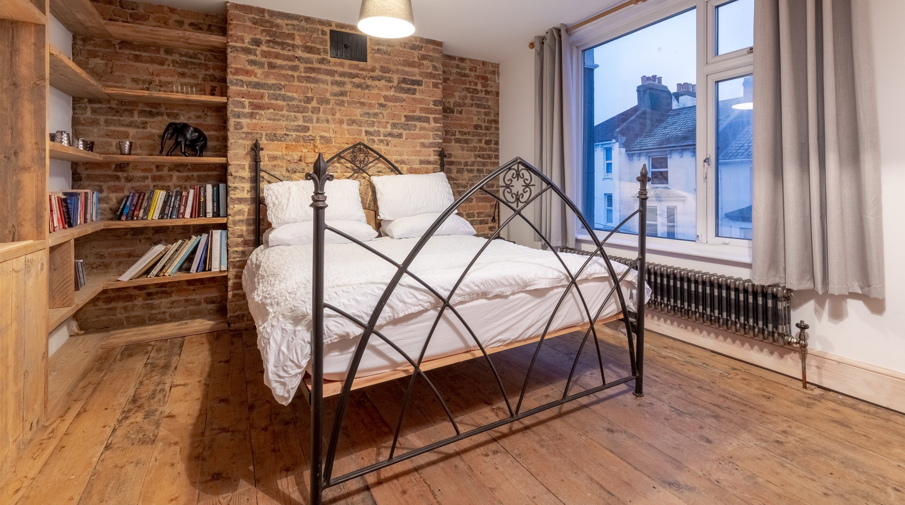 This striking black townhouse in the seaside town of Hastings holds a few secrets inside. First of all, the eclectic living room, set around a big bay window with ingenious half-fold wooden shutters that allow in natural light while keeping a bit of privacy. The wood-burning stove is a cosy bonus for cold nights and the walls are adorned with vibrant modern art. Then there’s the private patio garden with its summer house set up as a creative studio. The outdoors is illuminated with stringed lights at night where a sunken, hand-crafted picnic table and chairs await. Finally, our favourite spot has to be the Japanese onsen style bathroom, with its cascading waterfall sink and a bubble Jacuzzi tub designed specifically for the space. The bathroom is a testament to the rest of the house, where bannisters feel hand-crafted from reclaimed wood and book-filled shelves in the bedrooms are bespoke. Venturing out into Hastings, you’ll find the long sweep of sandy beach is just a fifteen-minute stroll away, and the heart of town, brimming with shops, restaurants and cafés is ten minutes on foot.