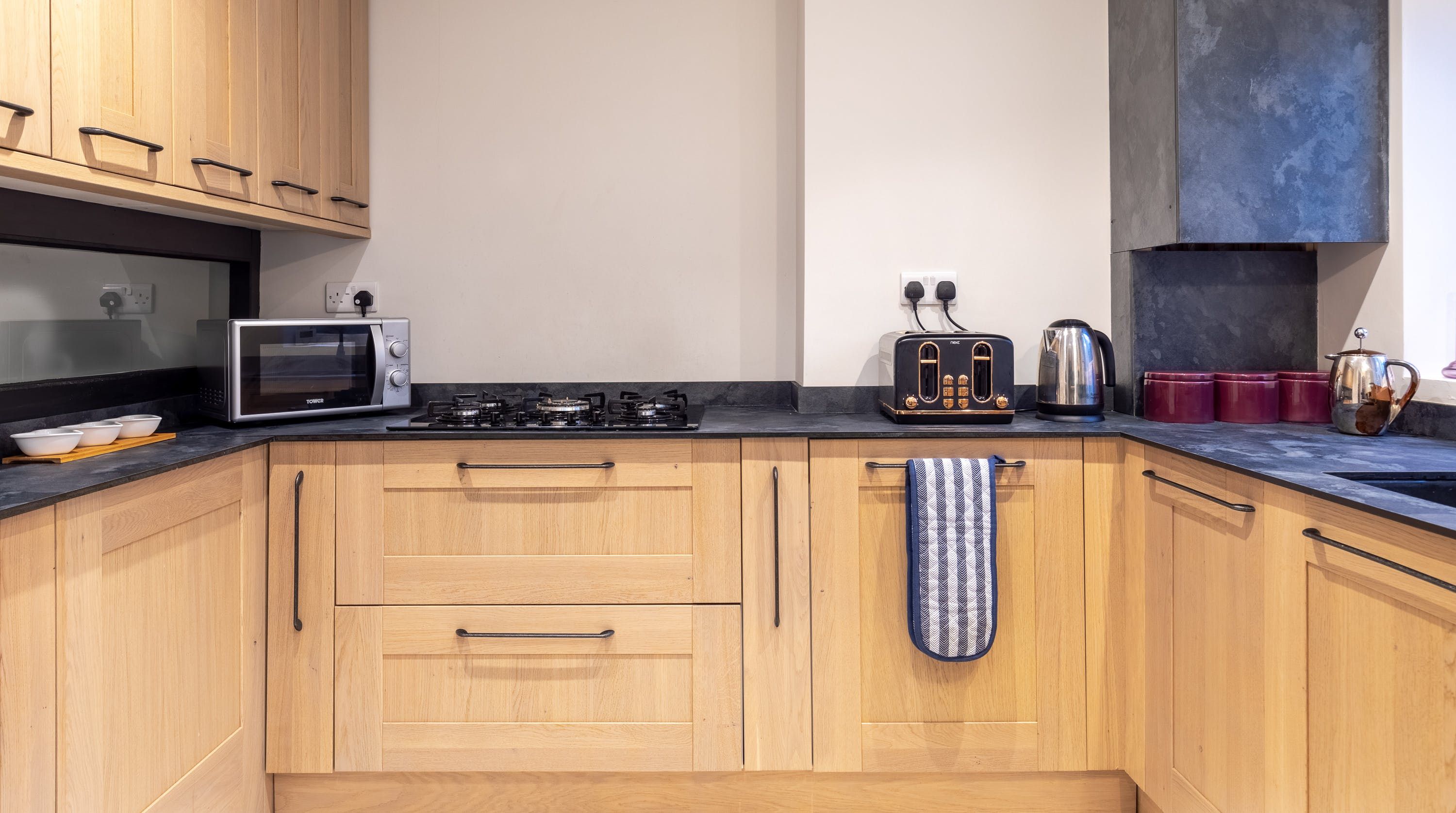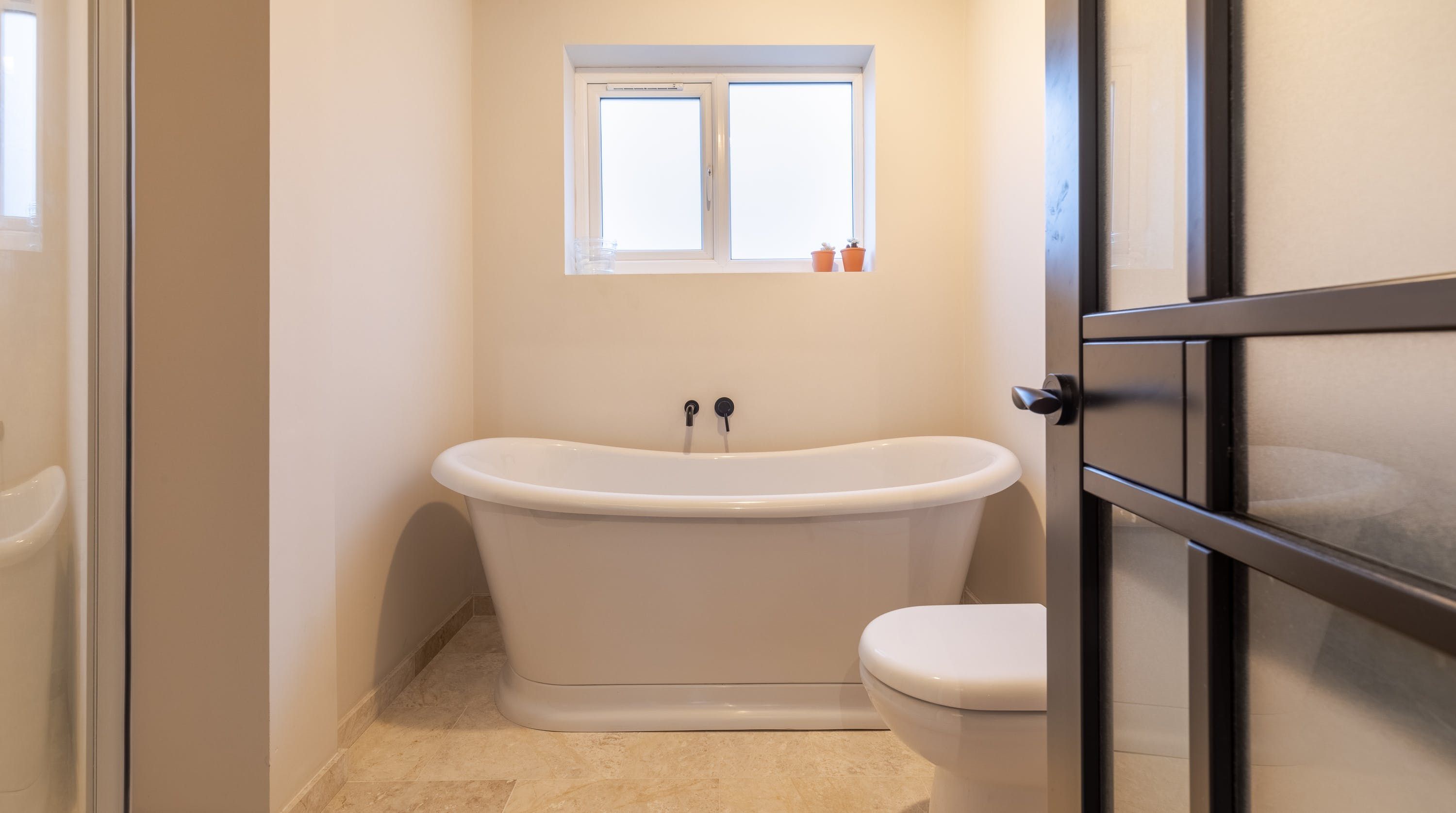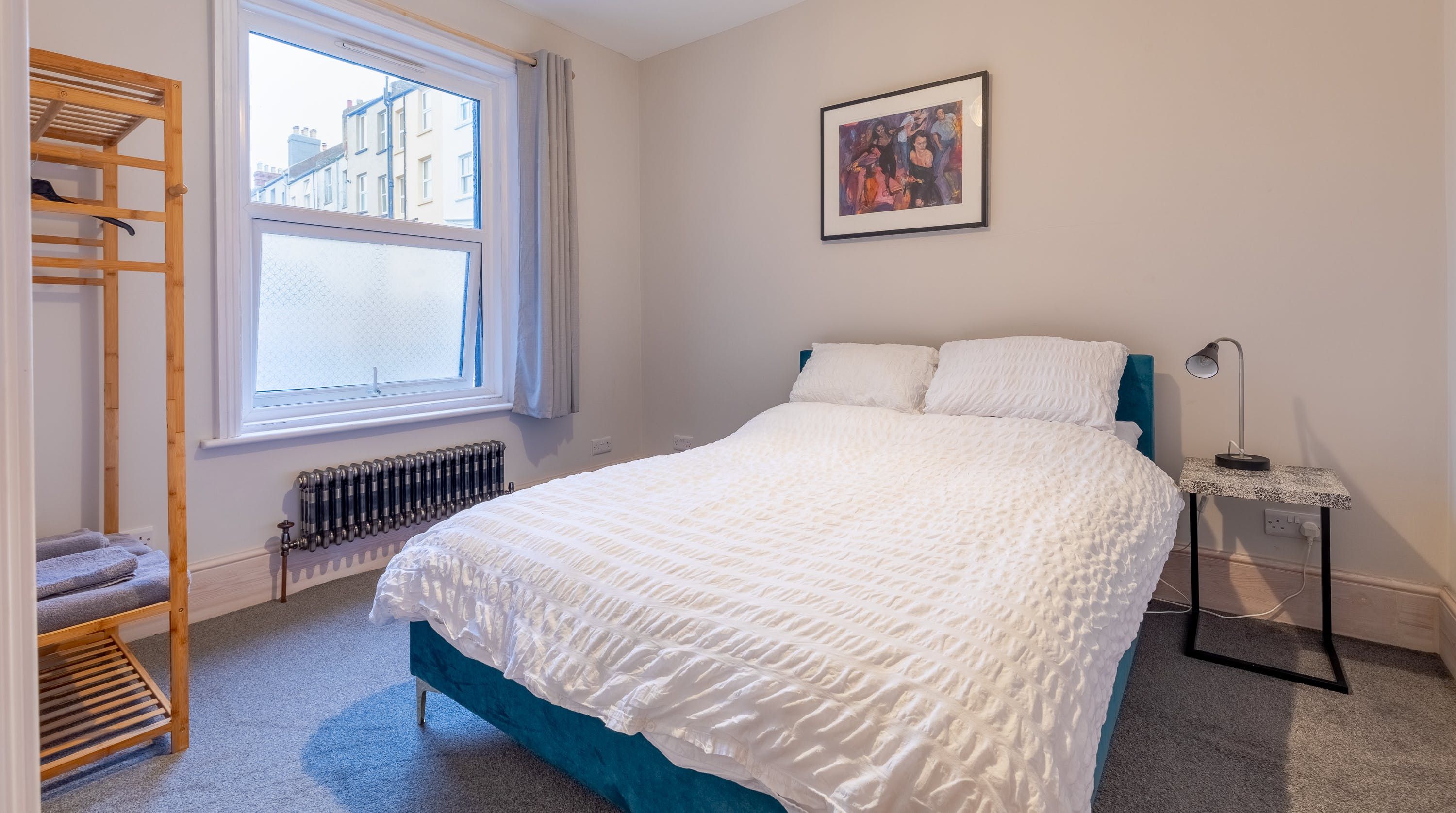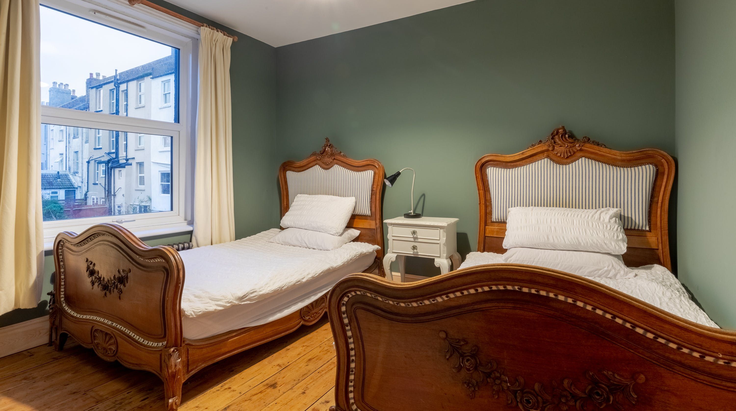 This striking black townhouse in the seaside town of Hastings holds a few secrets inside. First of all, the eclectic living room, set around a big bay window with ingenious half-fold wooden shutters that allow in natural light while keeping a bit of privacy. The wood-burning stove is a cosy bonus for cold nights and the walls are adorned with vibrant modern art. Then there’s the private patio garden with its summer house set up as a creative studio. The outdoors is illuminated with stringed lights at night where a sunken, hand-crafted picnic table and chairs await. Finally, our favourite spot has to be the Japanese onsen style bathroom, with its cascading waterfall sink and a bubble Jacuzzi tub designed specifically for the space. The bathroom is a testament to the rest of the house, where bannisters feel hand-crafted from reclaimed wood and book-filled shelves in the bedrooms are bespoke. Venturing out into Hastings, you’ll find the long sweep of sandy beach is just a fifteen-minute stroll away, and the heart of town, brimming with shops, restaurants and cafés is ten minutes on foot.