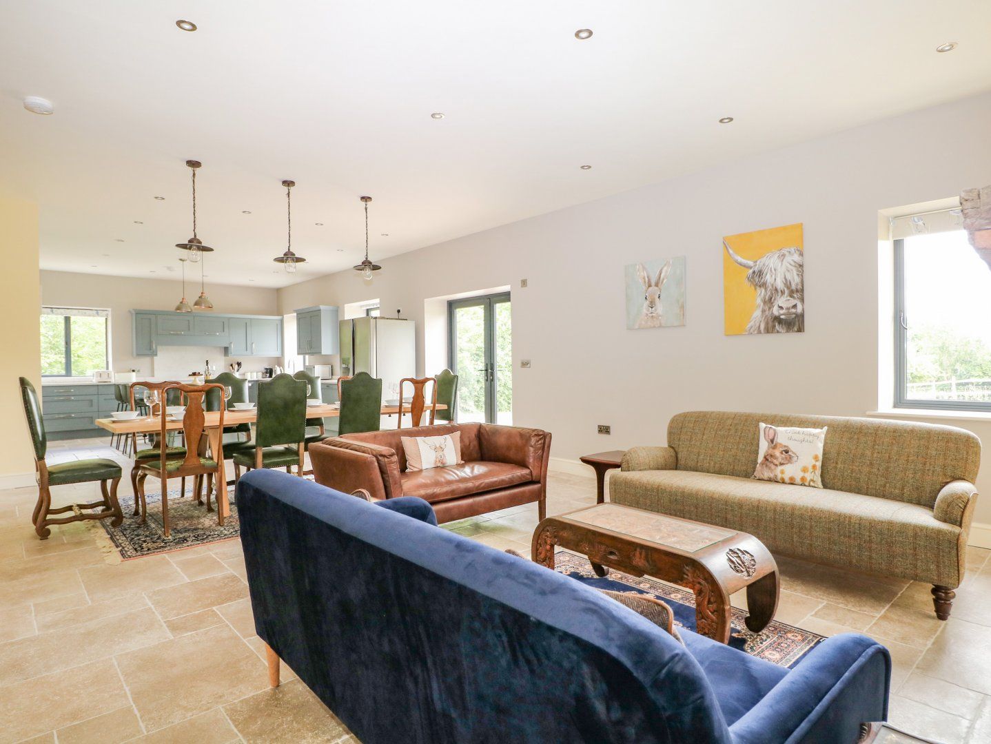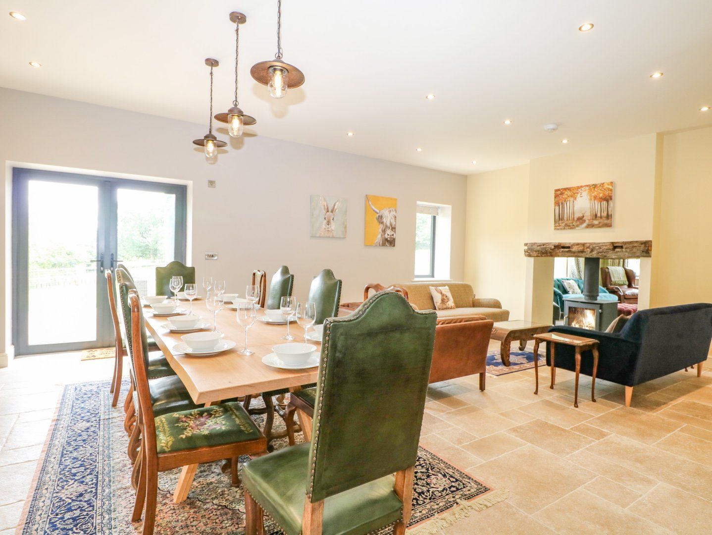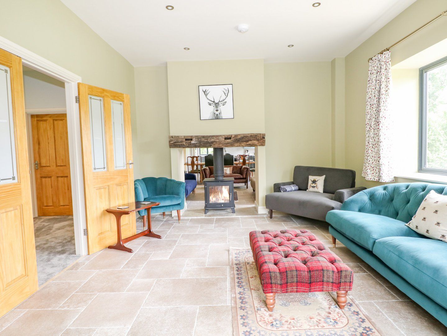 Accomodation Details Four bedrooms: 1 x super-king-size with TV, and en-suite rolltop bath, walk-in shower, double basin, heated towel rail and WC, 1 x king-size with TV and en-suite walk-in shower, basin and WC, 2 x twin (zip/link, can be king-size on request). Bathroom with bath, shower over, basin and WC. Ground-floor Jack-and-Jill shower room with walk-in shower, basin and WC. Open-plan living space with kitchen, dining and sitting area with double-sided woodburning stove. TV Lounge with a large Smart TV, App ready. Games room with sofa bed suitable for two children and access to Jack-and-Jill shower room