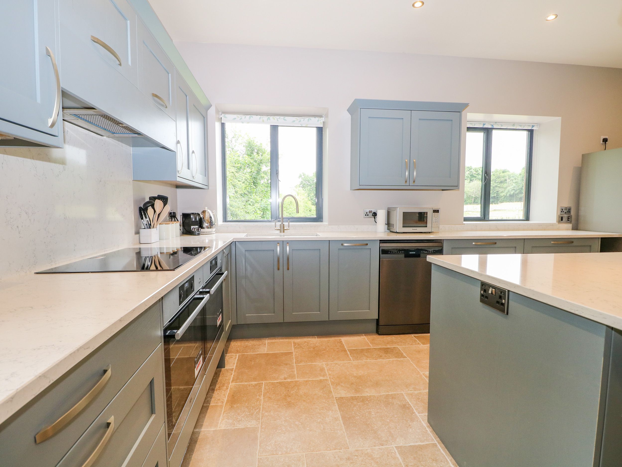 Holiday home The living areas in the property consist of an open-plan living area with a kitchen with electric double oven and induction hob, microwave, American-style fridge/freezer, dishwasher, Nespresso coffee machine, a dining area with seating for 10, and a sitting area with Smart TV and double-sided woodburning stove, a utility with washing machine, tumble dryer, and a games room with football table, double sofa bed, dart board and Smart TV. The bedrooms consist of a super-king-size with Freeview TV and en-suite bathroom, a king-size with Freeview TV and en-suite shower room, and two twins with zip/link, along with a bathroom and a ground-floor shower room. Outside, there are several patios, main patio with furniture and barbecue and pizza oven, as well as ample off-road parking. Private fenced garden surrounding the property. Within 0.9 miles, you will find a shop, and within 1.3 miles, a pub, and please note that this is a non-smoking property. WiFi, fuel, power, bed linen and towels are all included in the price. Two well-behaved pets welcome. Cot and highchair available. Note: The sofa bed can sleep up to two children and will need to be requested in advance for a flat fee of £50 to cover addition cleaning and laundry costs. Note: Check-in from 4pm, check-out by 10am. Note: No stag, hen or similar parties. Note: The property is set within 50-acres of Sussex farm with private walking paths and network of public footpaths, sorry no cycling.