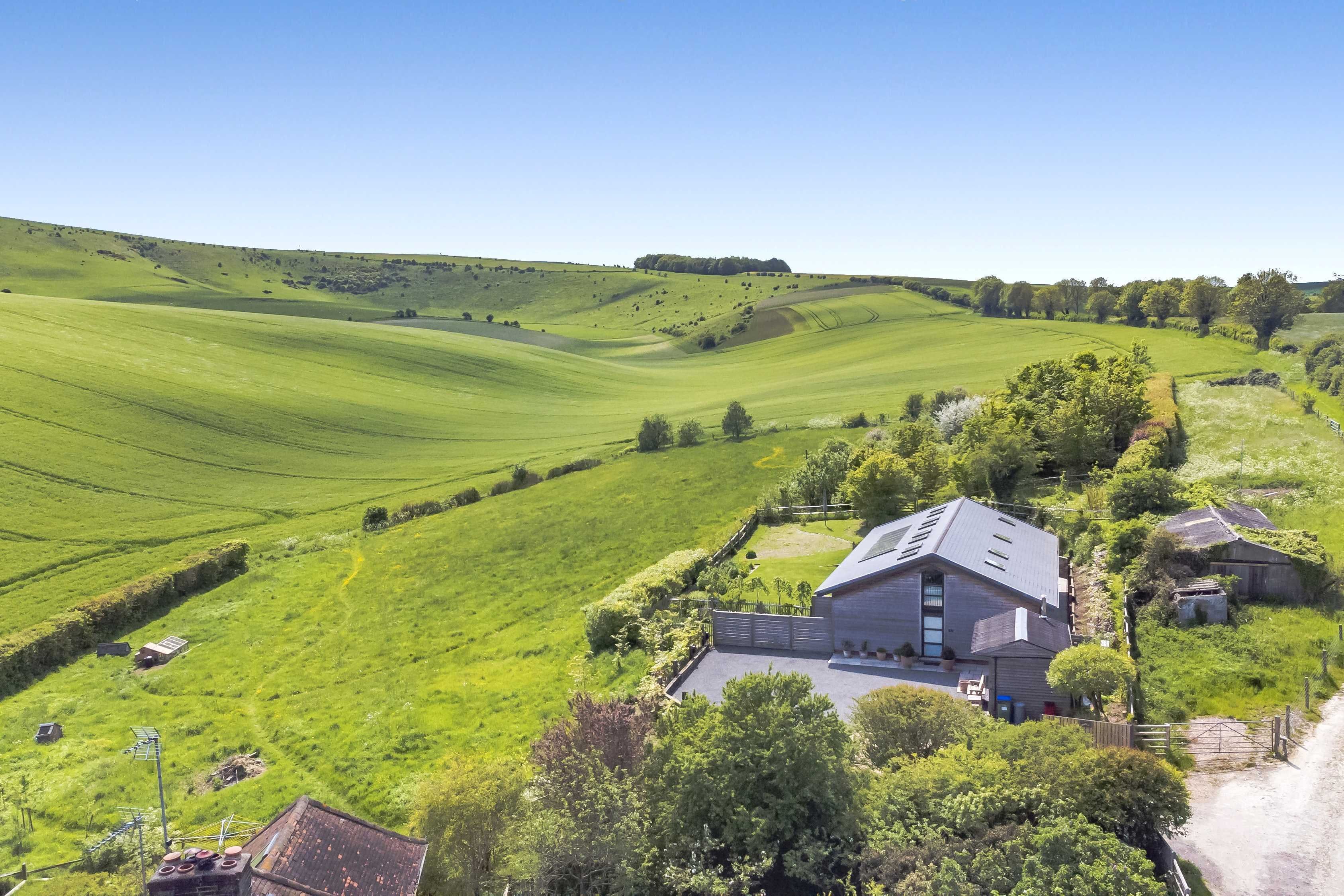 Lie low for a while amid the rolling hills of the South Downs National Park – best seen through the vast south-facing picture windows of this meticulously converted barn. Winding your way up the country lane leading to this home, you could feel a world away from everything. Yet the characterful medieval town of Lewes is just a ten-minute drive away and a little further, Brighton (twenty-minute drive) for a walk by the sea and shopping in its Lanes. But it’s right here at home where we think you’ll be spending most of your time. From alfresco barbecues on the vast garden terrace, sundowners on the mezzanine balcony, and relaxing in the hot tub, to large sit-down dinners indoors overlooking the downs, this house is well suited for entertaining. And there’s heaps of space to spill out in the generously sized bedrooms – spread out over two floors and united by a tasteful mix of contemporary and rustic interiors. Lofty high ceilings, polished concrete flooring (the underfloor heating keeps things toasty), and sleek architectural glazing make quite the first impression. While a bespoke shaker kitchen with all the mod-cons (think Everhot range cooker and wine cooler) and beautifully curated objet’s de art bring character and soul. After bracing walks in the surrounding hills, kick off your muddy shoes in the boot room and sink into the sumptuous sofas to soak up those awe-inspiring views with freshly brewed coffee. Feathered by cosy cushions and the softest sheepskin, it's highly likely you may never want to leave.