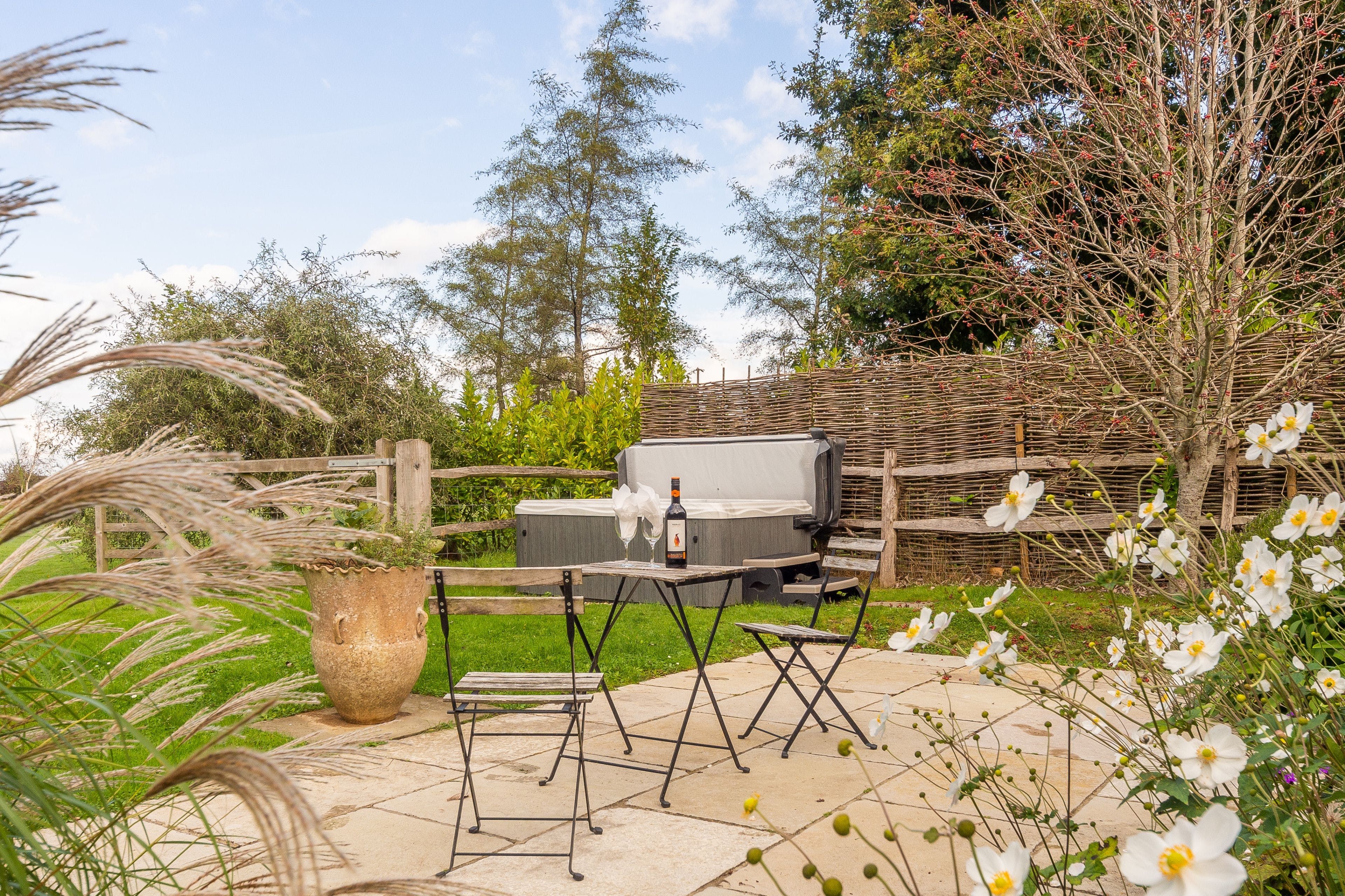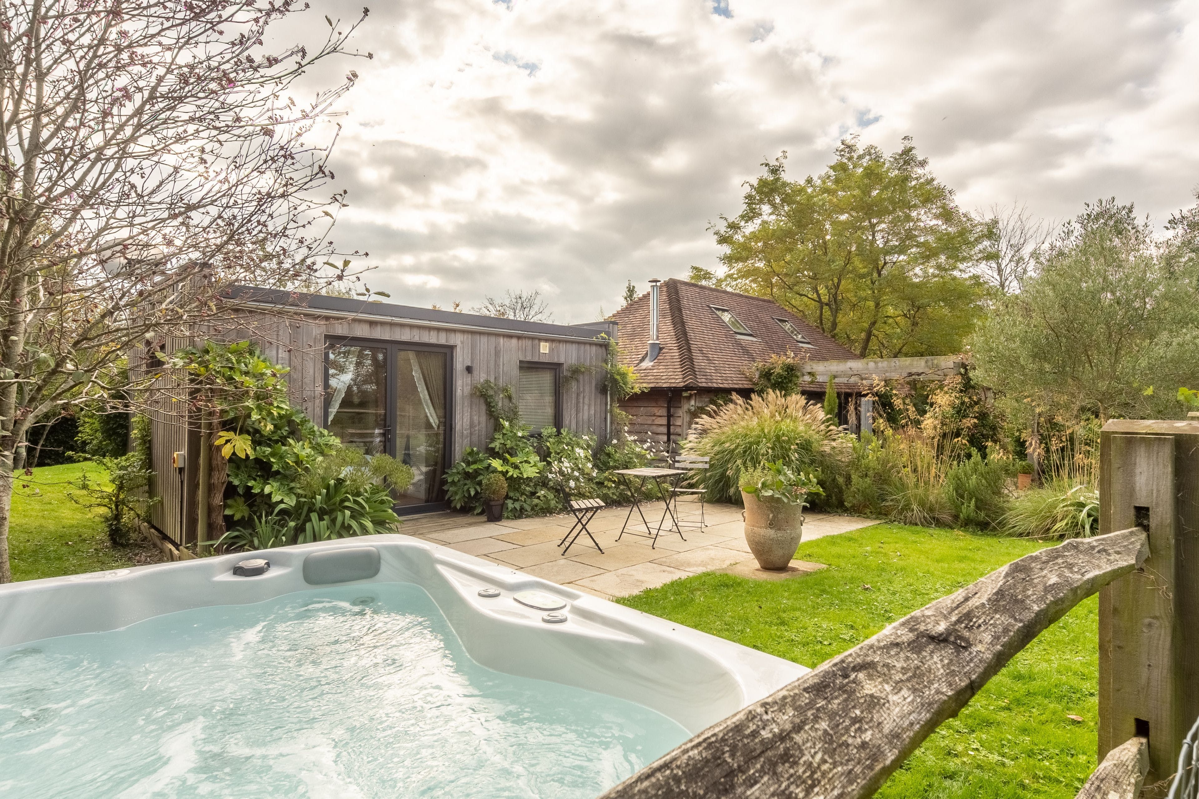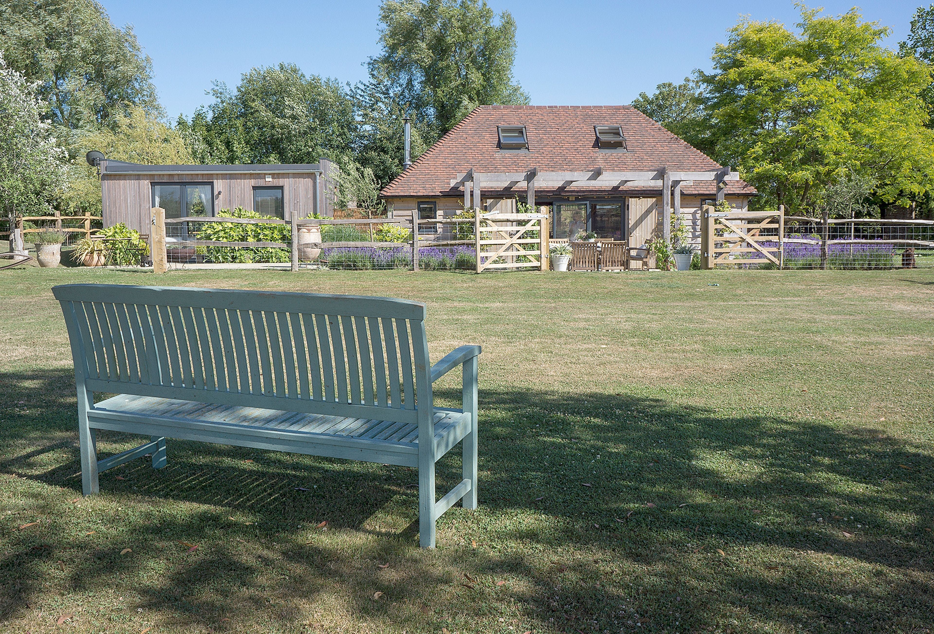 The gardens surrounding this one-bedroom bespoke oak barn conversion are beautiful. There are several terraces, including one with a pergola flanked by scented lavenders, perfect for alfresco dining, and another with a hot tub. One thing to note, though, is that a public footpath runs through the paddock next to the garden. Inside, there’s a wood burning stove and there’s a rolltop bath in the bedroom’s en-suite. Don’t be fooled by the pictures of the spiral staircase, this home is all on one level (the first floor is only for the owners’ use). When you feel like exploring, the village of Ripe is a short walk away, and the market town of Lewes is nearby too.