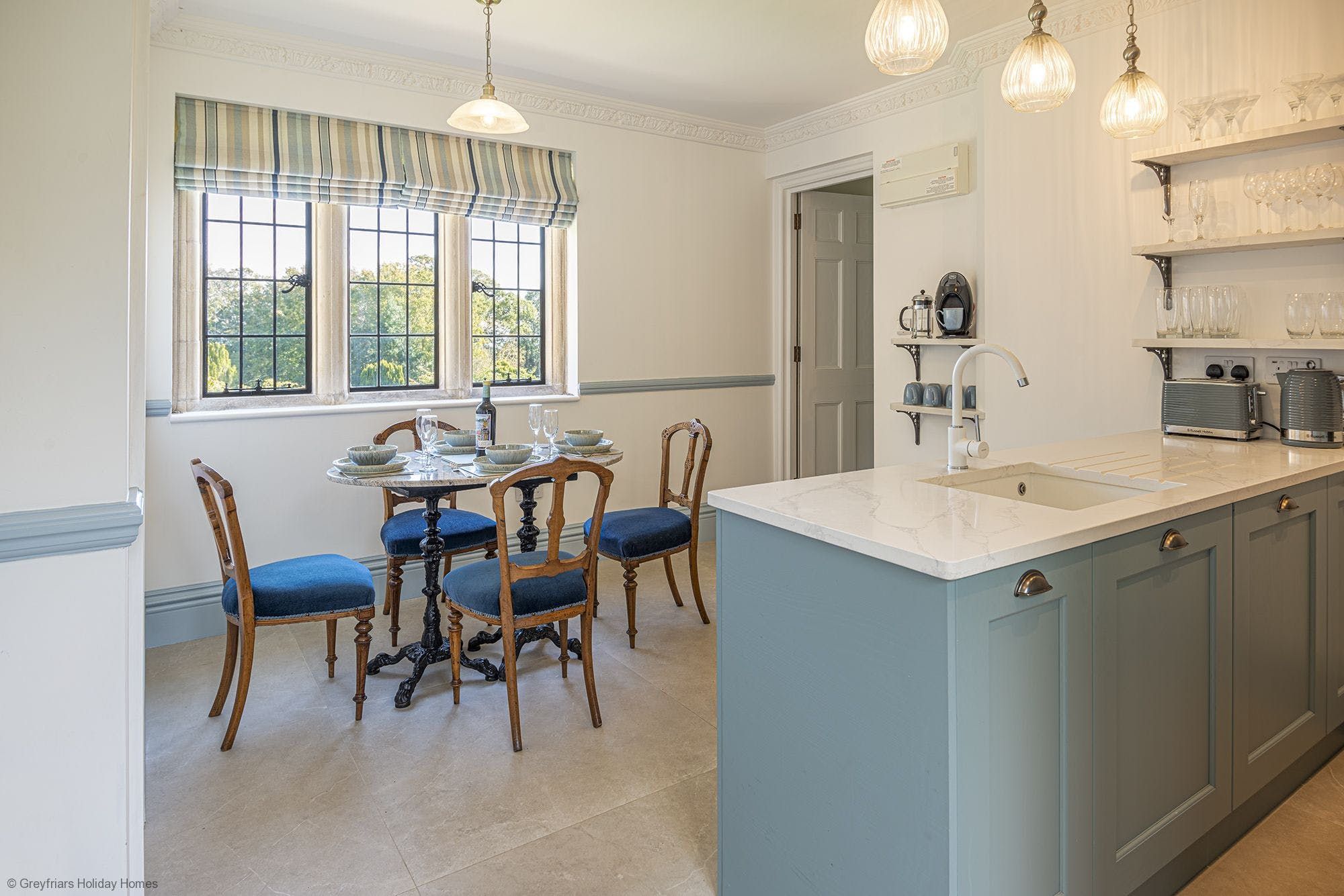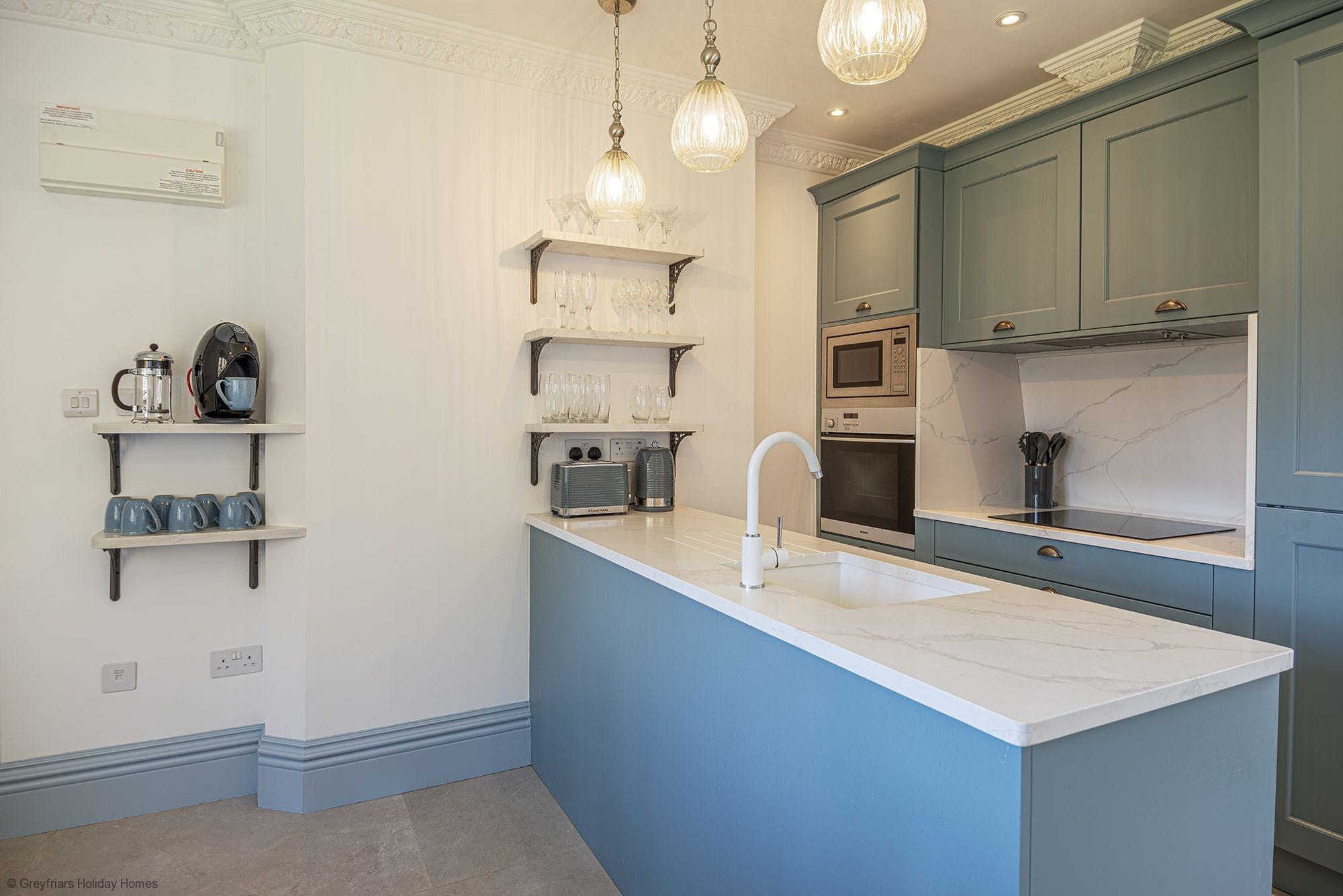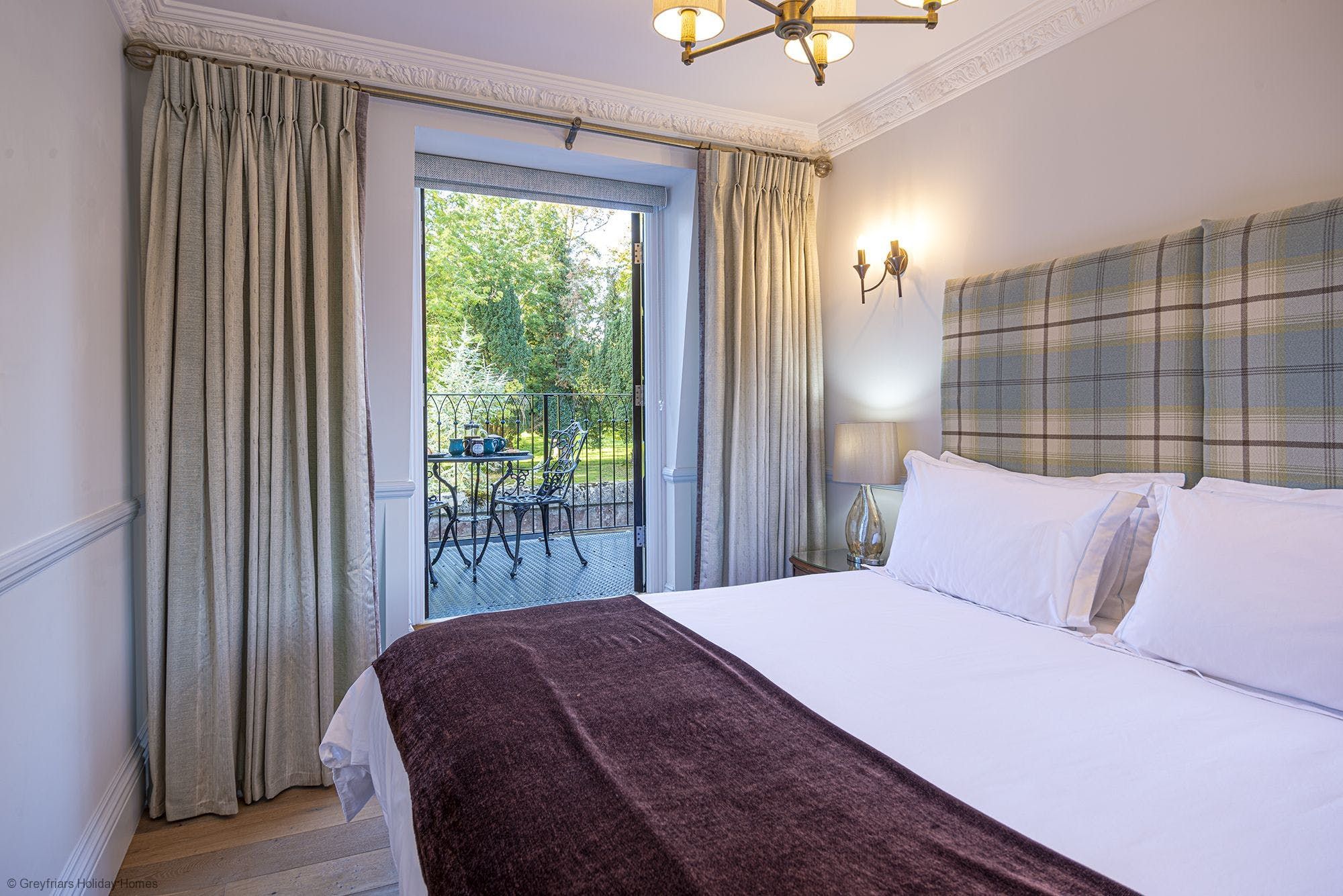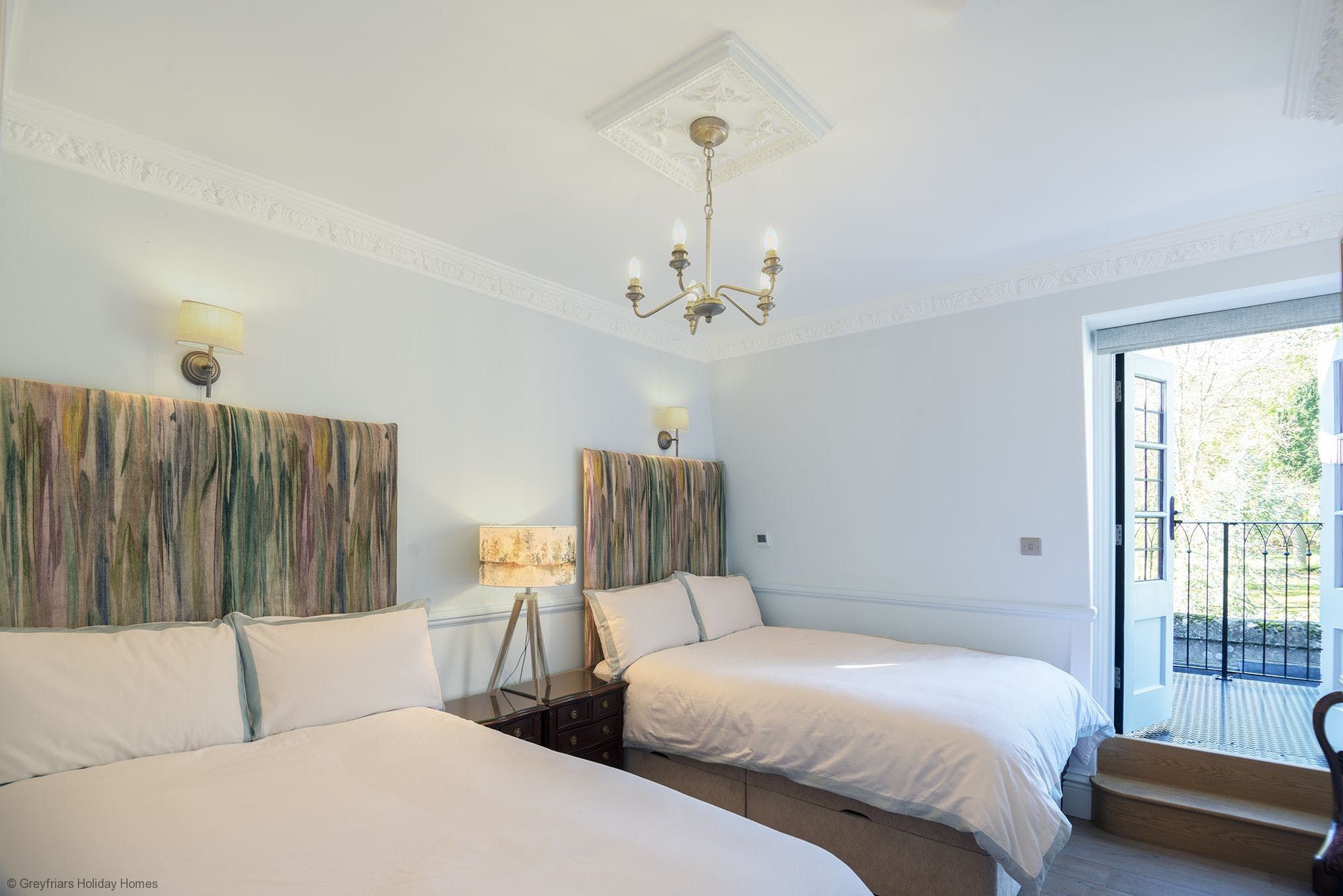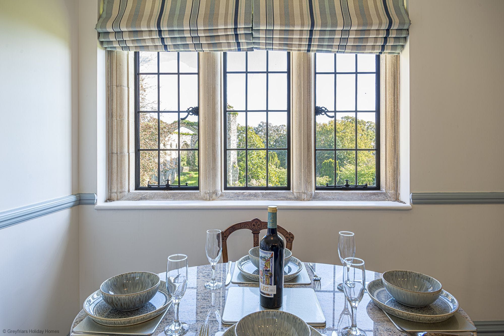 A magical place to stay at any time of year, this elegant apartment sits within one wing of a vast Gothic mansion. Built in the early 19th Century, lovers of historical architecture will marvel at the ornate coving, the original fireplace and the stone mullion windows, and will find themselves staring out at a designated Site of Special Historic Interest – the imposing ruins of the 13th Century Franciscan abbey on the estate. Privately owned and with just one other holiday home on the site, this place is like stepping back in time. A deep sense of peace pervades the ancient site, whilst the accommodation provides a sense of quiet luxury with a fully enclosed garden