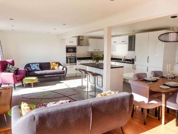 Accomodation Details Two bedrooms with Sky TV: 1 x king-size double with outside access, 1 x twin. Bathroom with bath, shower over, basin and WC. Ground floor wet room with shower, basin and WC. Open plan living area with kitchen, dining area and two sitting areas (one with double sofa bed).