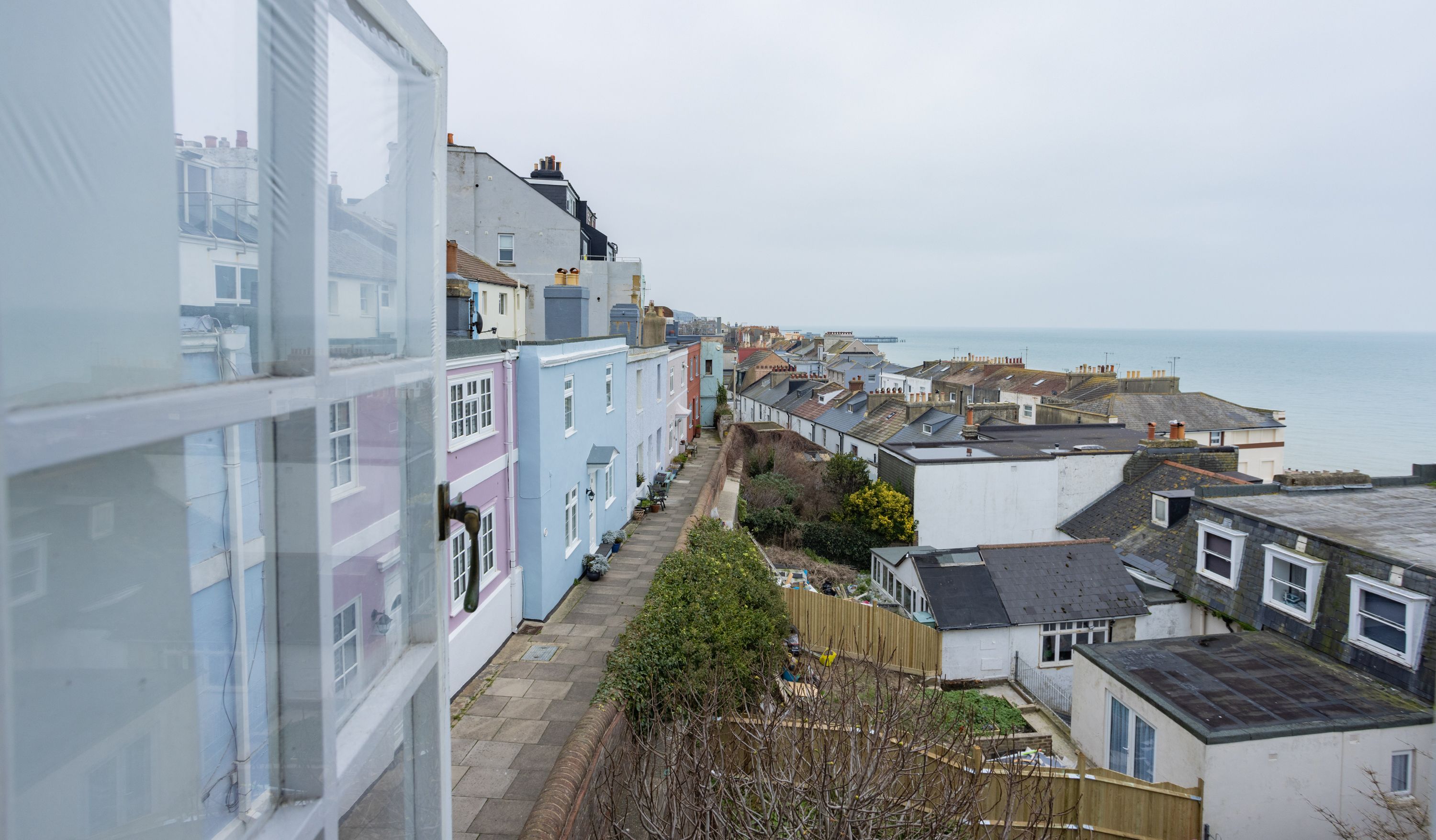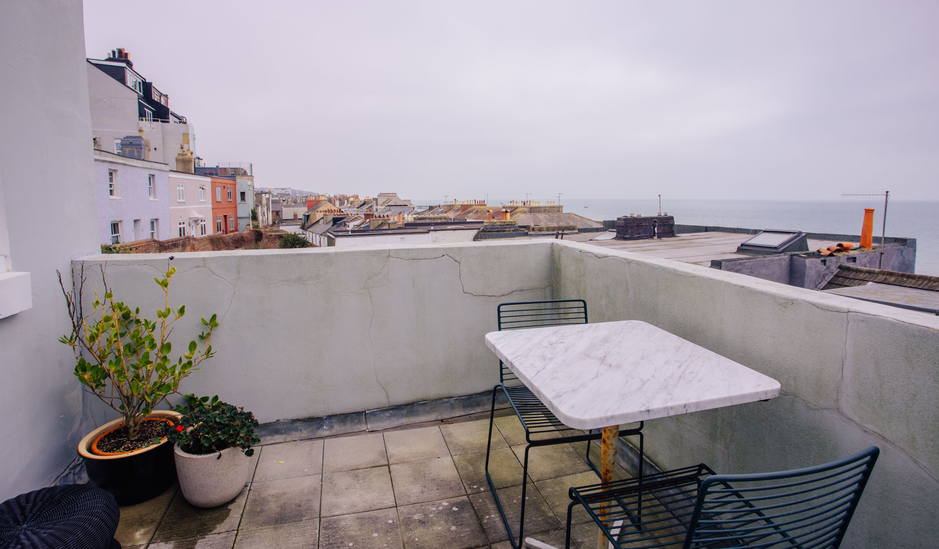 Just round the corner from Norman Road, known for its buzzy blend of quirky cafes, independent shops and art galleries, this delightful home has character, charm and incredible sea views. Tucked away in a historic side street, it's a quiet home with a laid-back feel. First and foremost, it's super stylish, with wood floors and white walls acting as a canvas for pretty houseplants, vibrant modern art and contemporary furnishings. There's a cosy log burner for those cooler evenings by the sea and a supremely comfortable sofa for lounging on. You'll have everything you need in the smart kitchen and from here you can step out of the French doors to a real treat every morning – a private balcony with views across the rooftops to the nearby sea. Up another flight of stairs, two good size bedrooms and a bathroom mean it's suitable for a small family or a couple of friends, and those views just keep coming. Walk to the beach in minutes and stroll along the seafront to Hastings Old Town in a quarter of an hour. You won't be short of things to do and there are all sorts of great places to eat and drink on your doorstep.