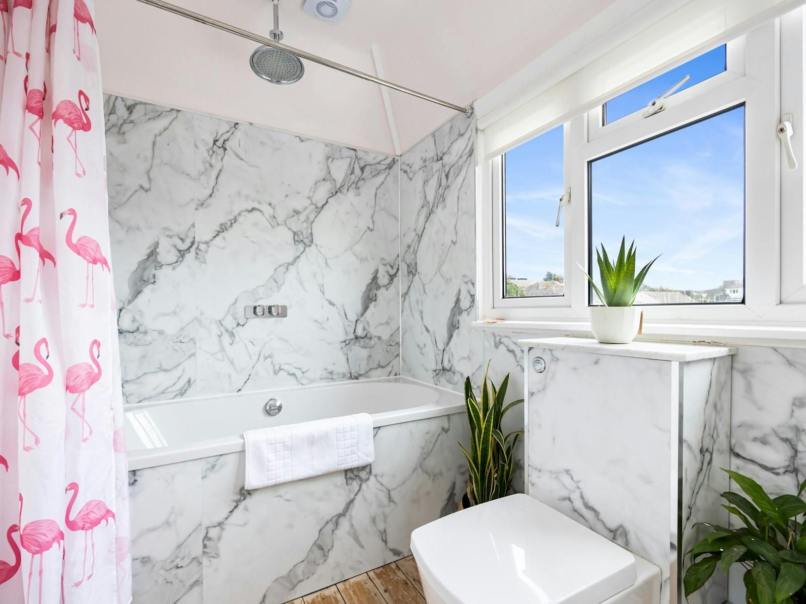 Situated in the tranquil seaside town of Saltdean, this bright and spacious home is a welcome getaway for groups and families seeking a beachside haven. Large bay windows and a sweeping living room bring a pleasant air of comfort and airiness, while the four bedrooms are a cosy retreat perfect for weary beachgoers. Outside, a patio offers outdoor seating with a view over the surrounding rooftops, while in the garden an outdoor sofa promises lively afternoon chats over a cocktail in the sun. When you’re ready to venture out, take advantage of the nearby walks and cycle routes – or head to nearby Brighton, where the famous pier and lively shopping streets await.